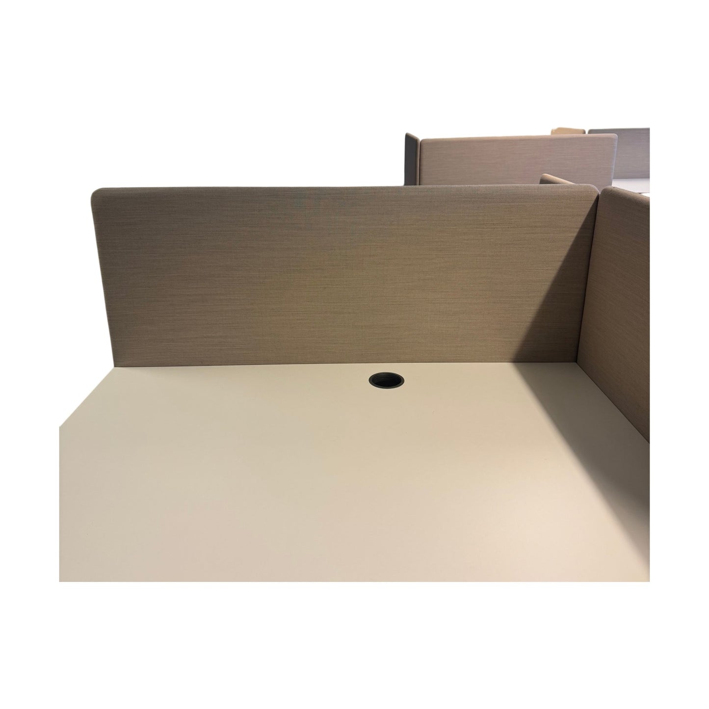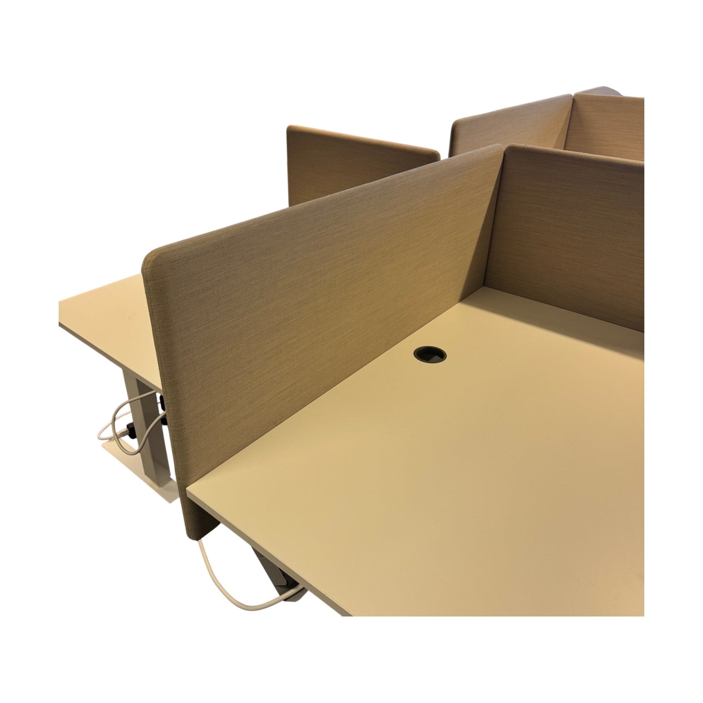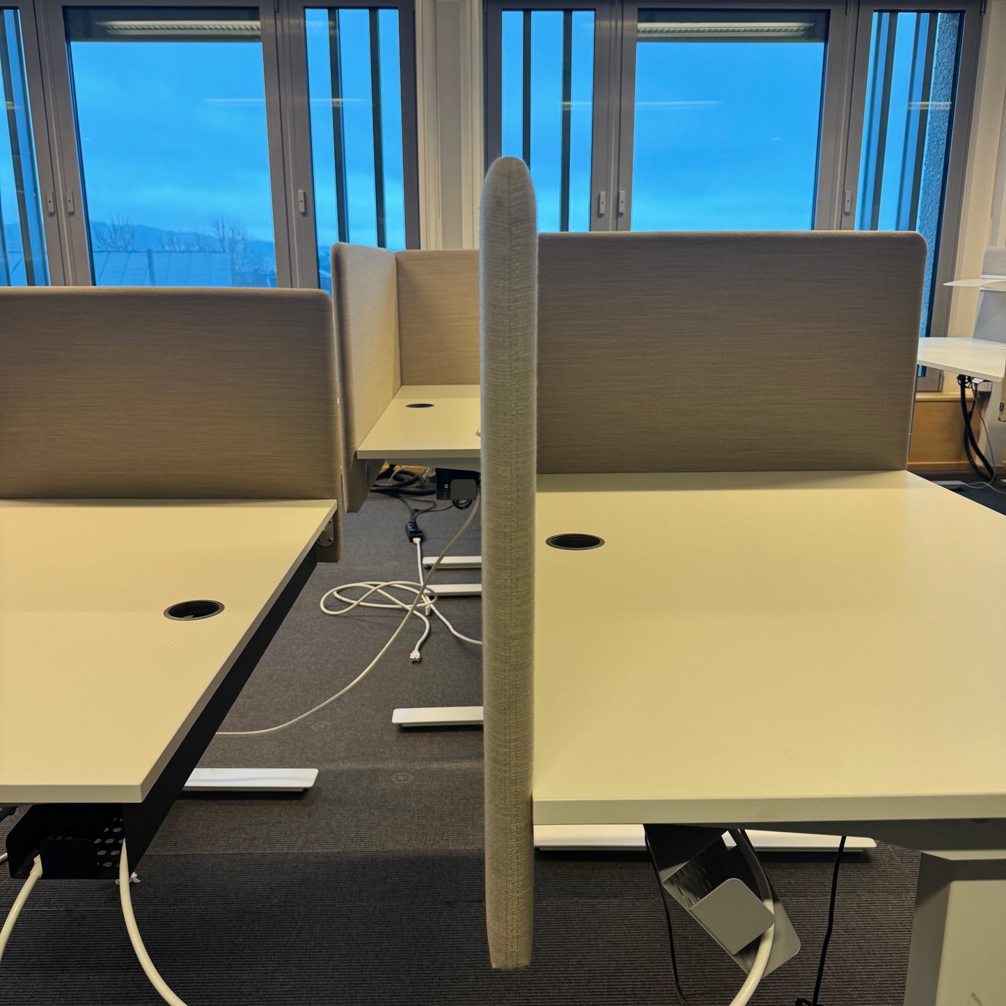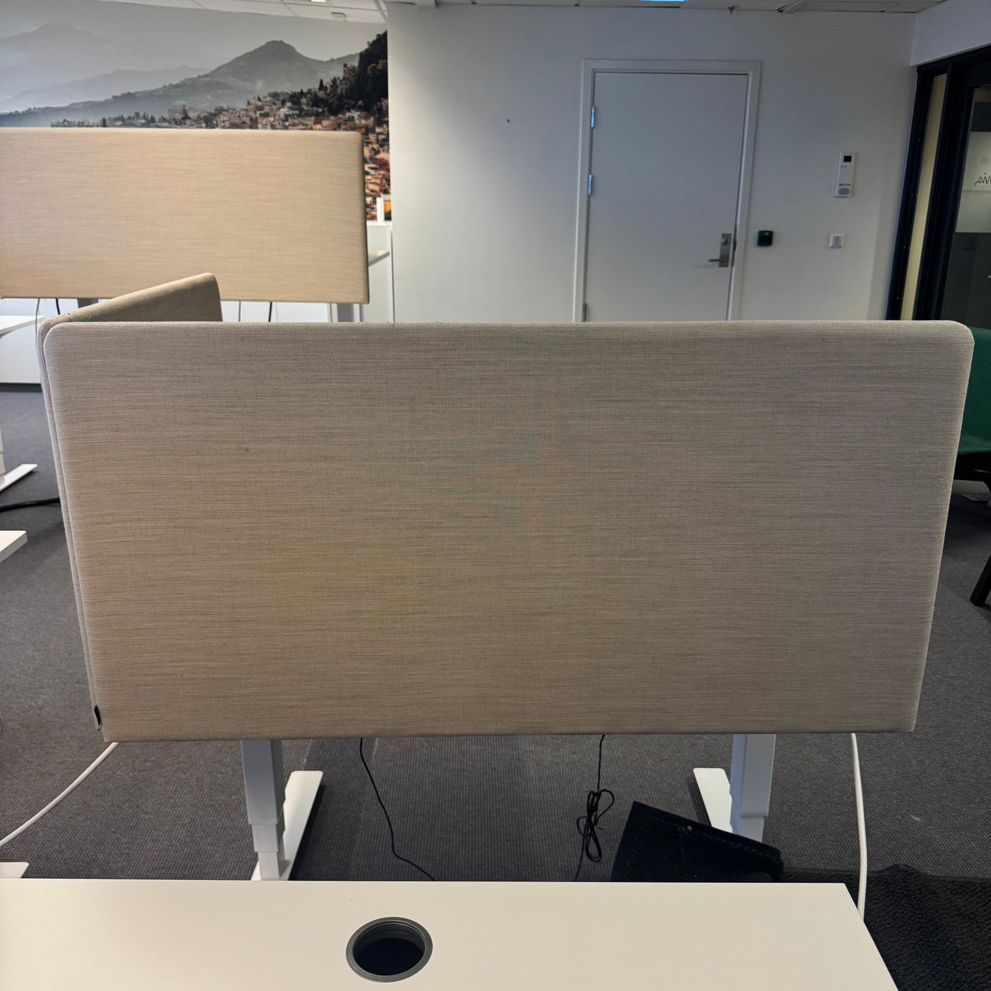 Praktisk skillevegg fra EFG i en stilren beige farge, designet for å monteres på skrivepulten. Denne skilleveggen bidrar til å minimere akustikk og gir en behagelig skjerming i åpne kontorlandskap. Den er ideell for å skape mer private arbeidsområder og forbedre konsentrasjonen, noe som gjør den perfekt for både hjemmekontor og tradisjonelle kontorer.