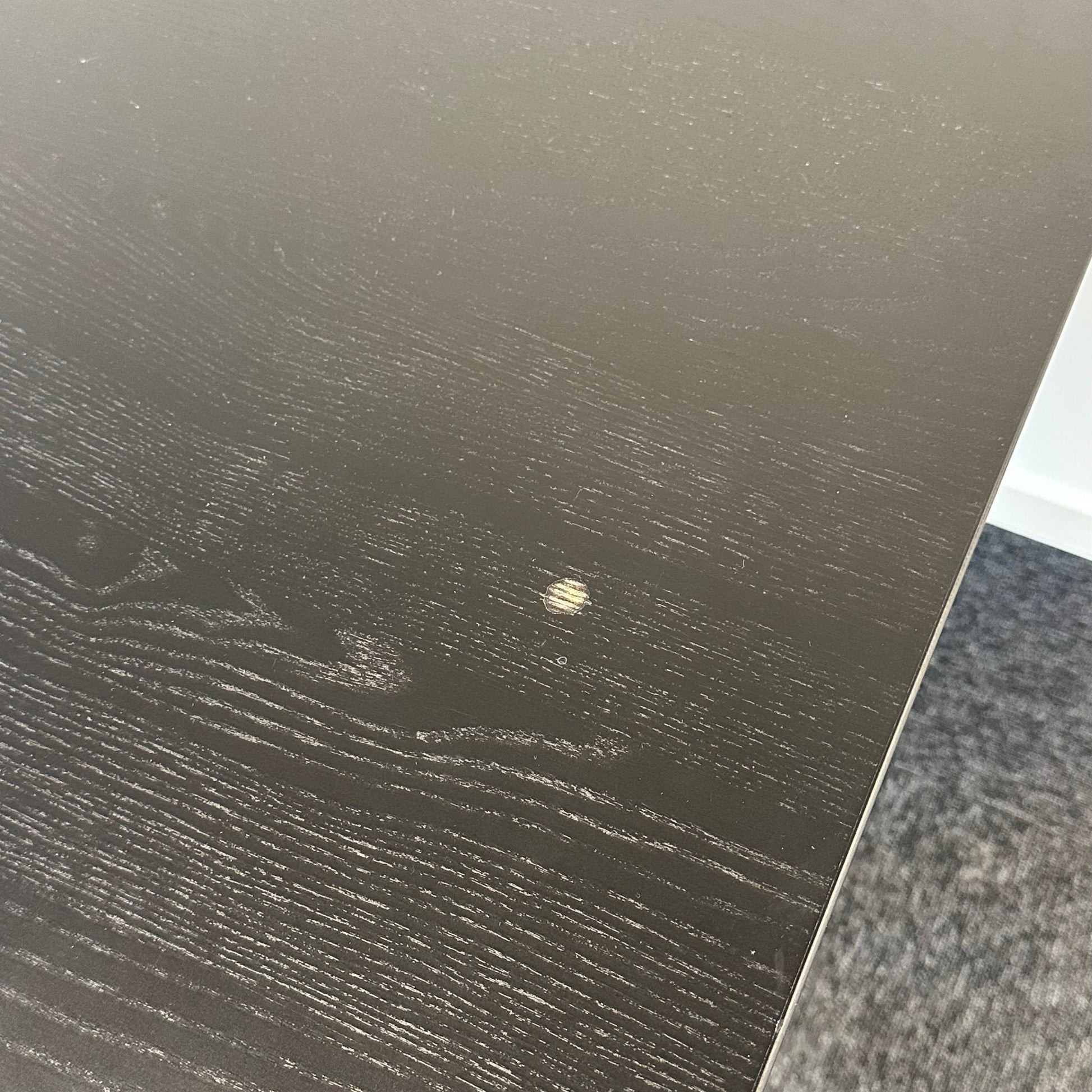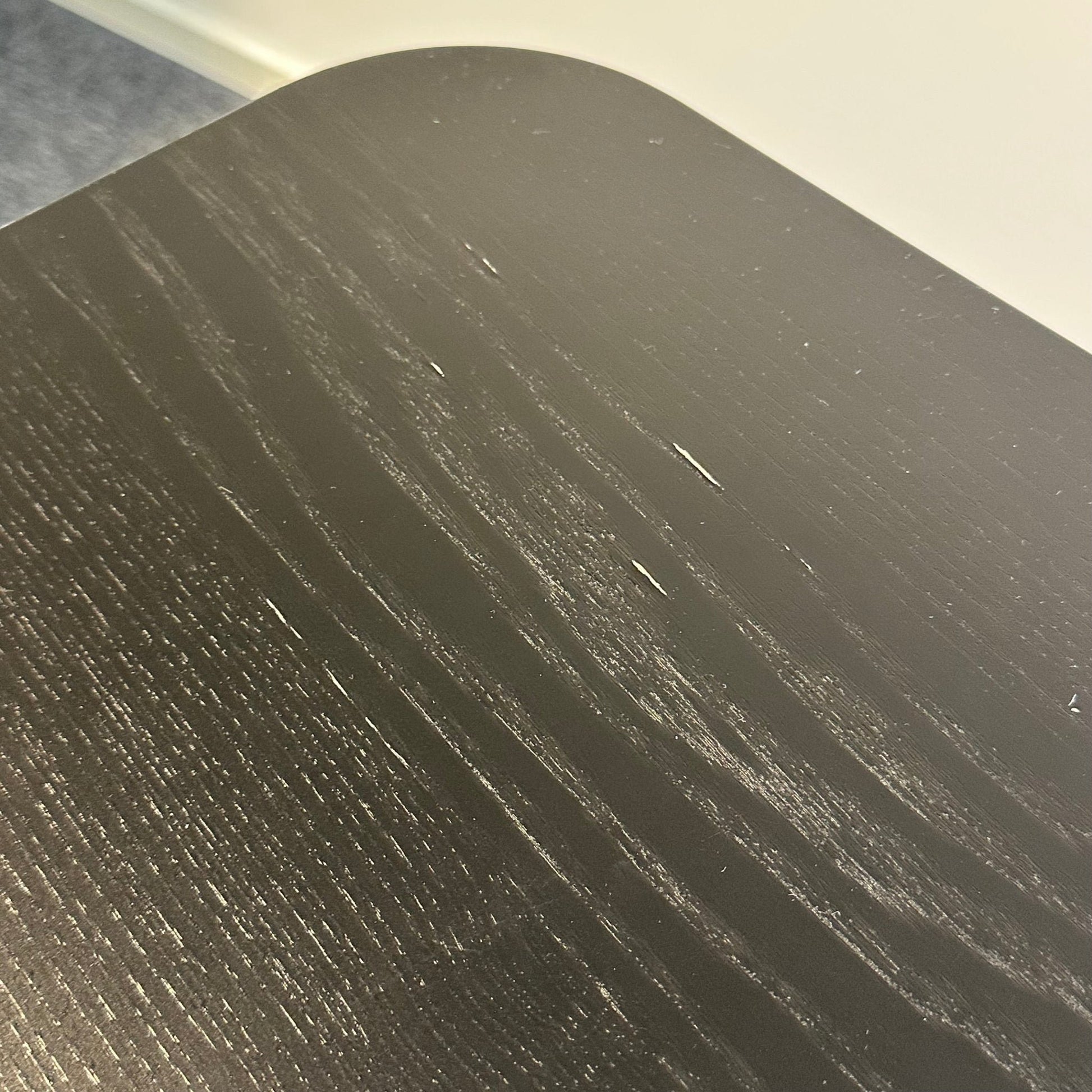 Skrivebordet er i god stand med noen synlige bruksmerker, men det påvirker ikke funksjonaliteten. Bordplaten og rammen er begge solide, og hev/senk-funksjonen fungerer uten problemer.