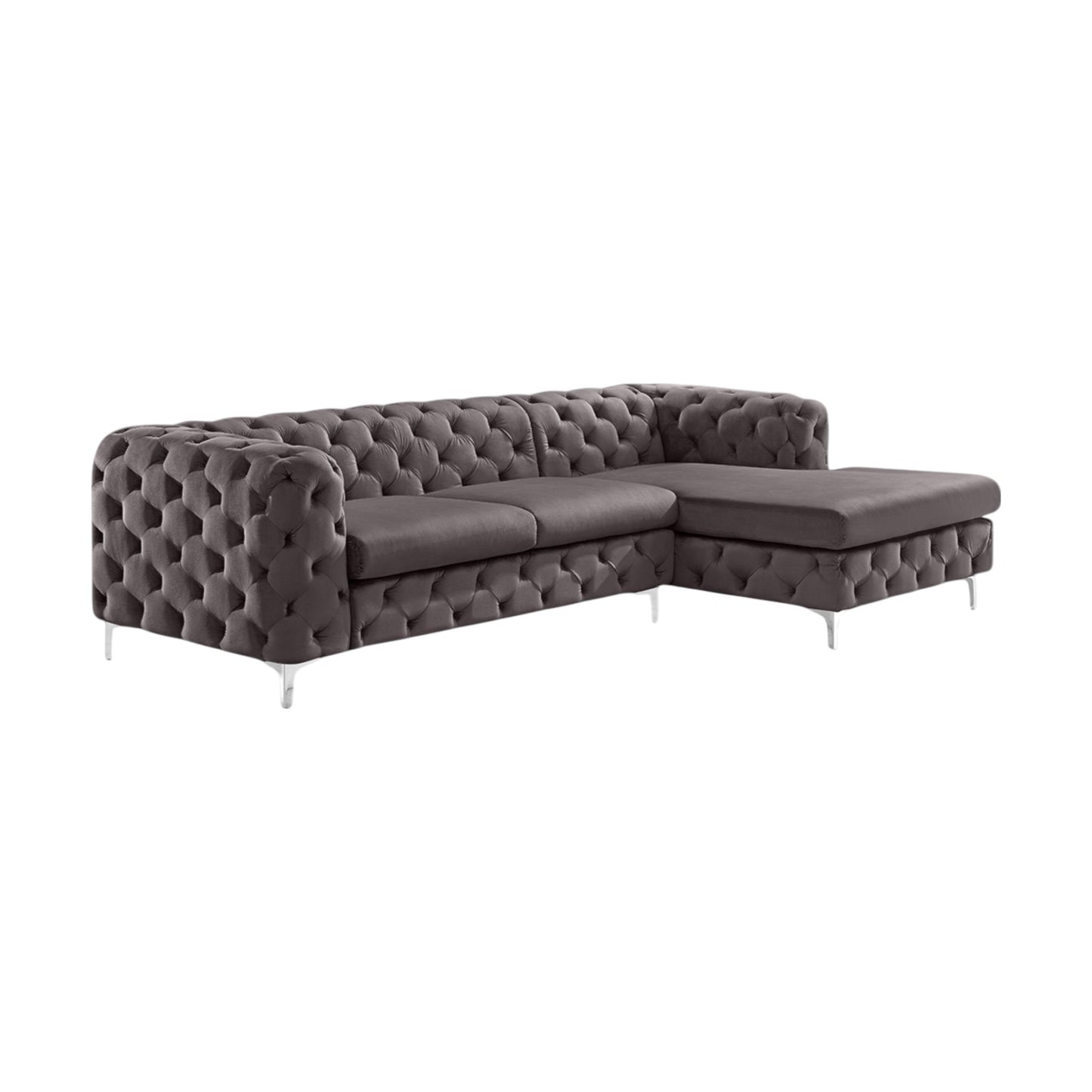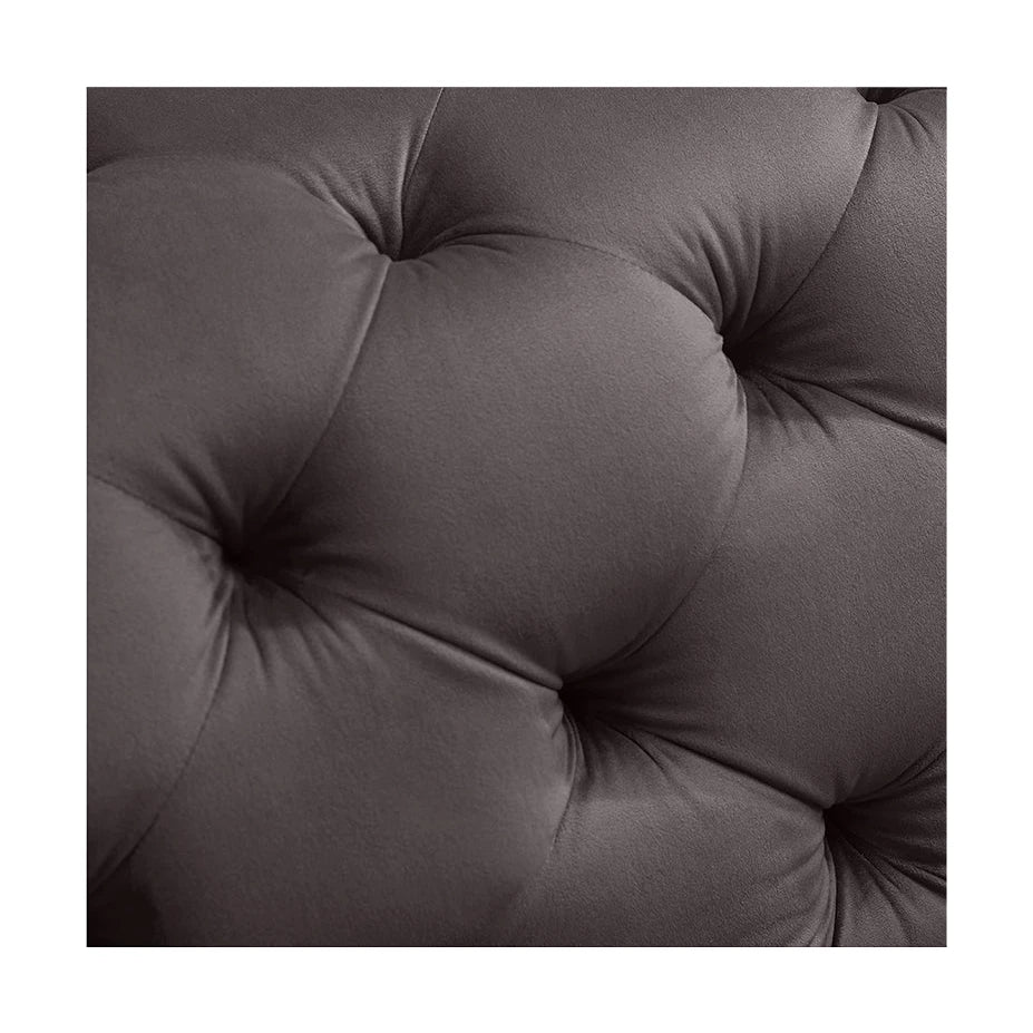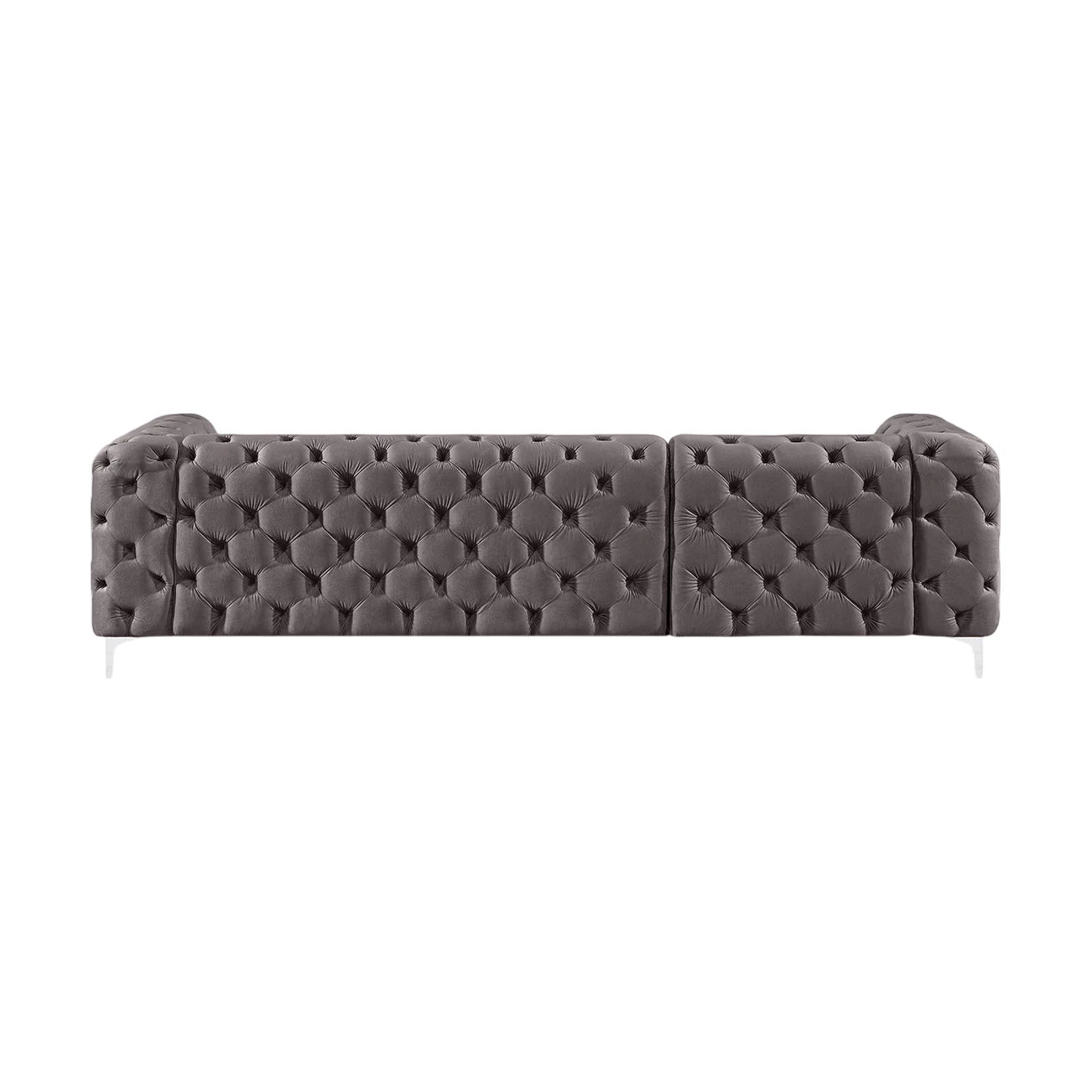 Elegant Bella sofa fra A-Møbler i mykt velourstoff med dype knappesømmer. Denne moderne tolkningen av den klassiske chesterfield-stilen gir et tidløst og sofistikert preg, perfekt for å heve stilen i ethvert rom.
