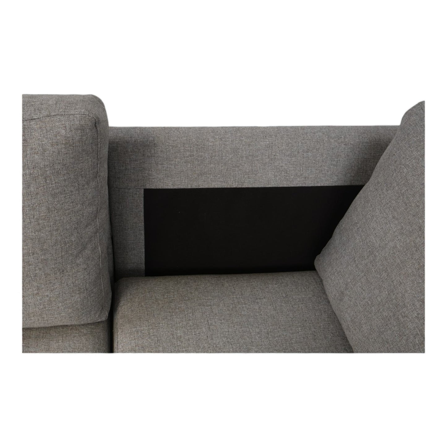 Sofaen mangler en ryggpute til hjørnedelen, og har et sydd hull ved armlenet. Det er også et hull i duken, men dette er ikke synlig Sofaen er i ellers god stand.