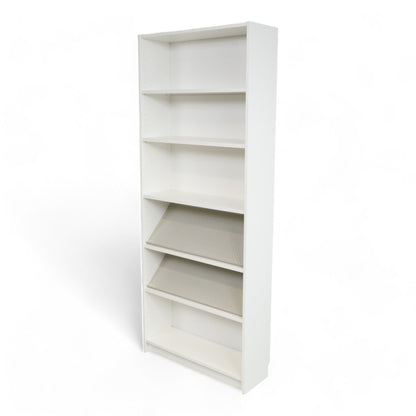Praktisk og romslig hvit bokhylle fra Billy med flere hyller for optimal oppbevaring av bøker eller dekor. Slank design som passer godt i ulike rom og interiører.
