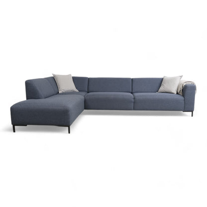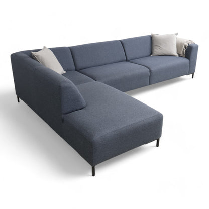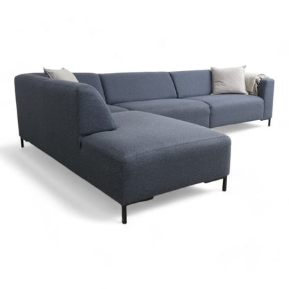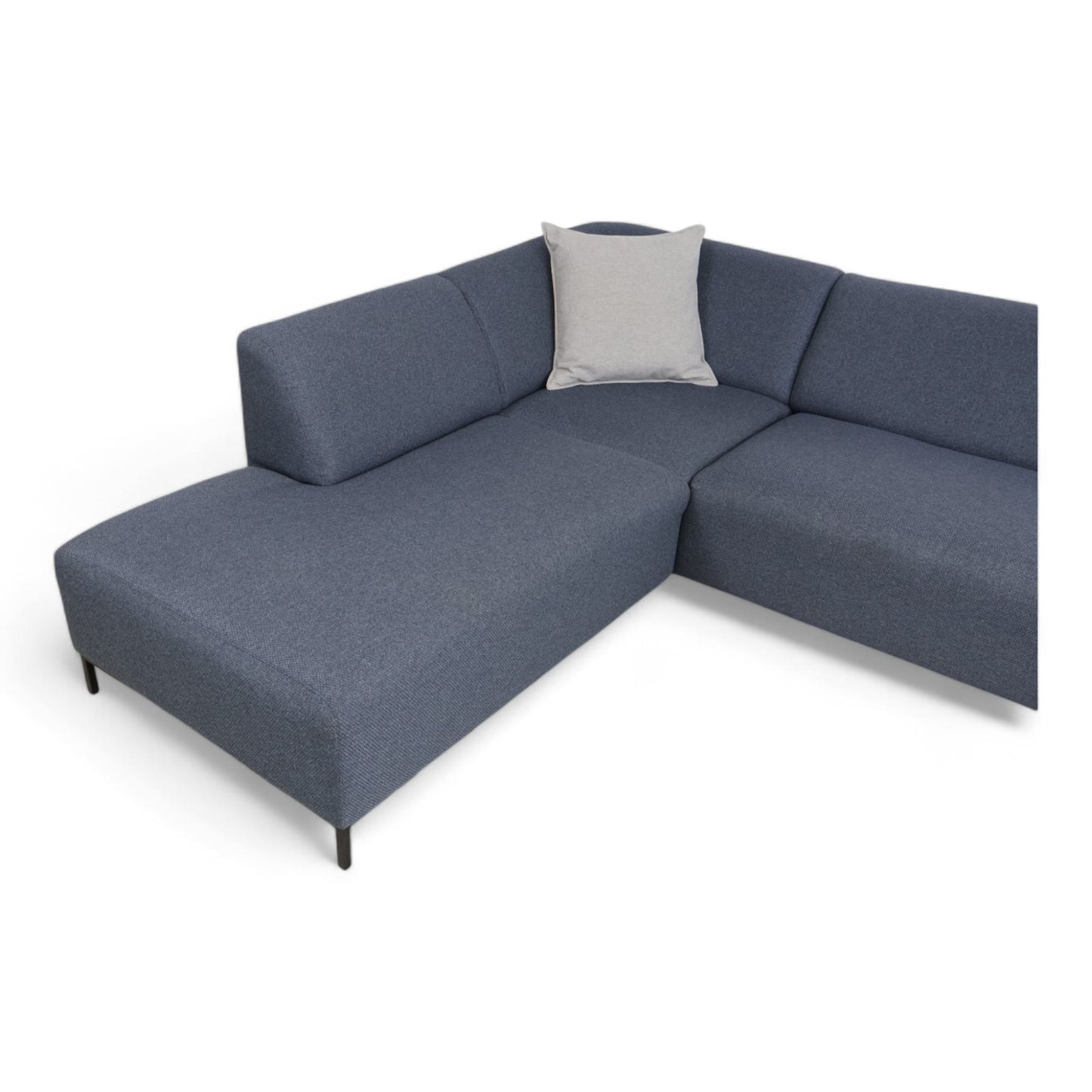Sofaen har minimalt med slitasje og fremstår ny. Stoffet på sitteputene har falmet noe i fargen foran, men dette er knapt synlig. Rask levering tilgjengelig.