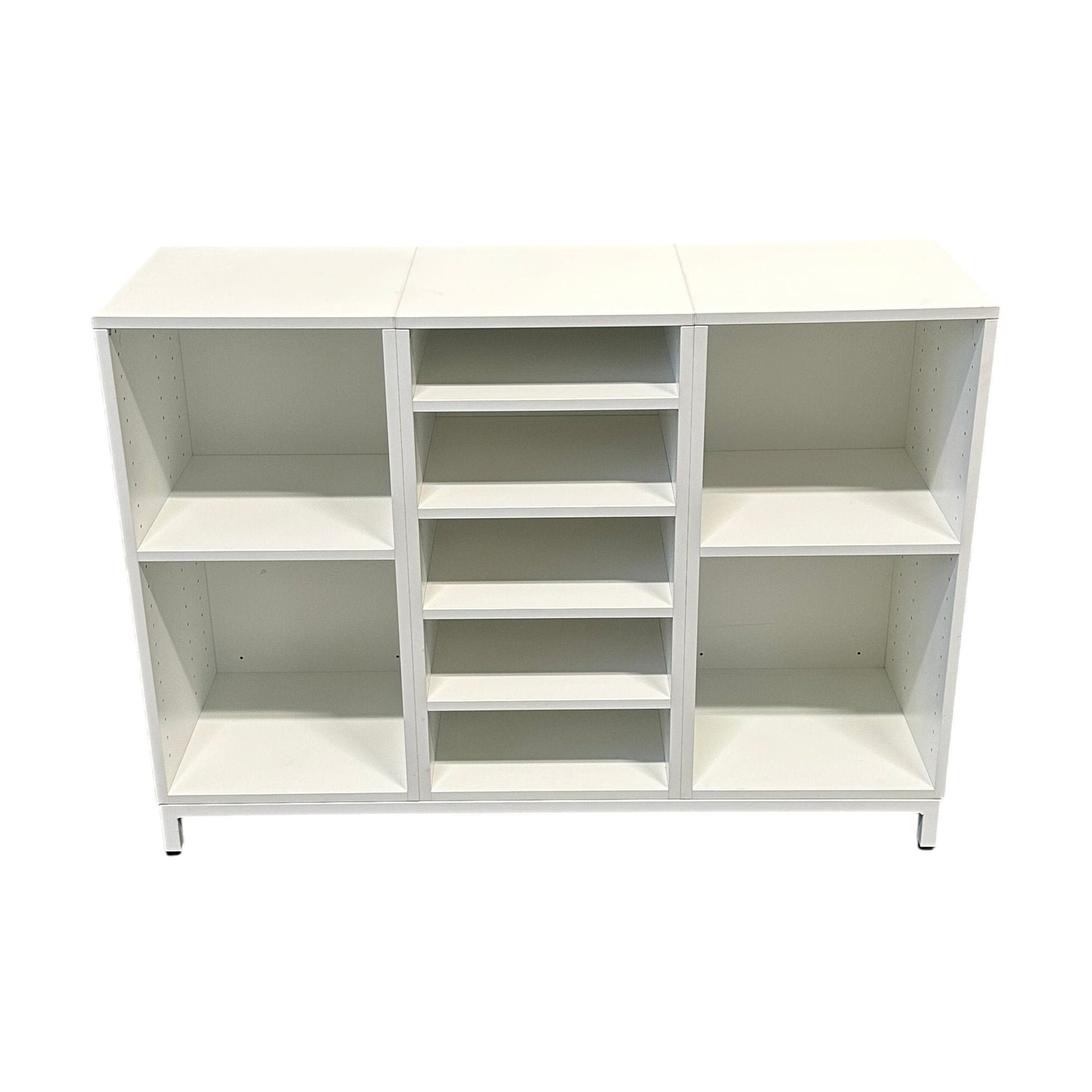 Praktisk bokhylle fra QBUS med tre hyller og benstativ, perfekt for kontorbruk eller stue. Denne hvite bokhyllen tilbyr god plass til bøker og dekorative elementer, med et minimalistisk design som garderes med holdbarhet og stil.