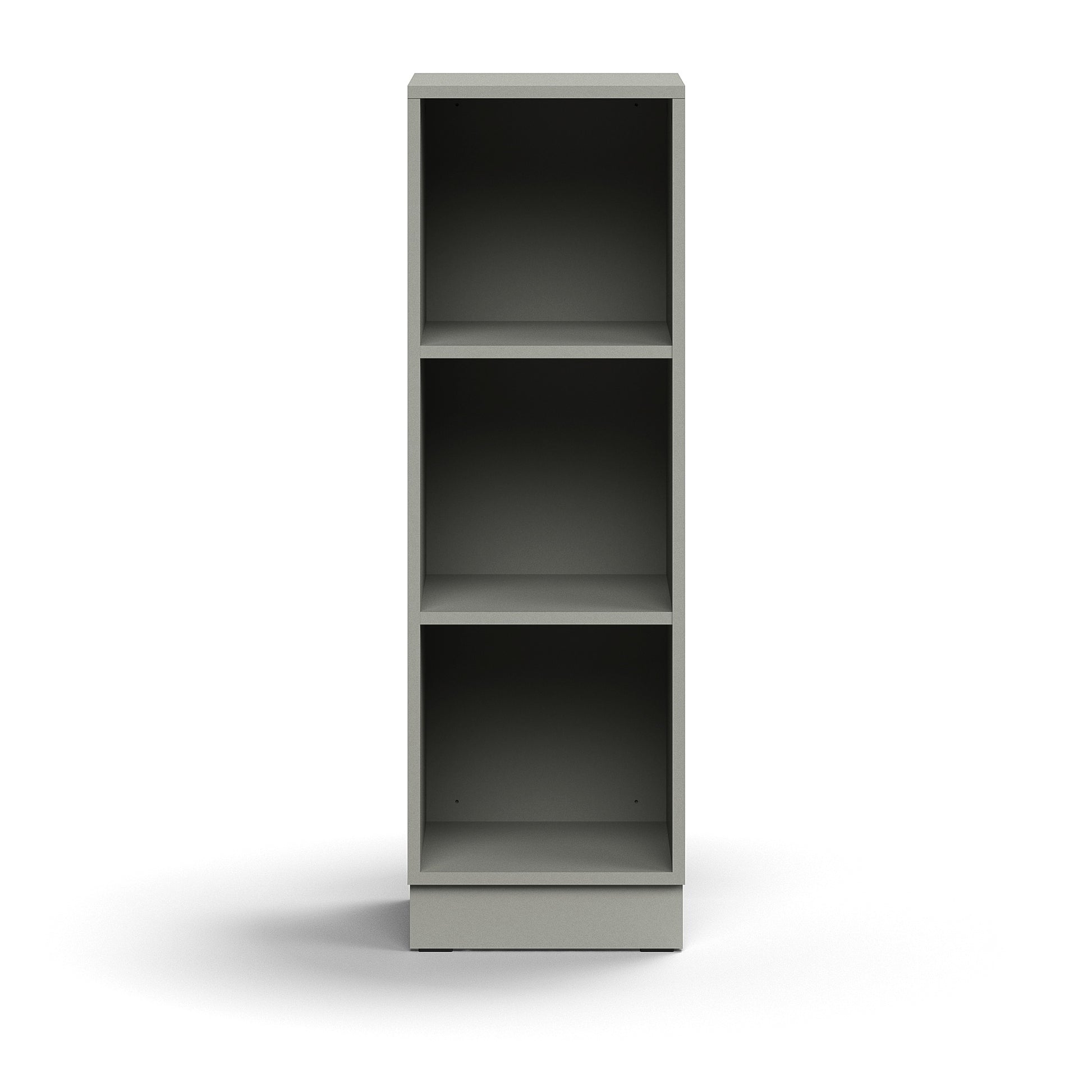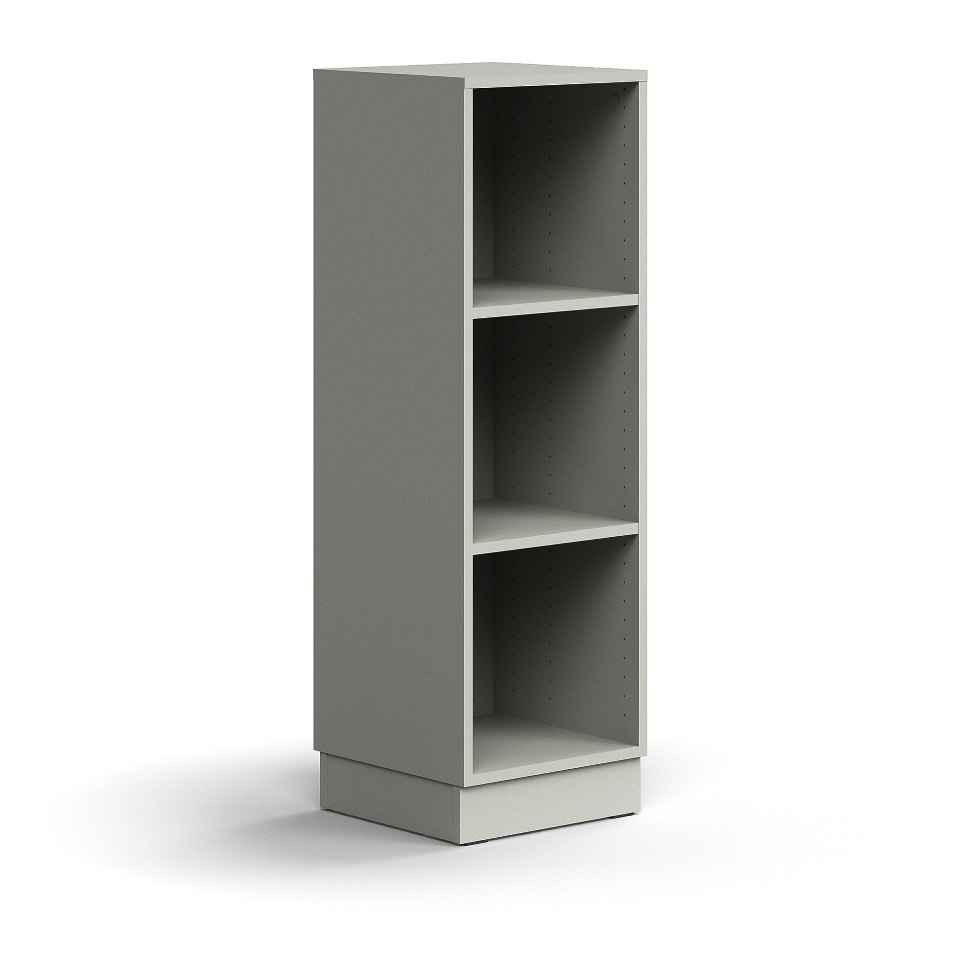 Moderne bokhylle fra AJ Produkter med et stilrent design, perfekt for kontor eller konferanserom. Denne åpne bokhyllen i lys grå laminat har 2 hyller og en sokkel, som gir et elegant og funksjonelt uttrykk i ethvert rom.