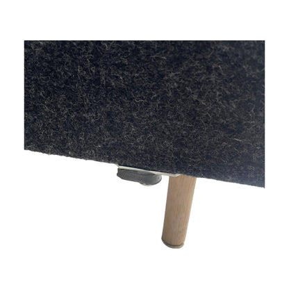 Sofaen har et knekt ben og skader på koblingsdelene, men dette påvirker ikke bruken direkte. Det er også litt fargeskitasje foran på sitteområdet, noe som gir karakter til møbelet.