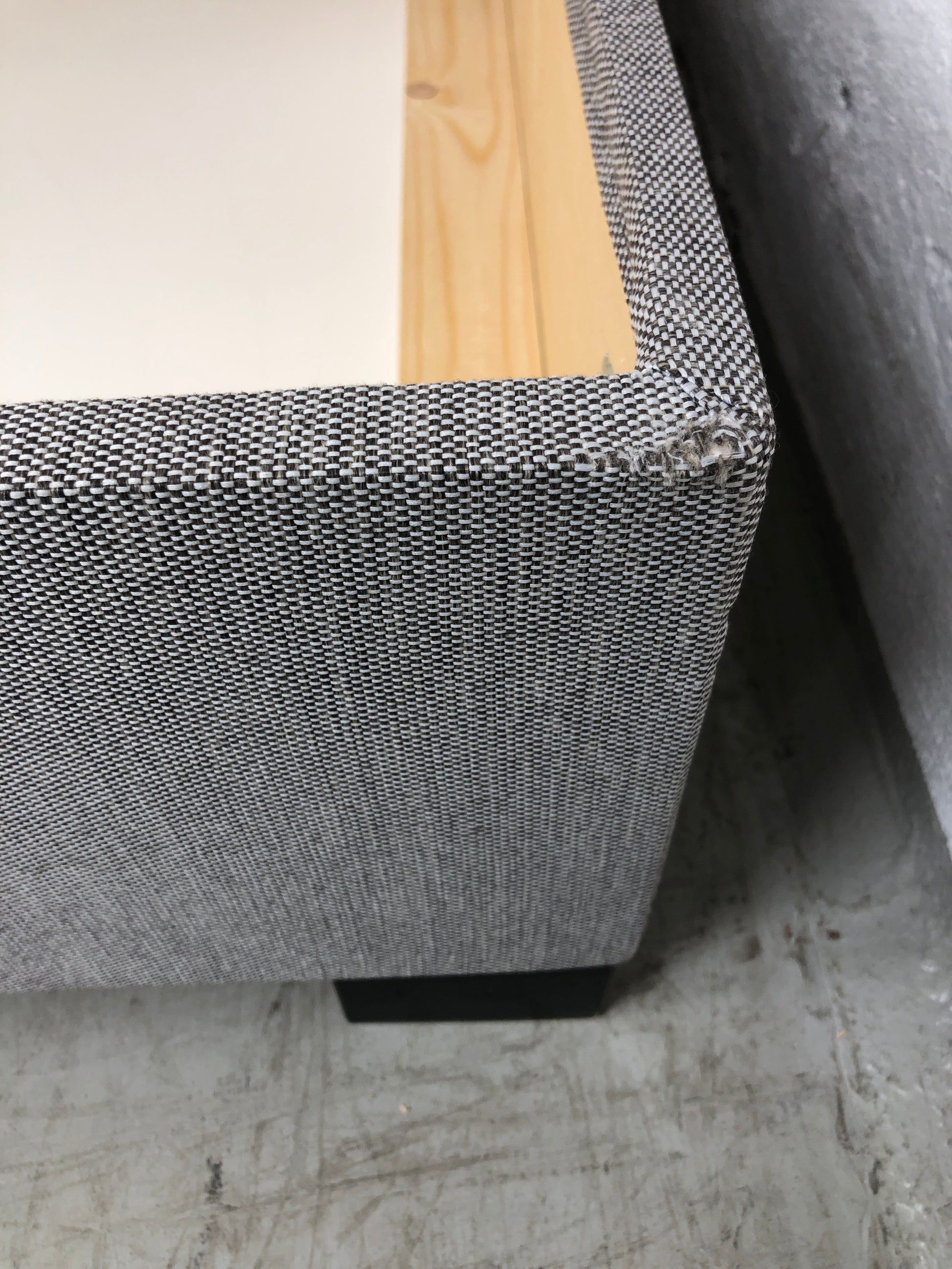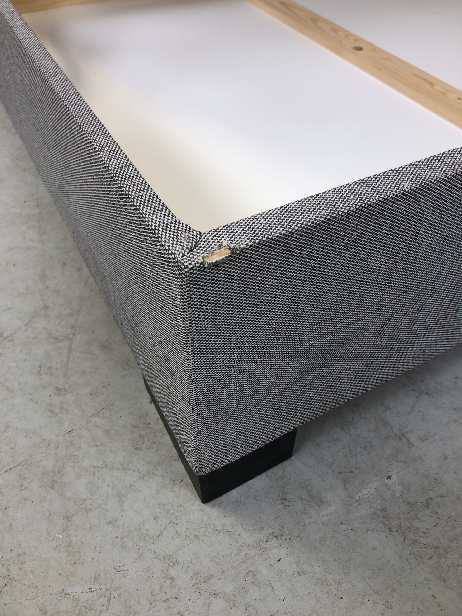 Sengen er i god stand med normale bruksmerker. Stoffet er velholdt, og rammen er solid uten knirking. En stilren og funksjonell seng som passer perfekt til ethvert soverom.