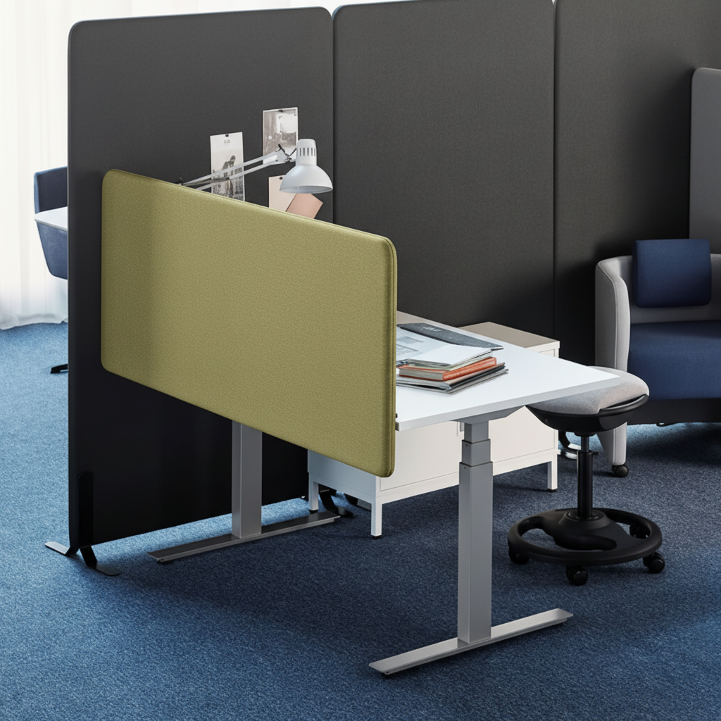 Praktisk og elegant skillevegg fra Glimakra of Sweden, designet for å dele opp arbeidsplasser og skape mer private rom i åpne kontorlandskap. Denne bordhengte skilleveggen er trukket i en stilren mosegrønn farge, som gir et naturlig og beroligende preg til kontormiljøet. Materialet har en tekstur som ikke bare gir estetikk, men også bidrar til akustisk demping, noe som er viktig for å fremme fokus og produktivitet. Feste medfølger.