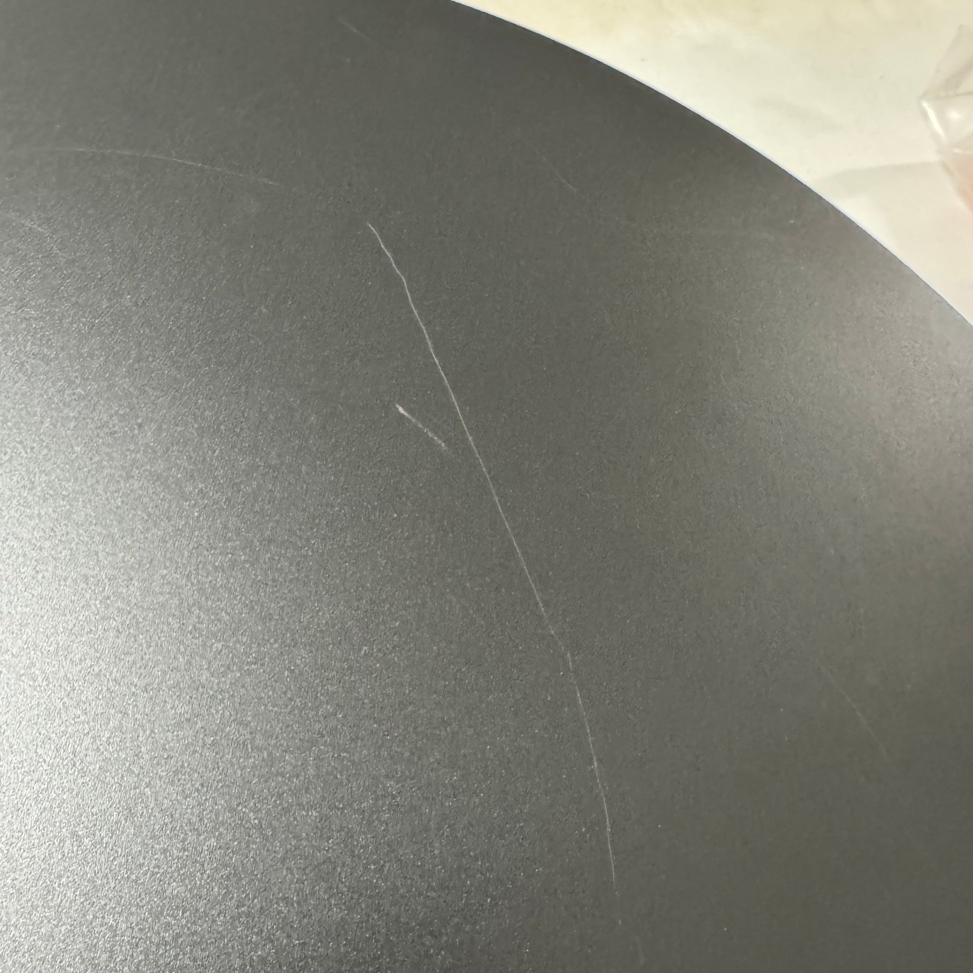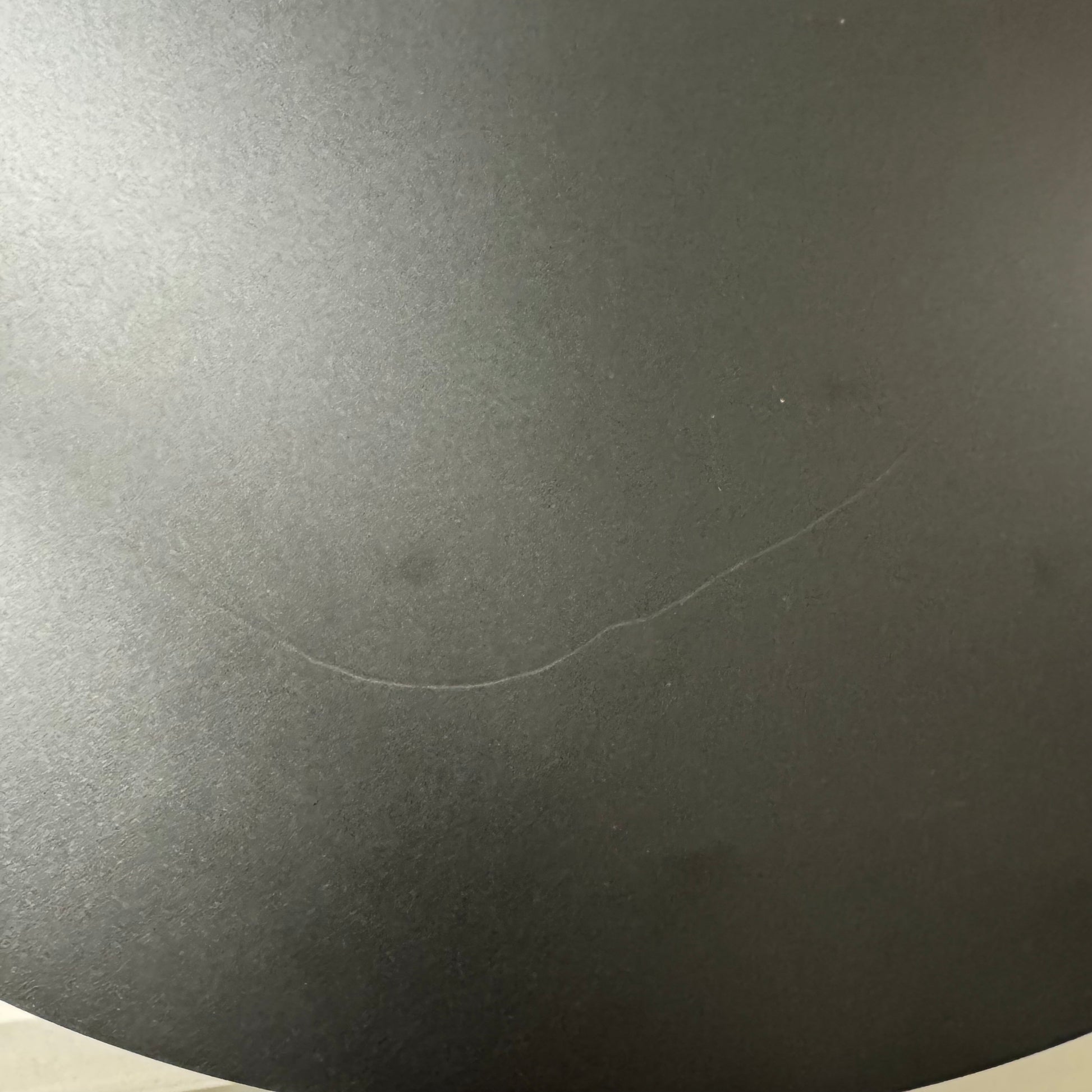 Dette bordet er i god tilstand med noen riper i platetoppen, men det er ingen dype skader og det gir fortsatt et innbydende uttrykk.
