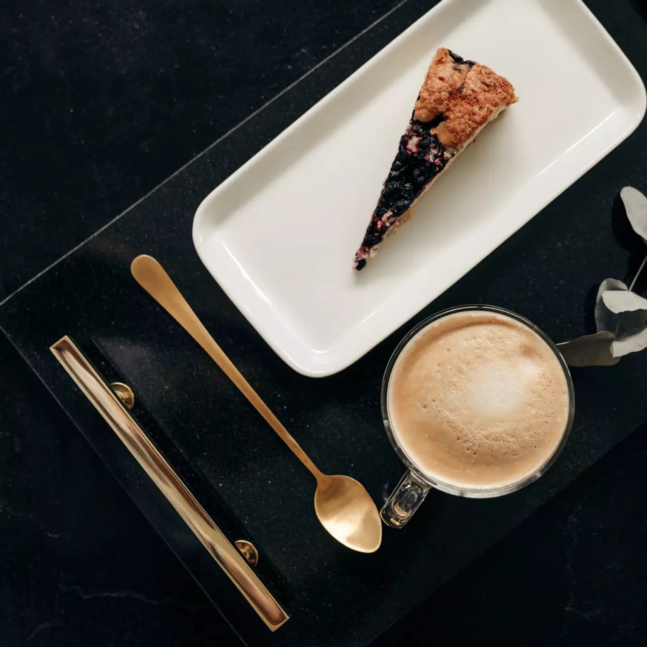En eksklusiv brett i vakker granitt med unikt, naturlig mønster og farge. Brettet har håndtak i solid messing med Hilke Collections unike messingkode.