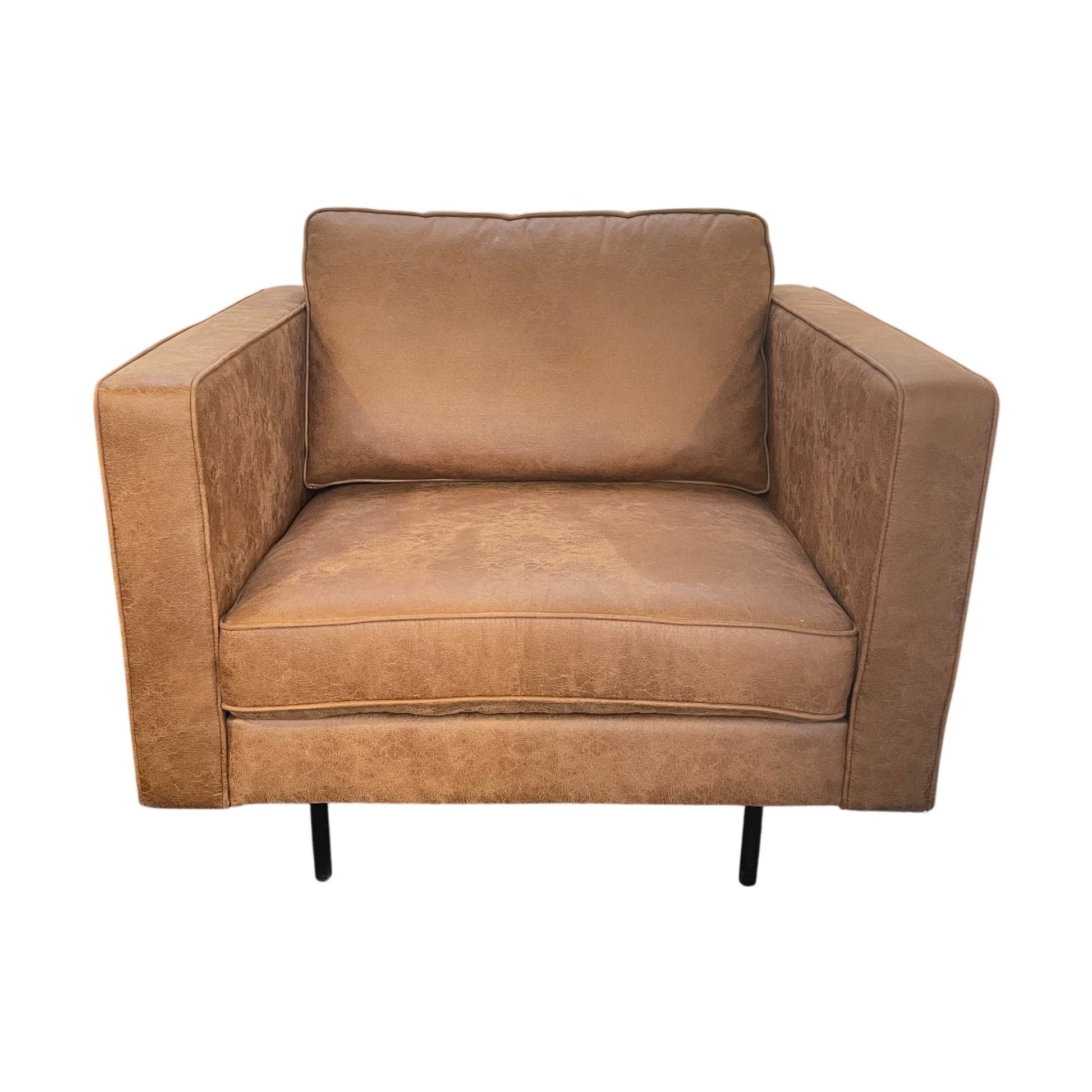 Komfortabel Westin lenestol med elegant design og mykt skinn i en varm brunfarge. Denne lenestolen er perfekt for avslapning, og dens gode sittekomfort gjør den til et ideelt valg for stuen, kontoret eller lesehjørnet.