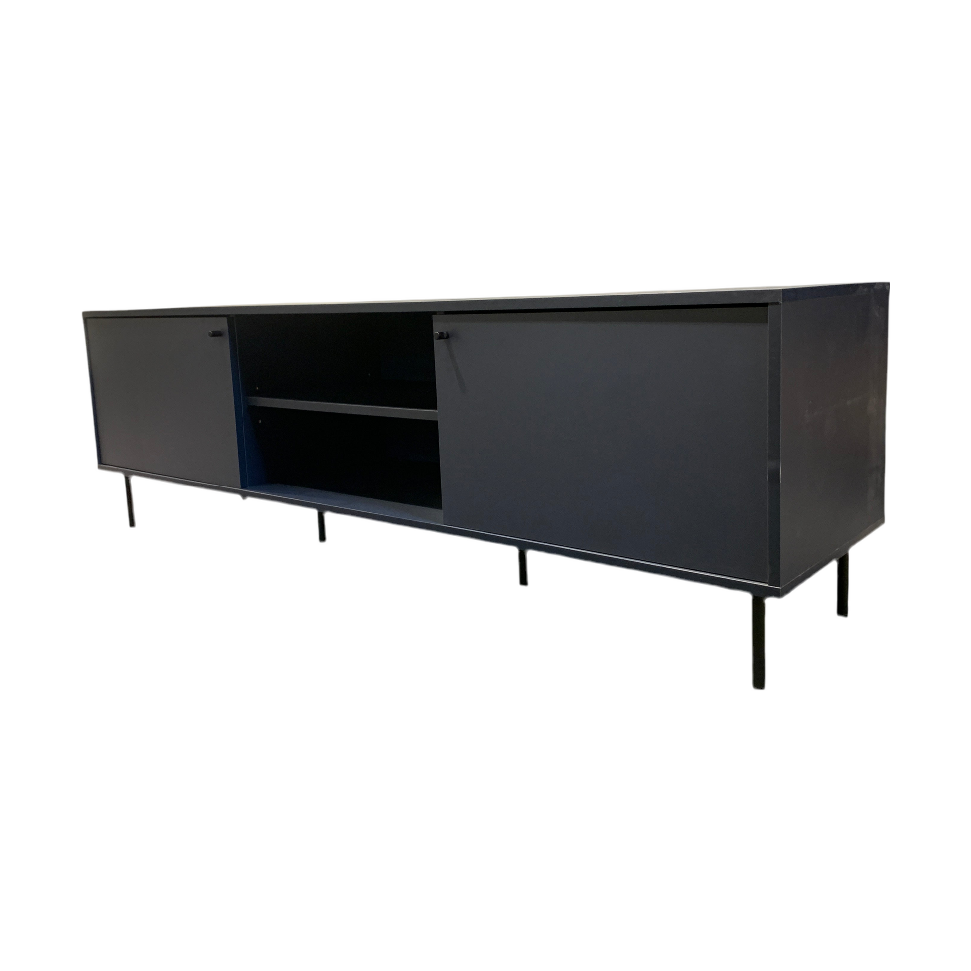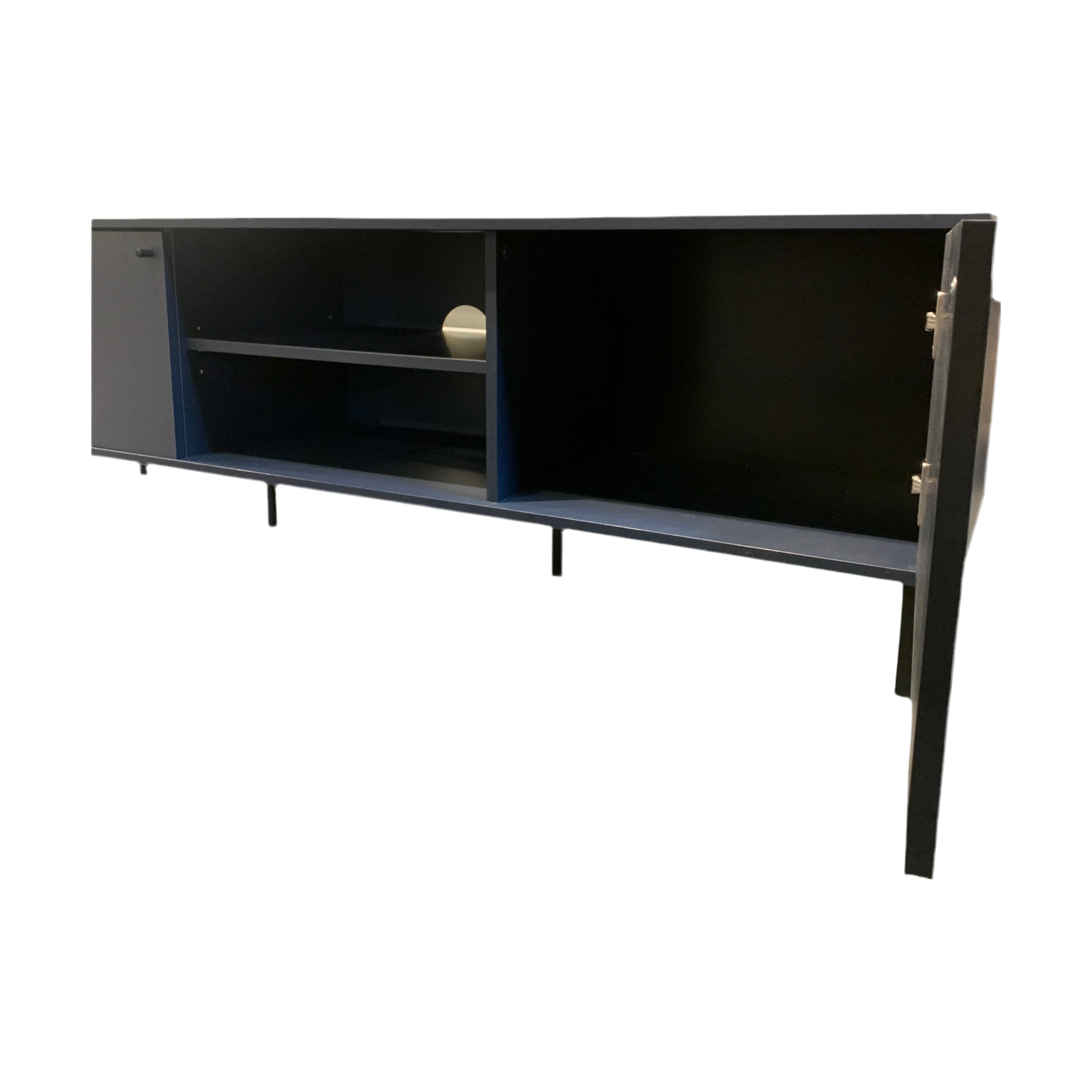 Caracas TV-benk fra A-Møbler er et moderne og stilrent møbel som passer perfekt i enhver stue. Den kommer i en elegant svart finish og har praktiske oppbevaringsmuligheter med to skapdører og en åpen hylle for underholdningsutstyr.