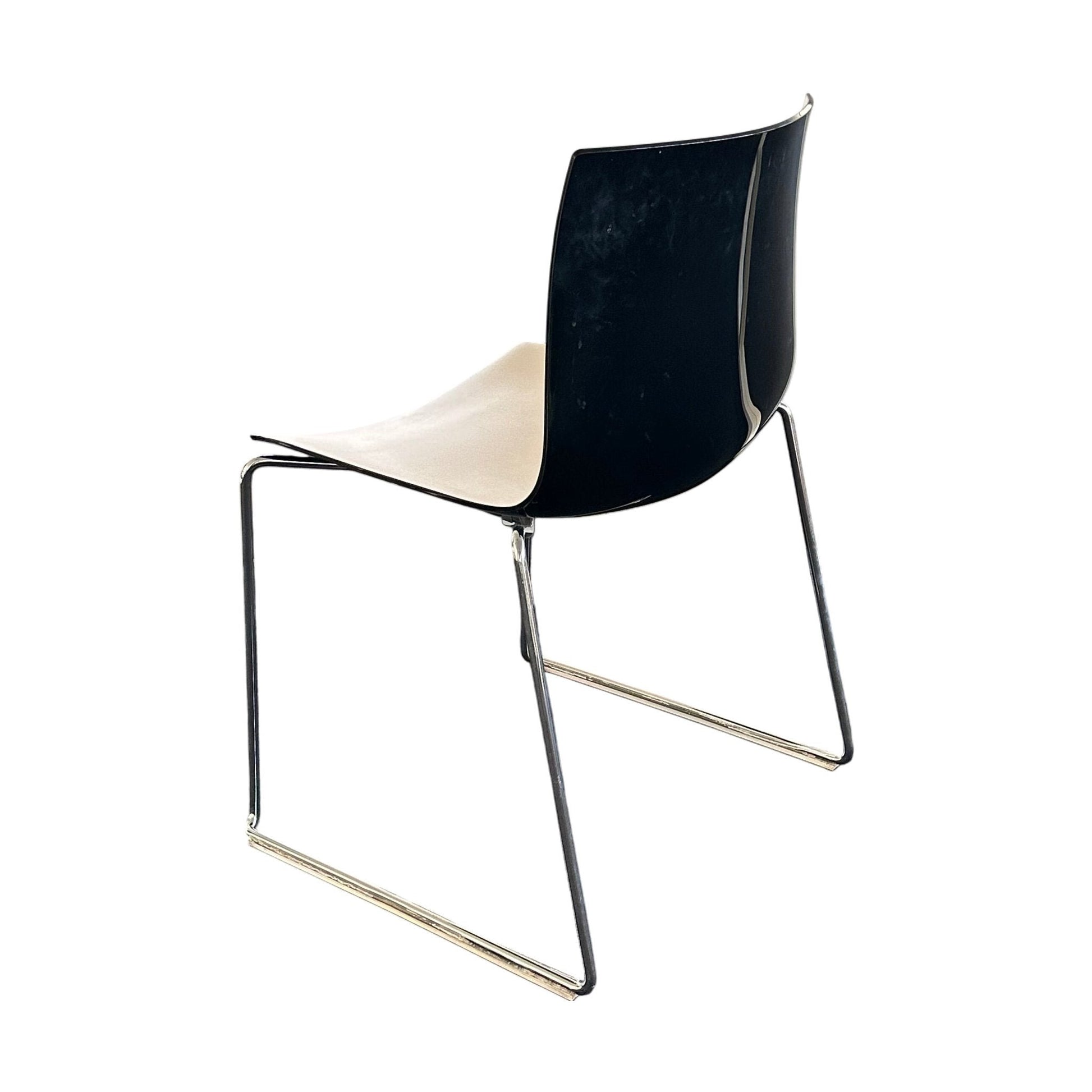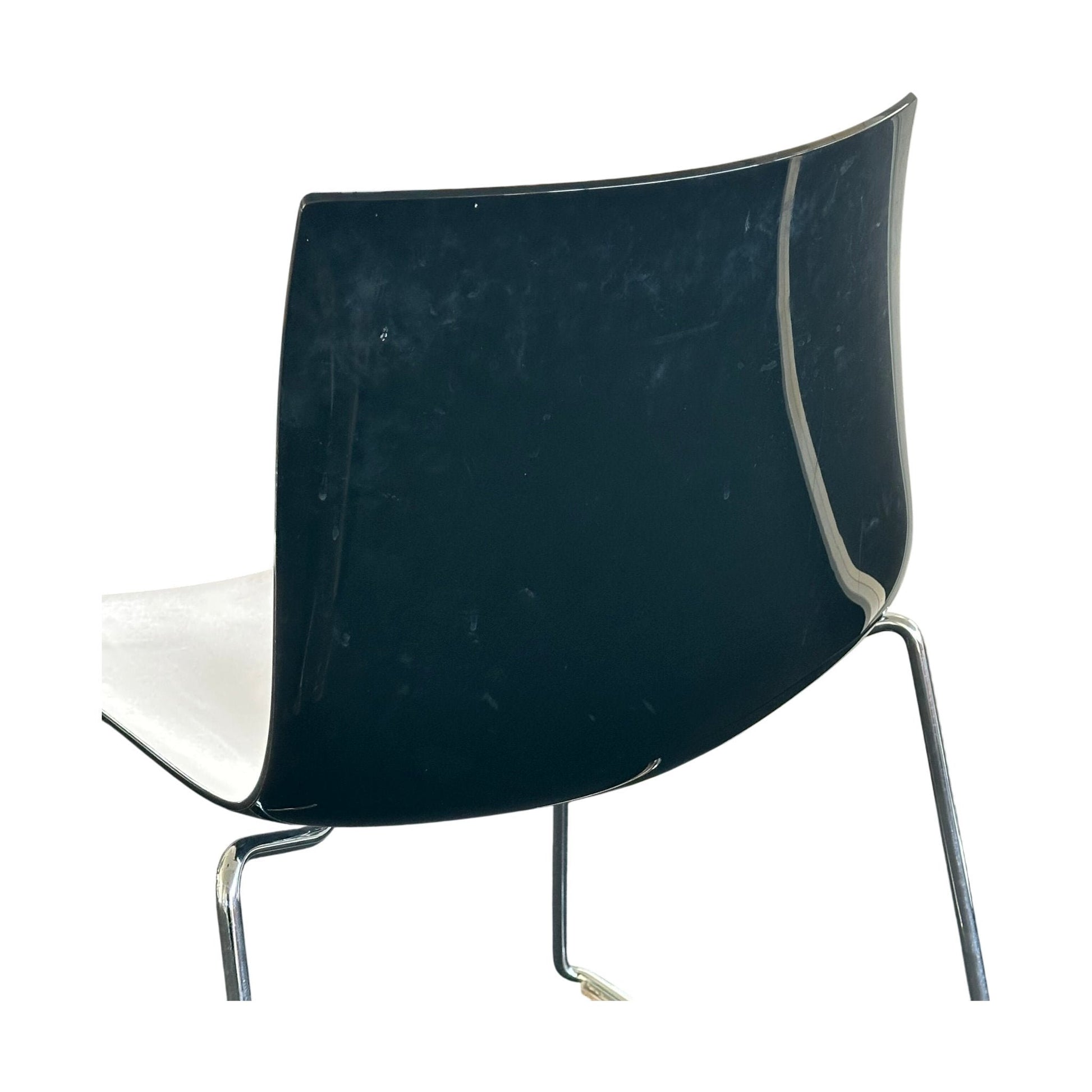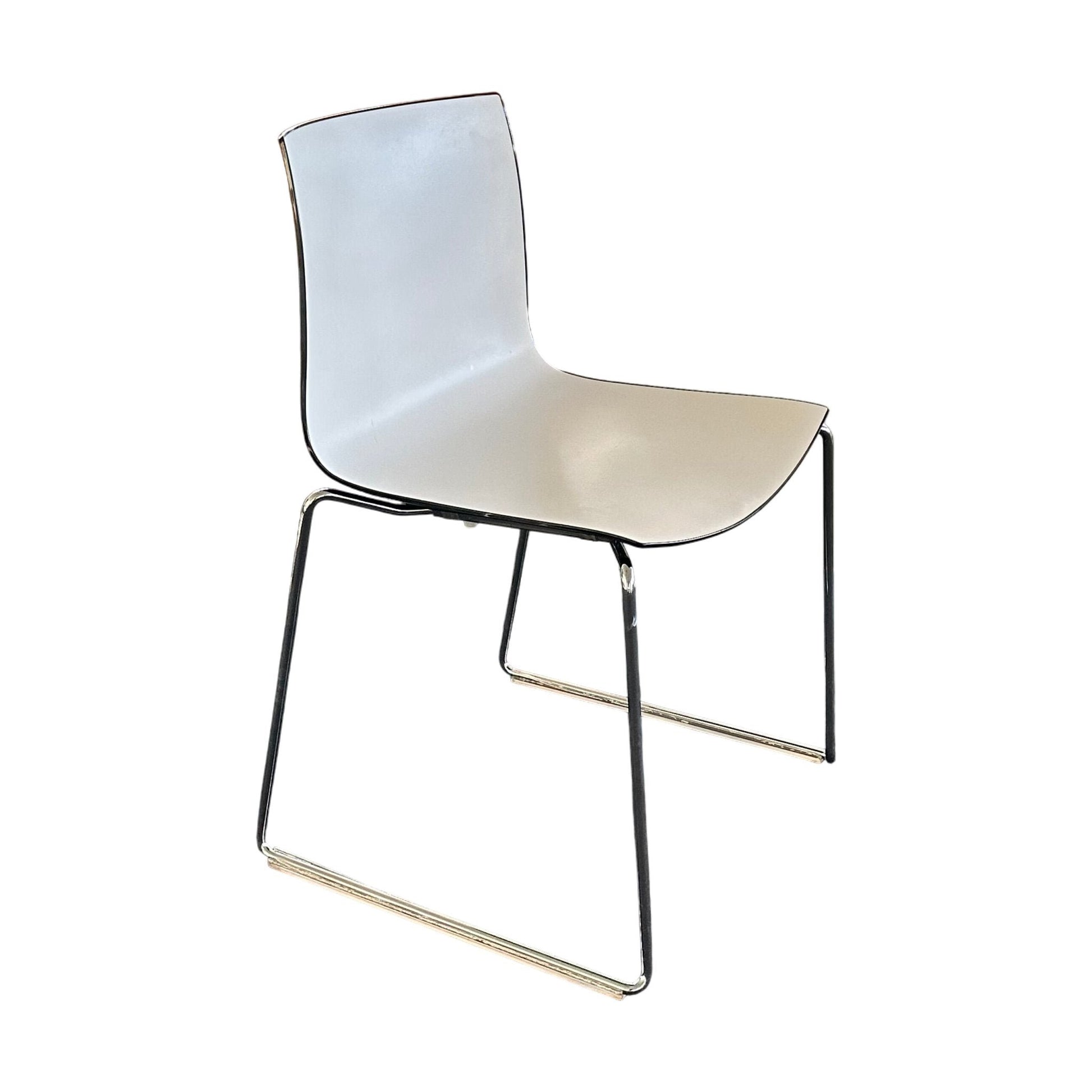 Catifa 46 møteromsstol fra Arper kombinere et moderne design med funksjonalitet. Stolen er trukket i hvit plast med en stilren sort ramme, noe som gir et elegant uttrykk i ethvert møterom.