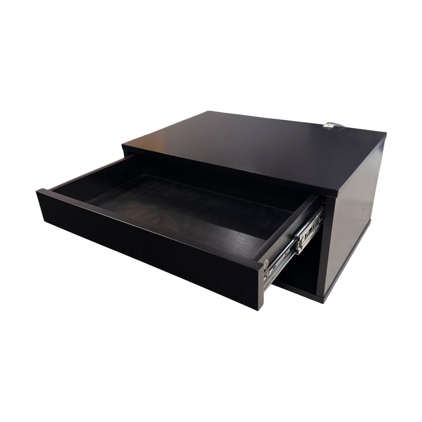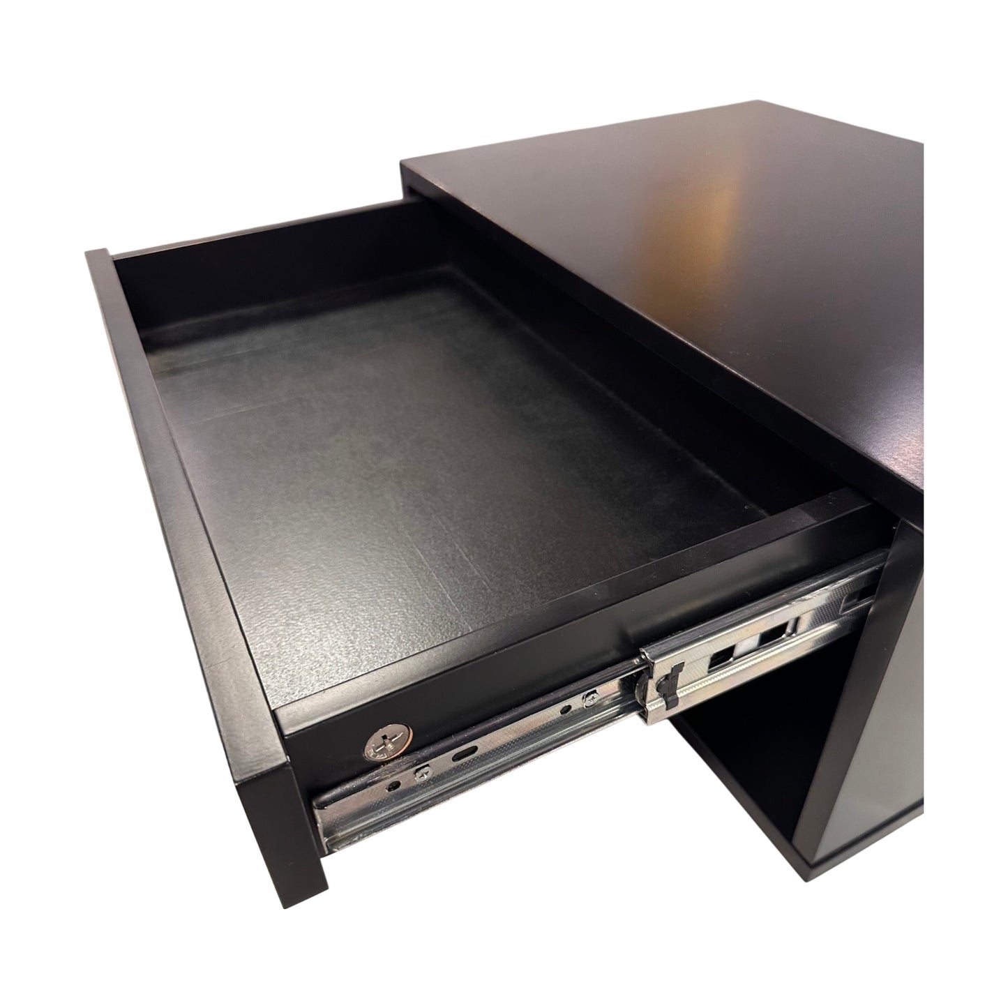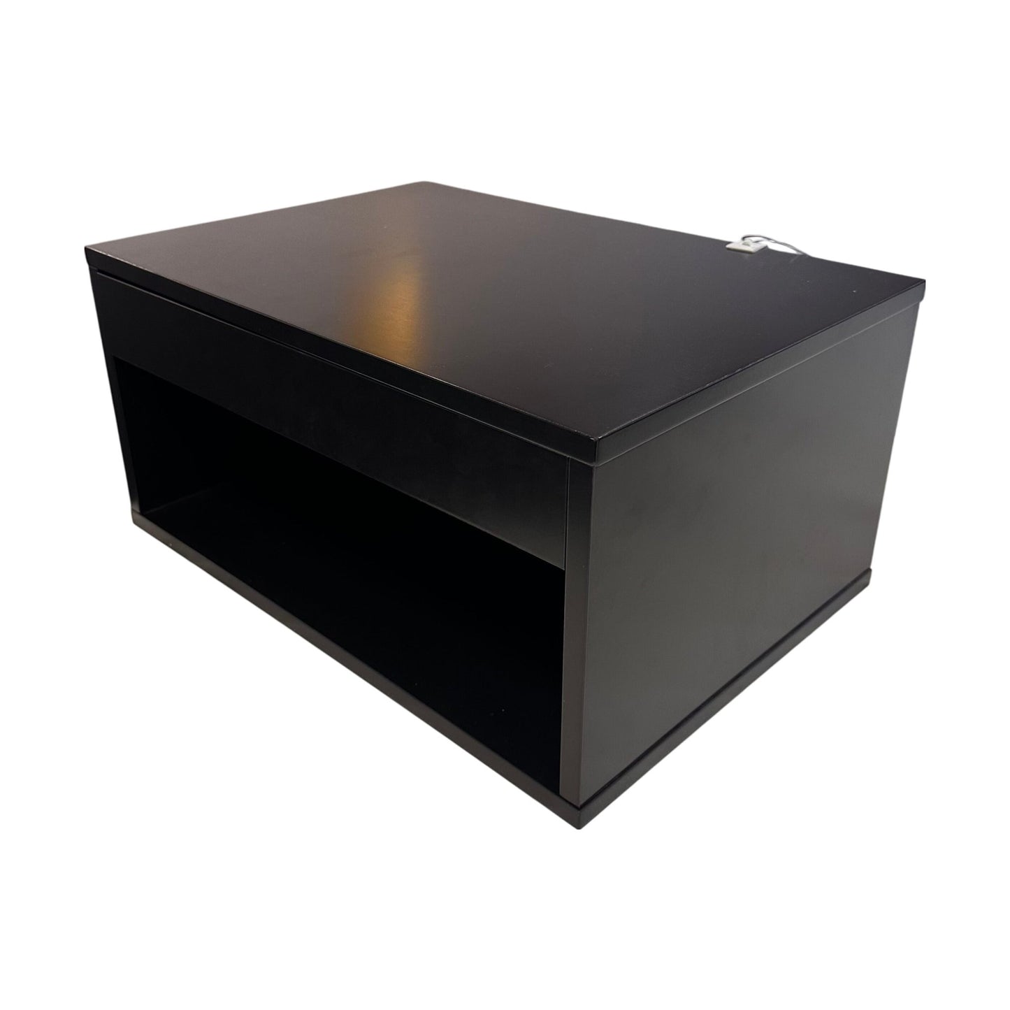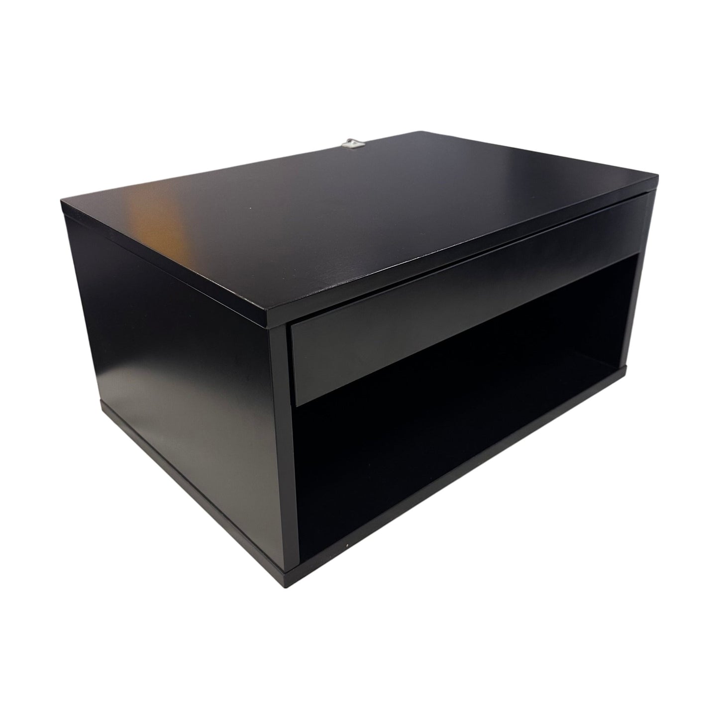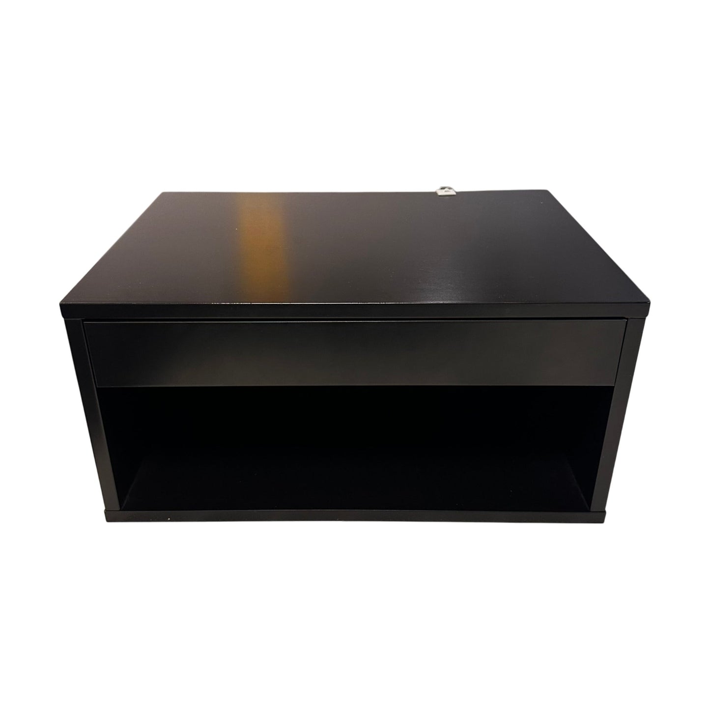 Cholet er et elegant nattbord i sortmalt MDF, designet for å henges opp på veggen, noe som gir et moderne og luftig preg på soverommet. Den enkle, stilrene formen passer perfekt inn i en rekke interiørstiler. Nattbordet er kompakt og funksjonelt, med en skuff som gir praktisk oppbevaring for nødvendigheter, og en åpen hylle under som er ideell for bøker eller magasiner.
