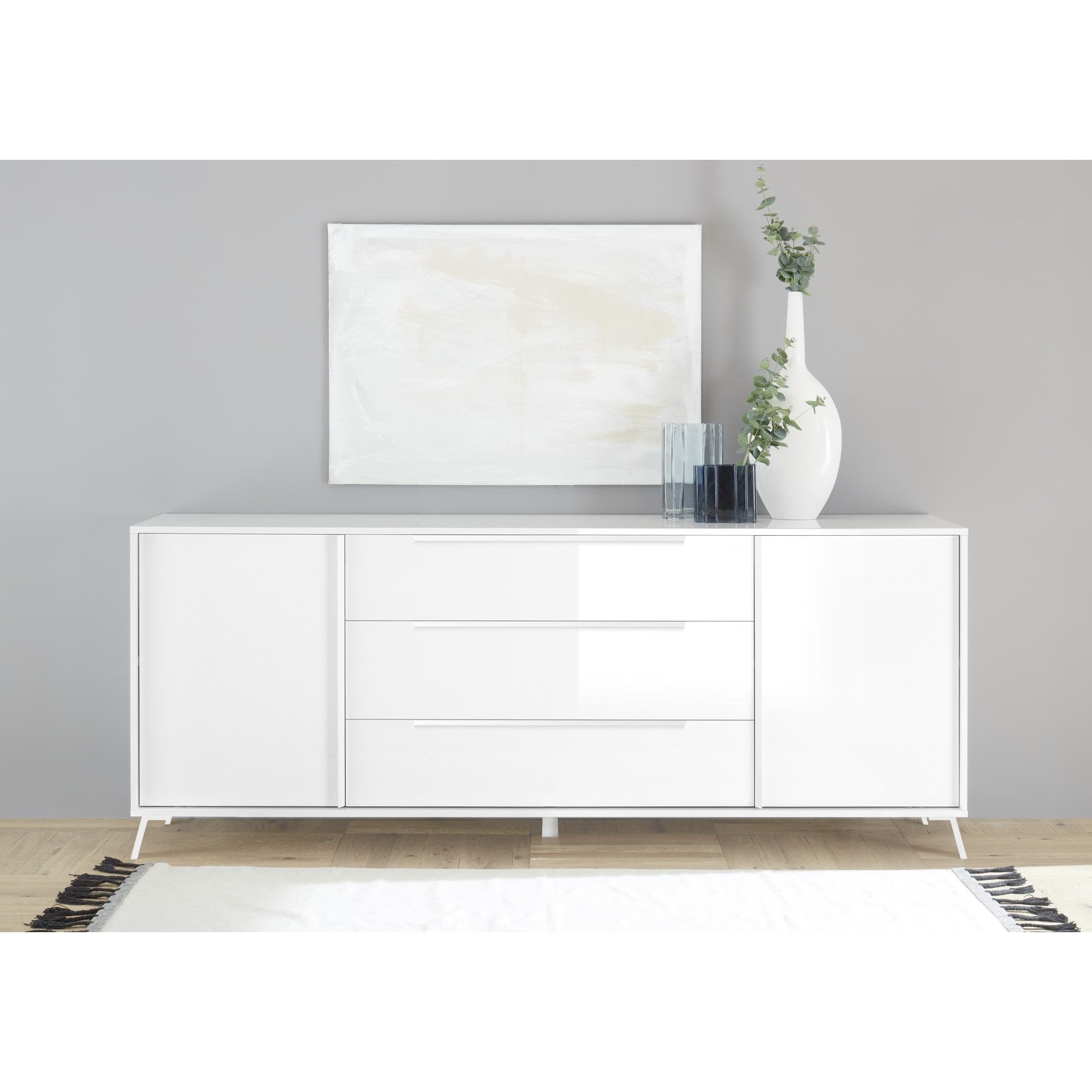 City skjenk fra A-Møbler, 205x86 cm, hvit høyglans
