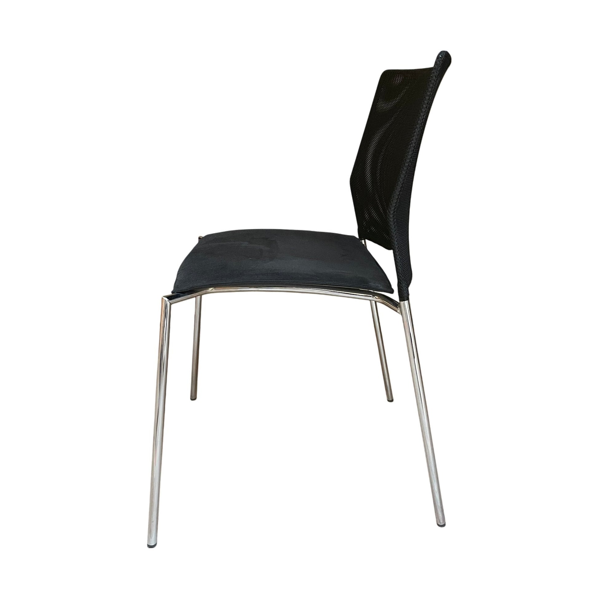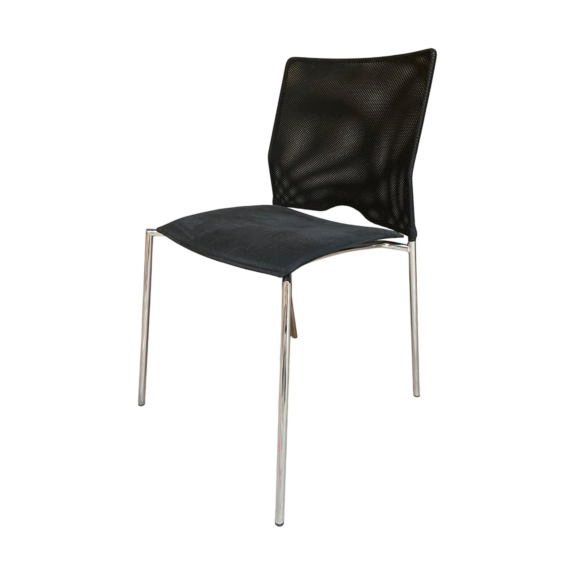 Moderne møteromsstol fra Lammhults med et stilrent og funksjonelt design. Stolen har en rygg laget av nettmateriale som gir god ventilasjon, mens setet er trukket i mykt svart stoff for optimal komfort. Den minimalistiske utformingen, med en lett ramme i krom, gjør stolen perfekt for både møterom og konterror. Stolen er også stablebar, noe som gjør den enkel å oppbevare og flytte ved behov.
