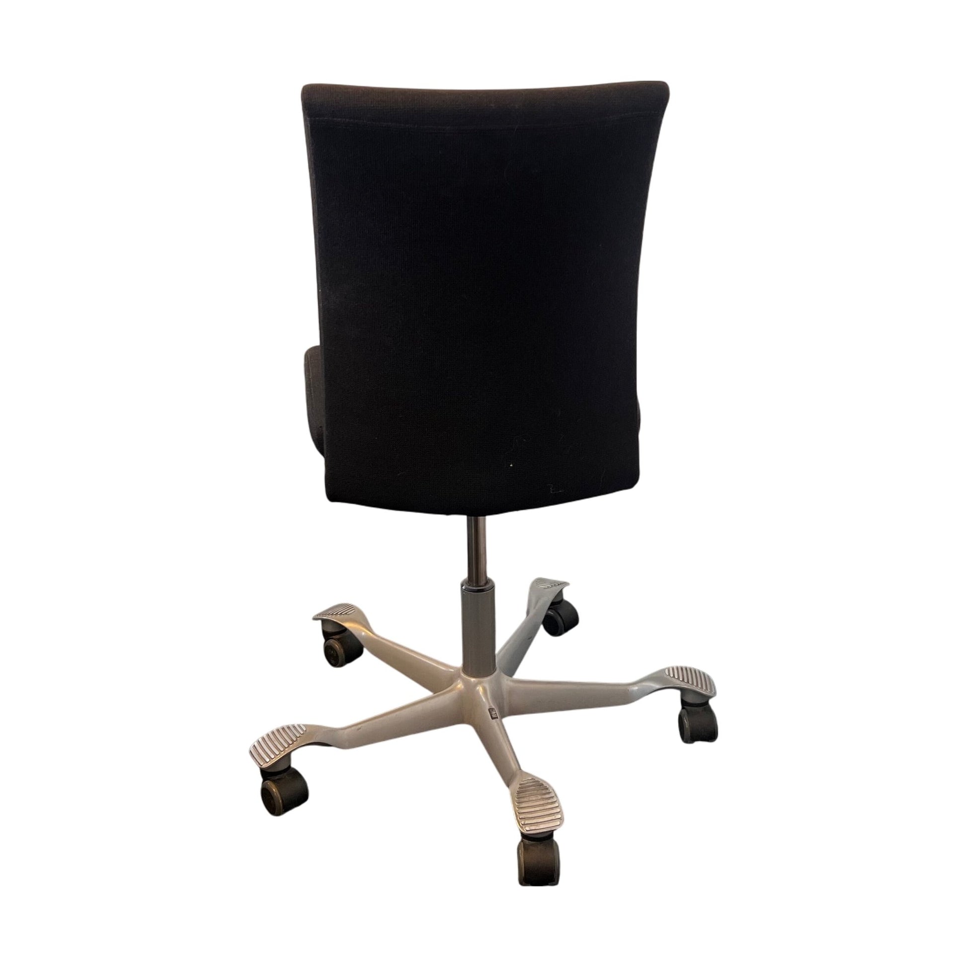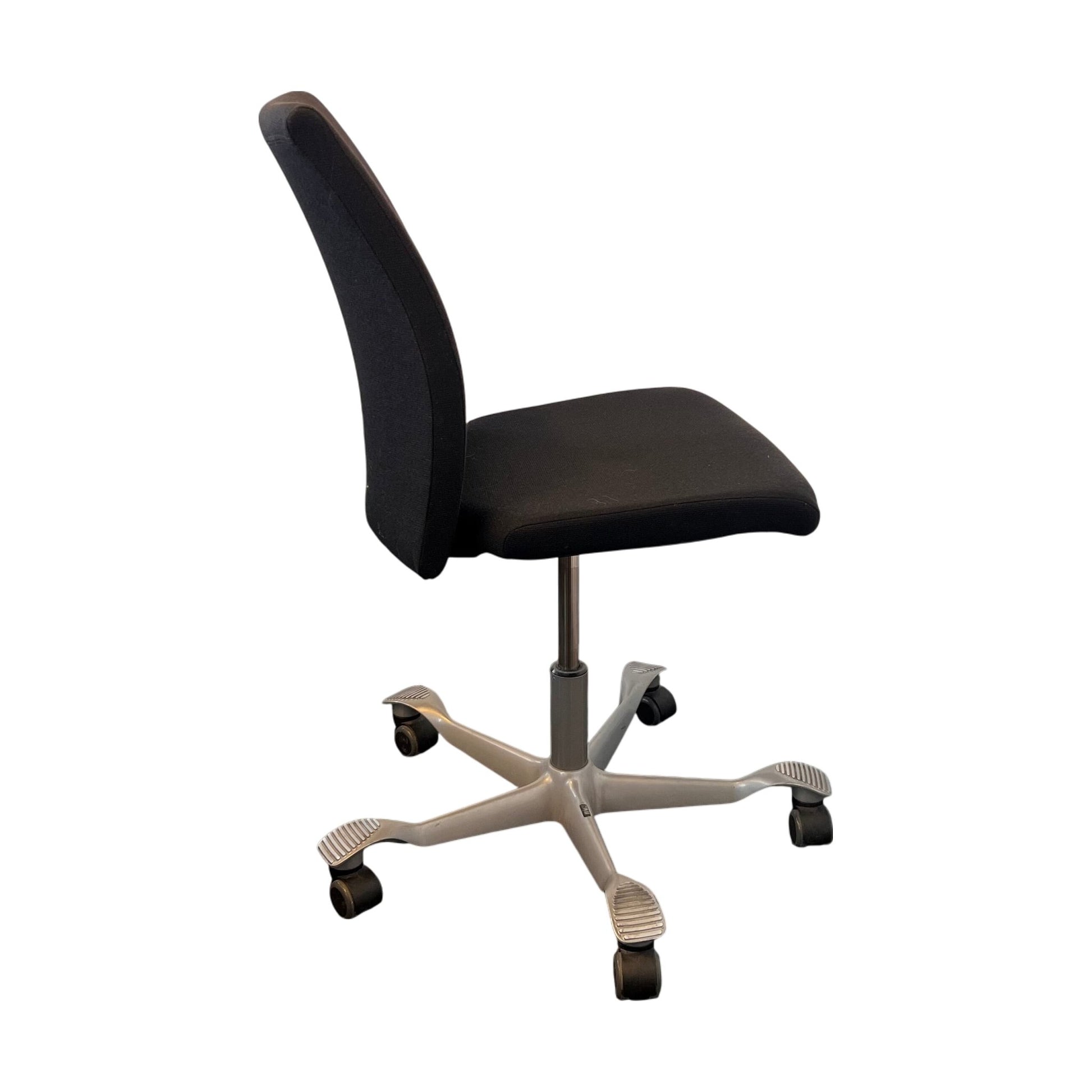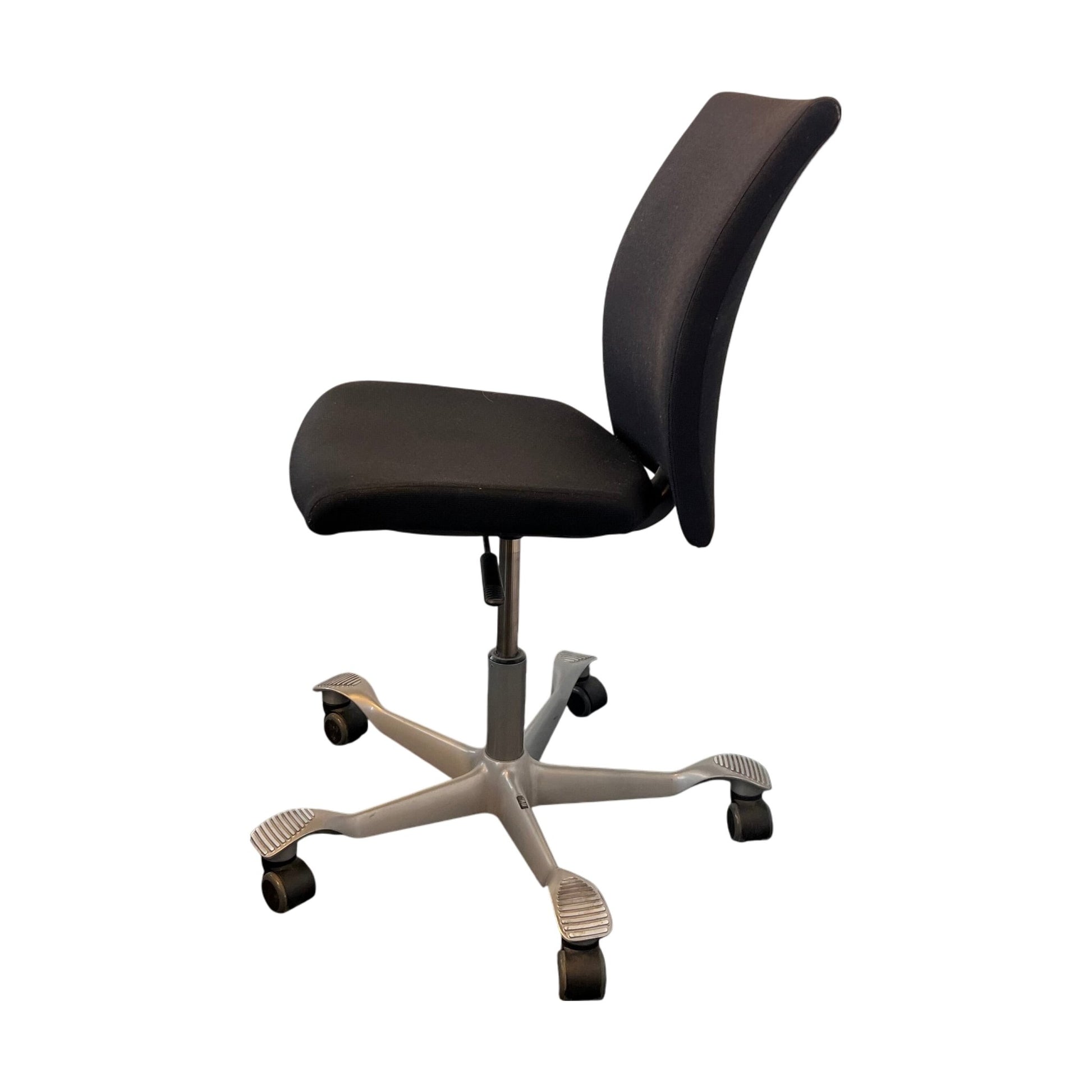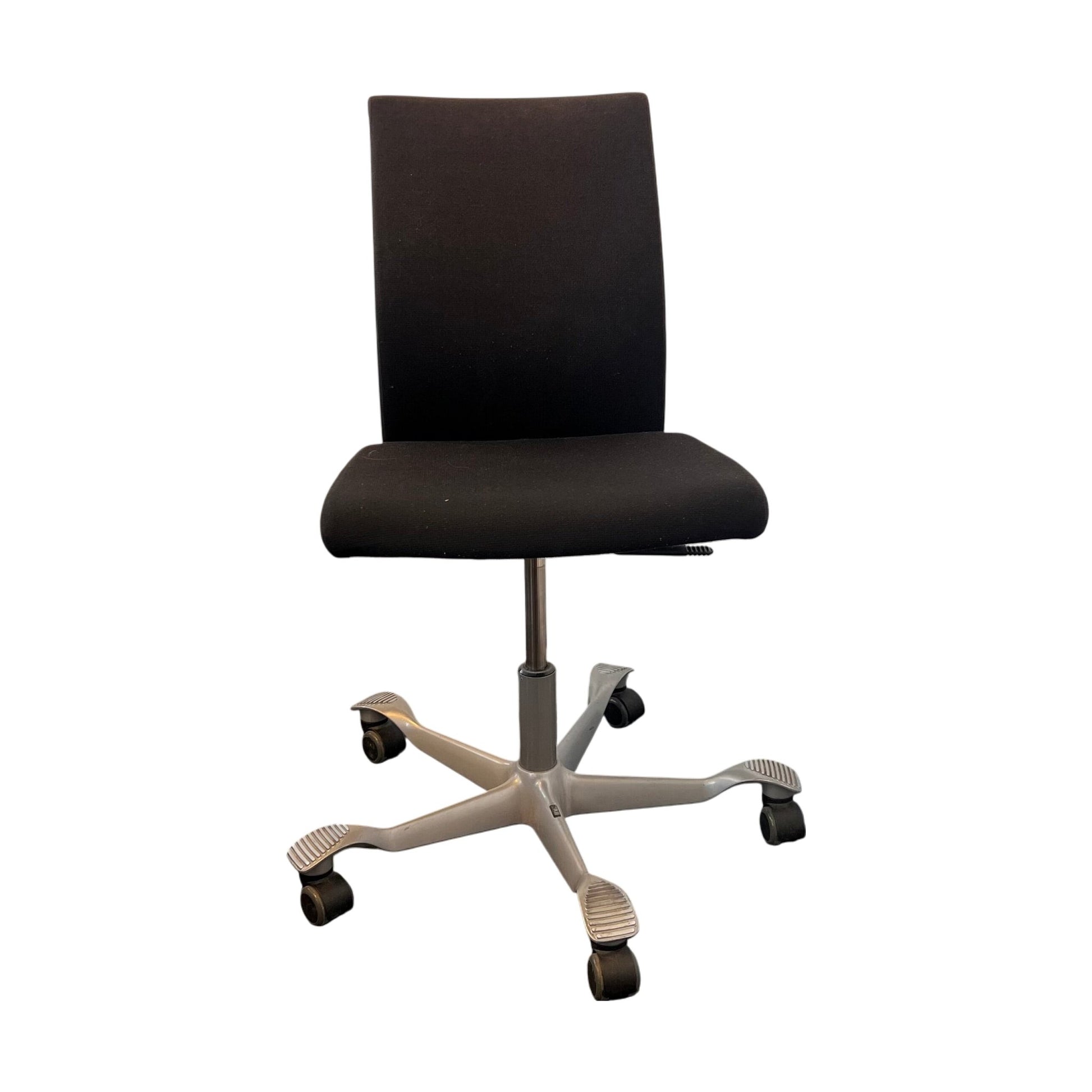 Ergonomisk HÅG H04 Communication kontorstol uten armlener, designet for å gi optimal støtte og bevegelsesfrihet. Stolen har et minimalistisk og moderne design, med et elegant svart stofftrekk, som gjør den ideell for både hjemmekontoret og arbeidsplassen.