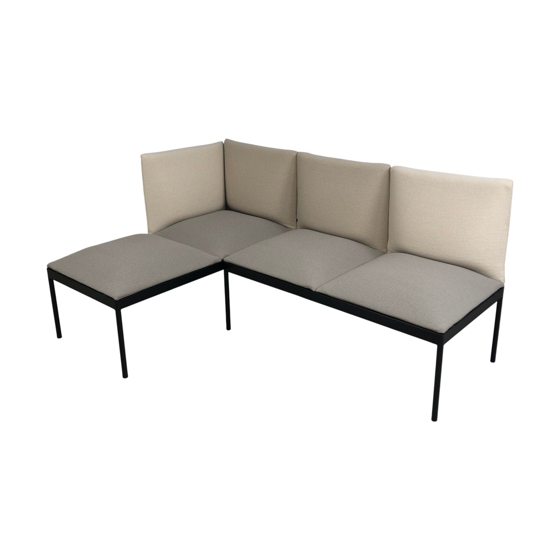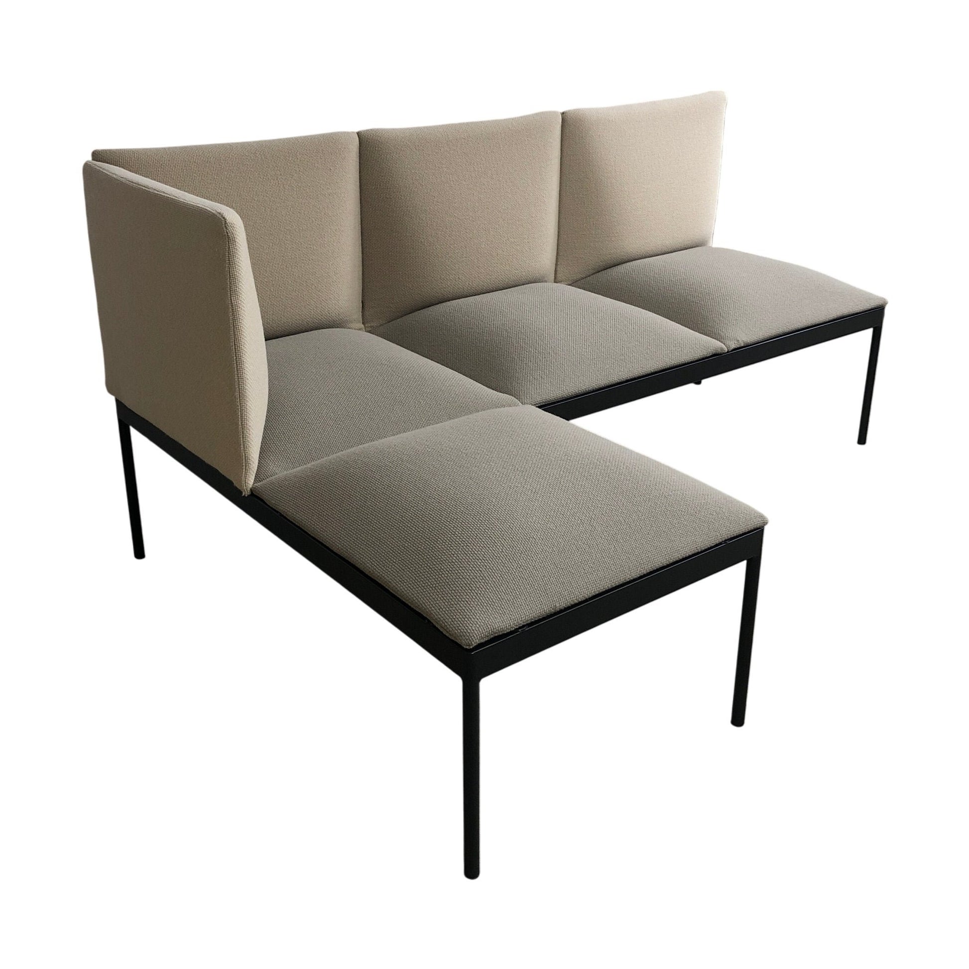 Hjørnesofaen er i utmerket tilstand, uten merkbare bruksmerker. Den er et fantastisk tilskudd til ethvert kontor, og kombinerer komfort med stil.