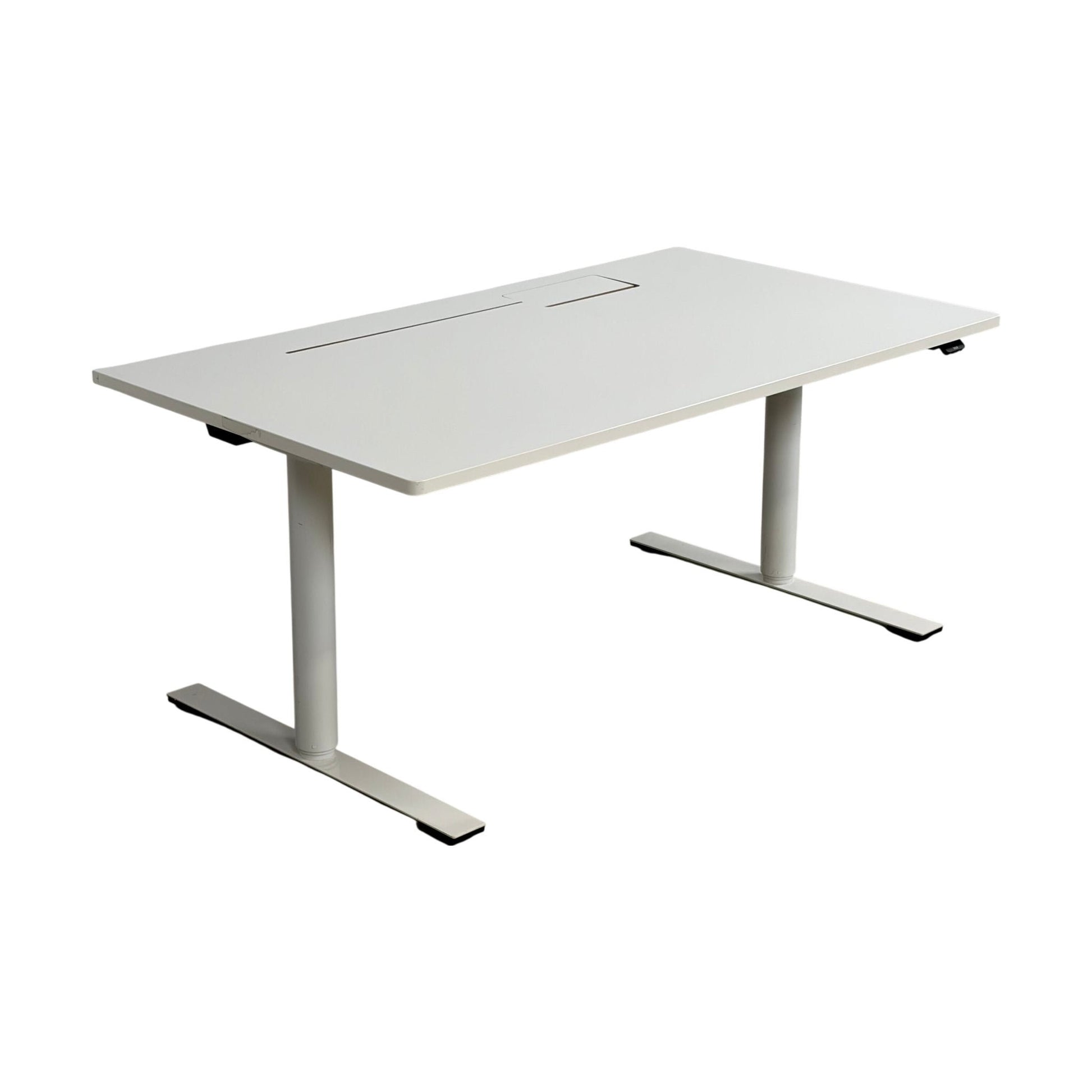 Dencon delta elektrisk hev/senk skrivebord er designet for et stilrent og funksjonelt arbeidsmiljø. Med sin rene, hvite overflate og moderne stil, gir det en profesjonell look til enhver kontorinnredning. Den justerbare høyden gjør det enkelt å tilpasse arbeidsstillingen, enten du trenger å stå eller sitte.