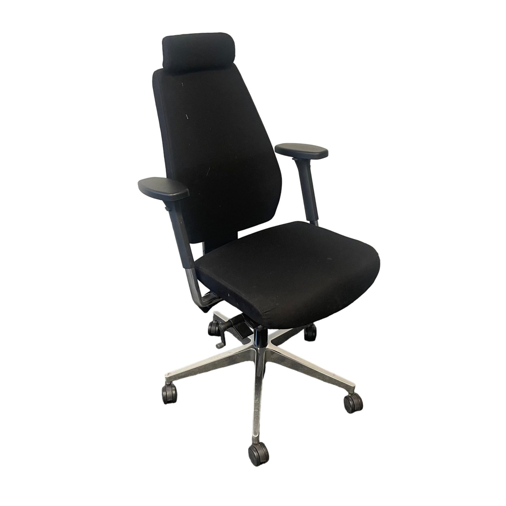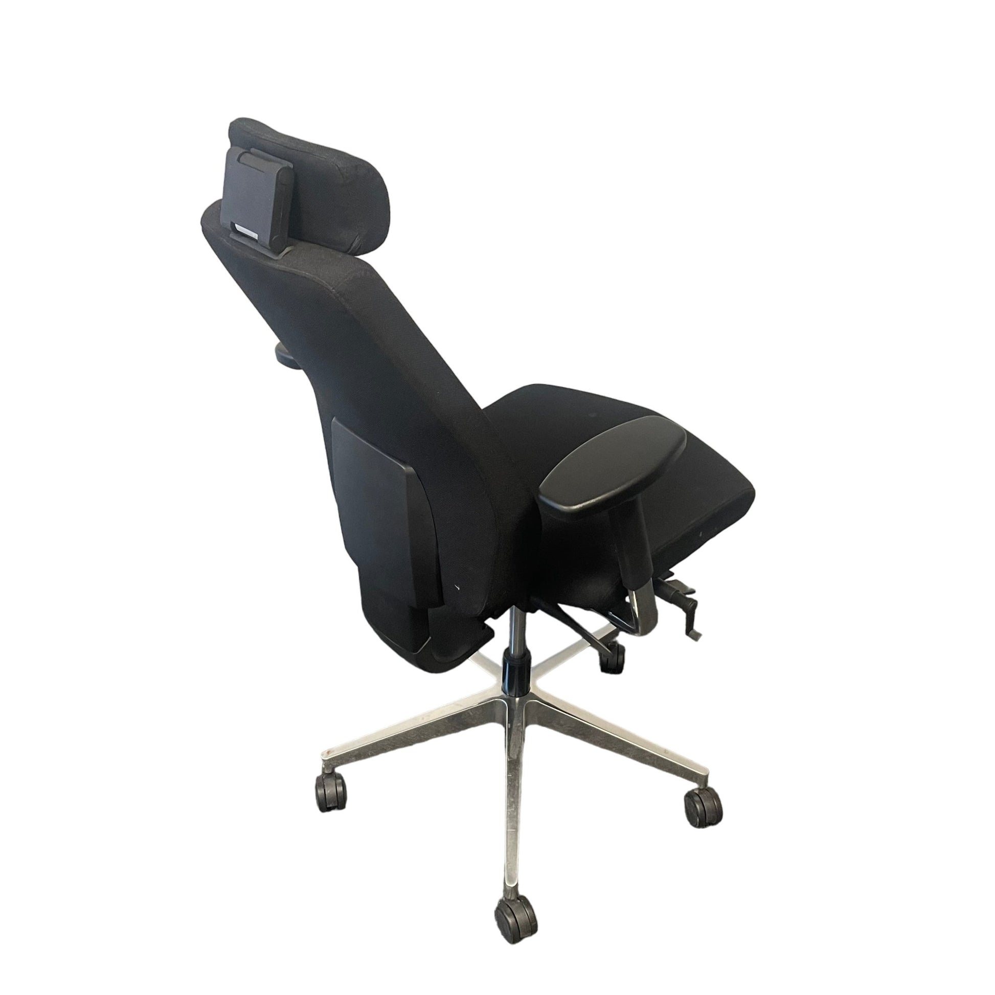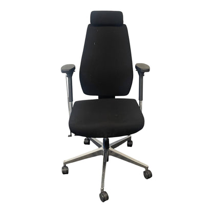 Komfortabel kontorstol fra Donati med sort trekk og justerbar nakkestøtte. Stolen har gode tilpasningsmuligheter med høydejusterbar rygg og sete, samt armlener for optimal støtte.