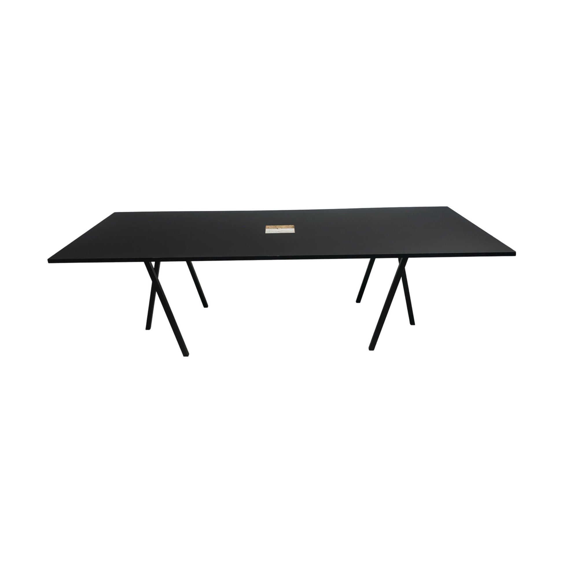 Bordet er i god stand med noe mindre bruksslitasje. Det er ingen synlige skader, og bordflaten er velholdt, noe som sikrer en profesjonell og innbydende atmosfære i rommet.