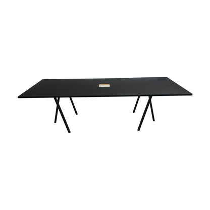 Down møtebord med elegante metallben i svart og en stilren bordflate i sortmalt tre. Dette bordet har et moderne design som passer perfekt både til kontoret og møterommet. Bordet monteres enkelt ved hjelp av medfølgende treskruer.
