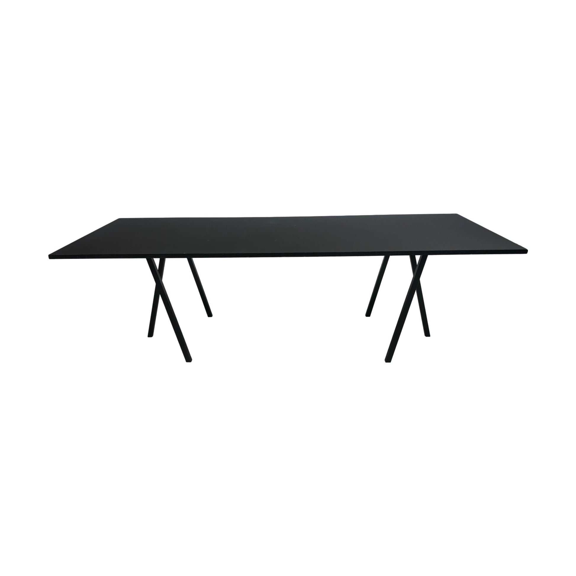 Down møtebord med en solid bordflate i sortmalt tre og elegant sorte metallben. Den minimalistiske estetikken gjør det til et ideelt valg for kontormiljøer, møterom eller kreative arbeidsplasser. Bordet fungerer godt både til møter og som en felles arbeidsflate.