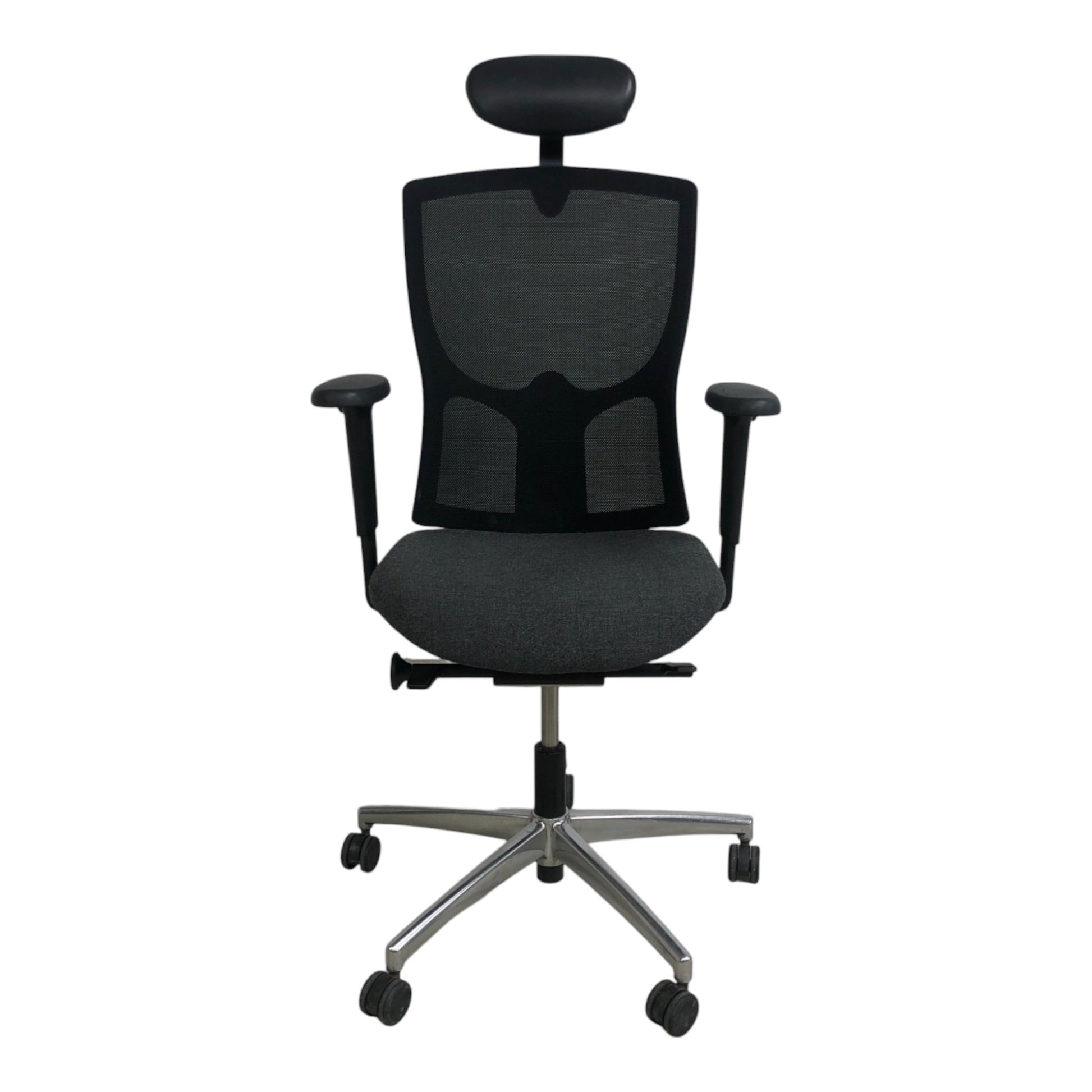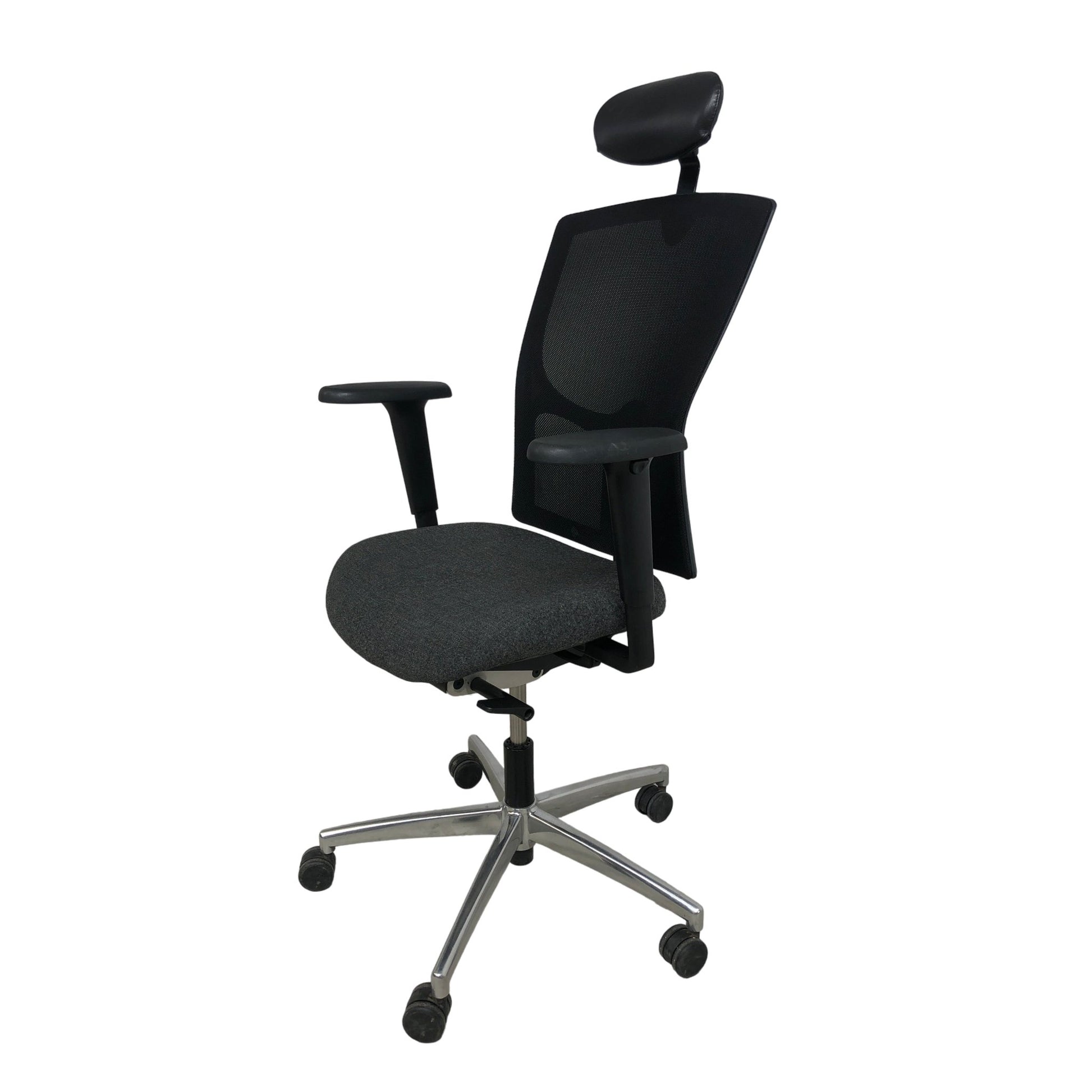 Ergonomisk kontorstol fra Drabert med pustende mesh-rygg og komfortabelt mørk grå sete. Stolen har justerbar nakkestøtte og armlener for individuell tilpasning, og gir god støtte gjennom hele arbeidsdagen.