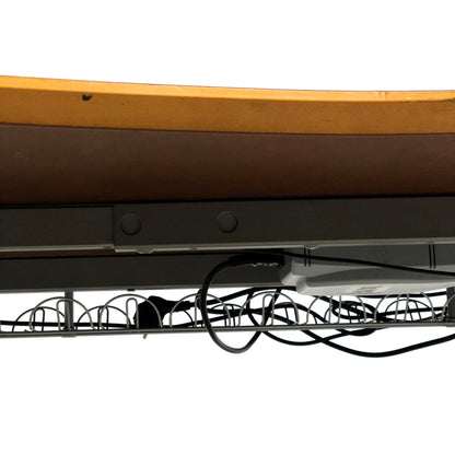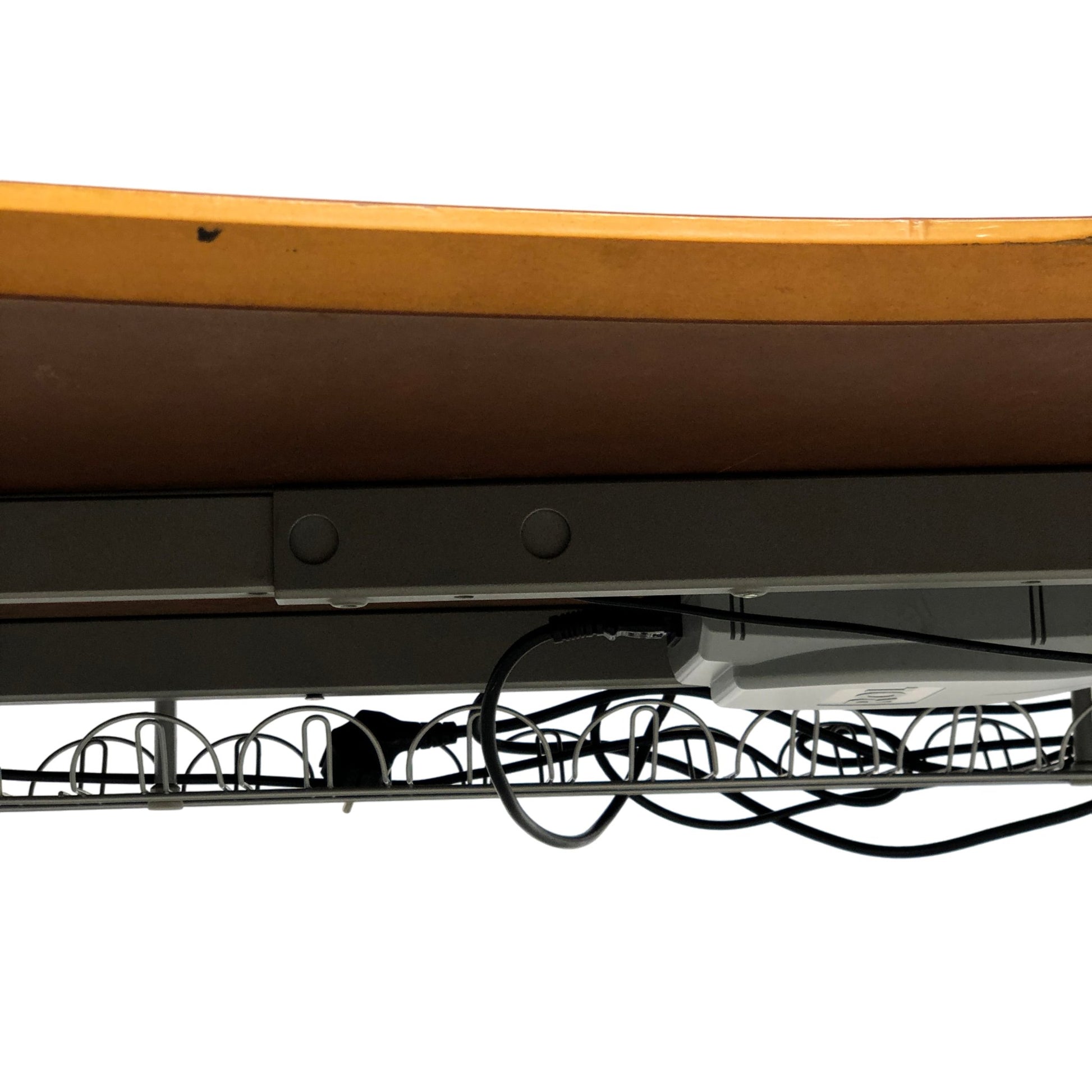 Skrivebordet har bruksmerker langs kantene, men dette påvirker ikke den funksjonelle og mekaniske kvaliteten. Det er fortsatt et flott tillegg til hjemmekontoret.