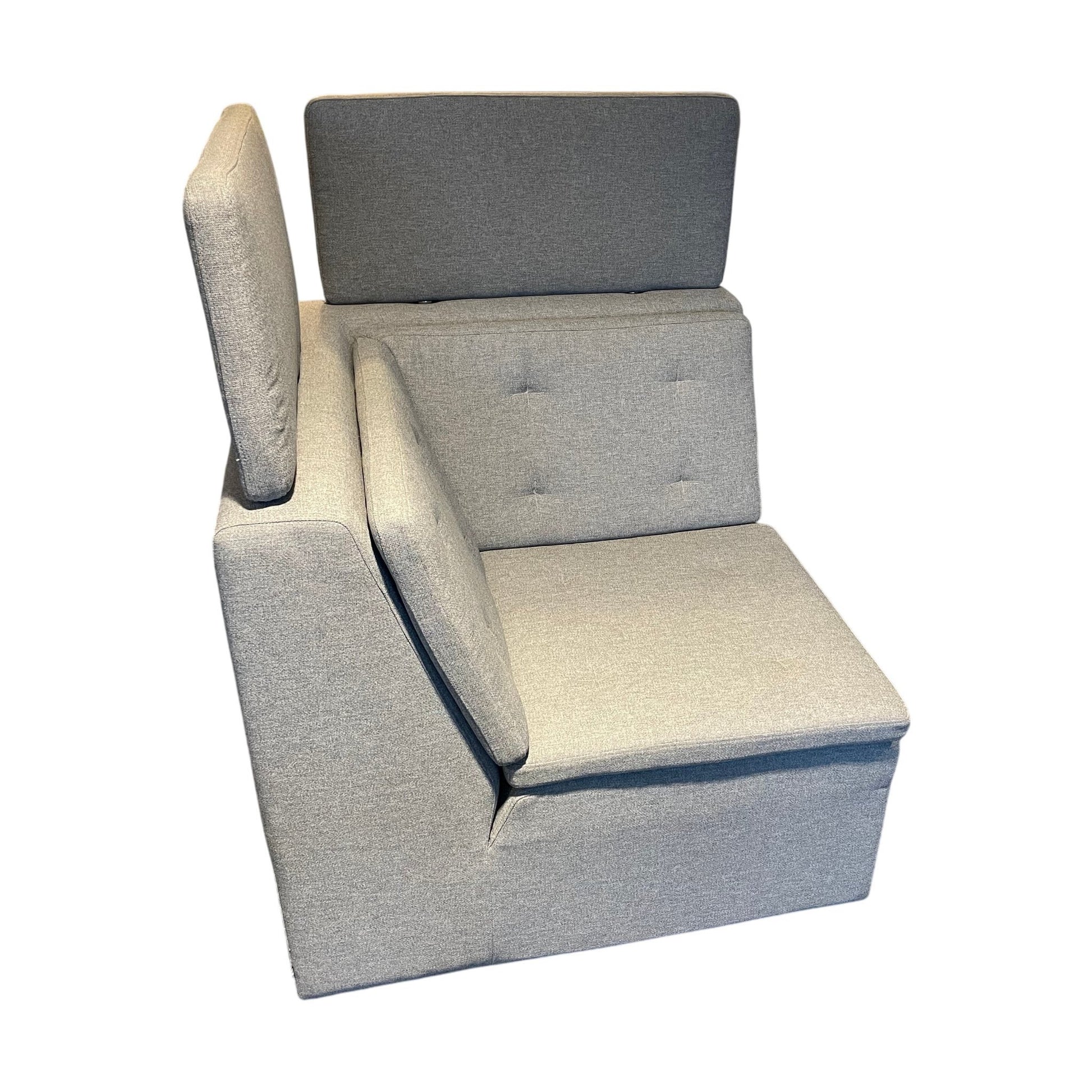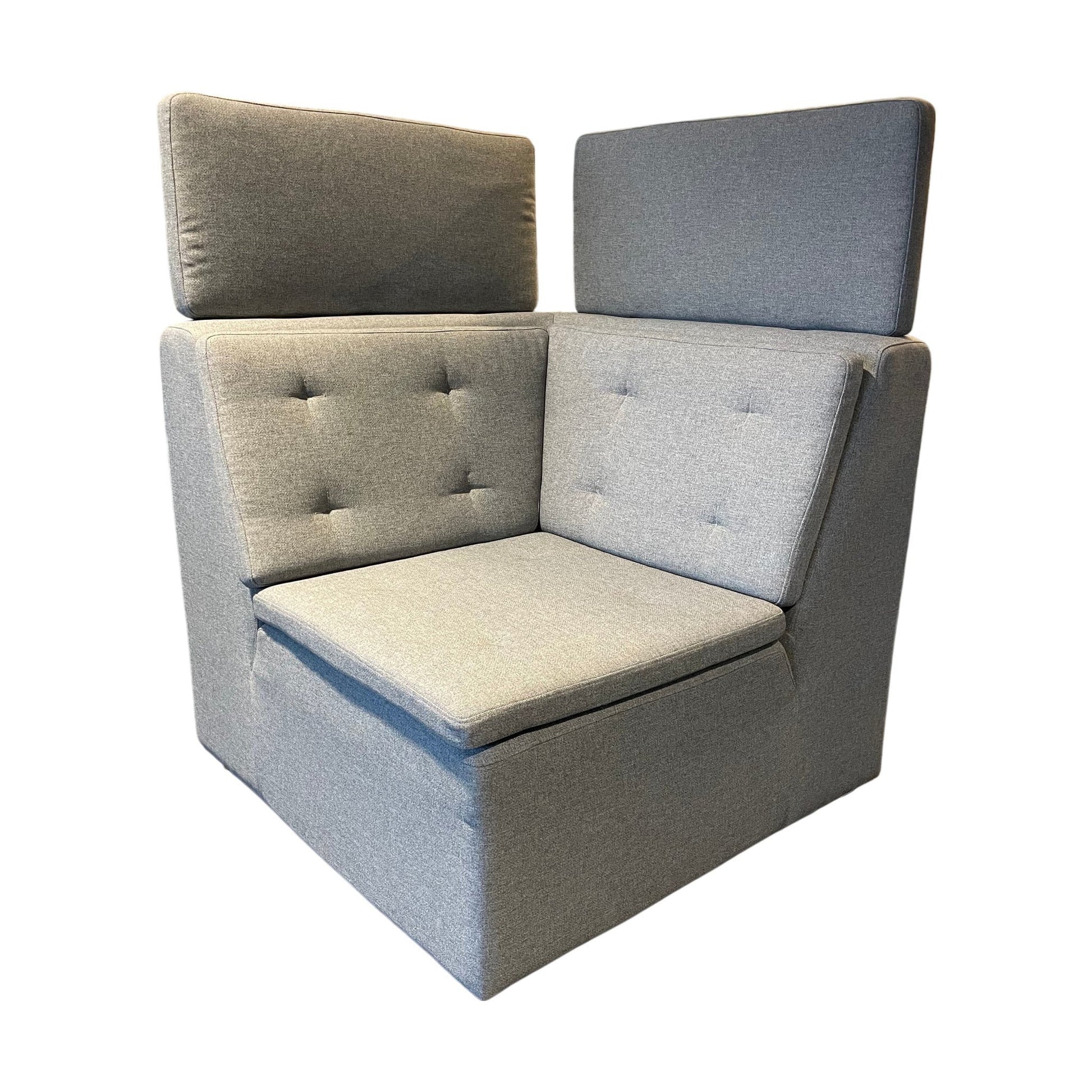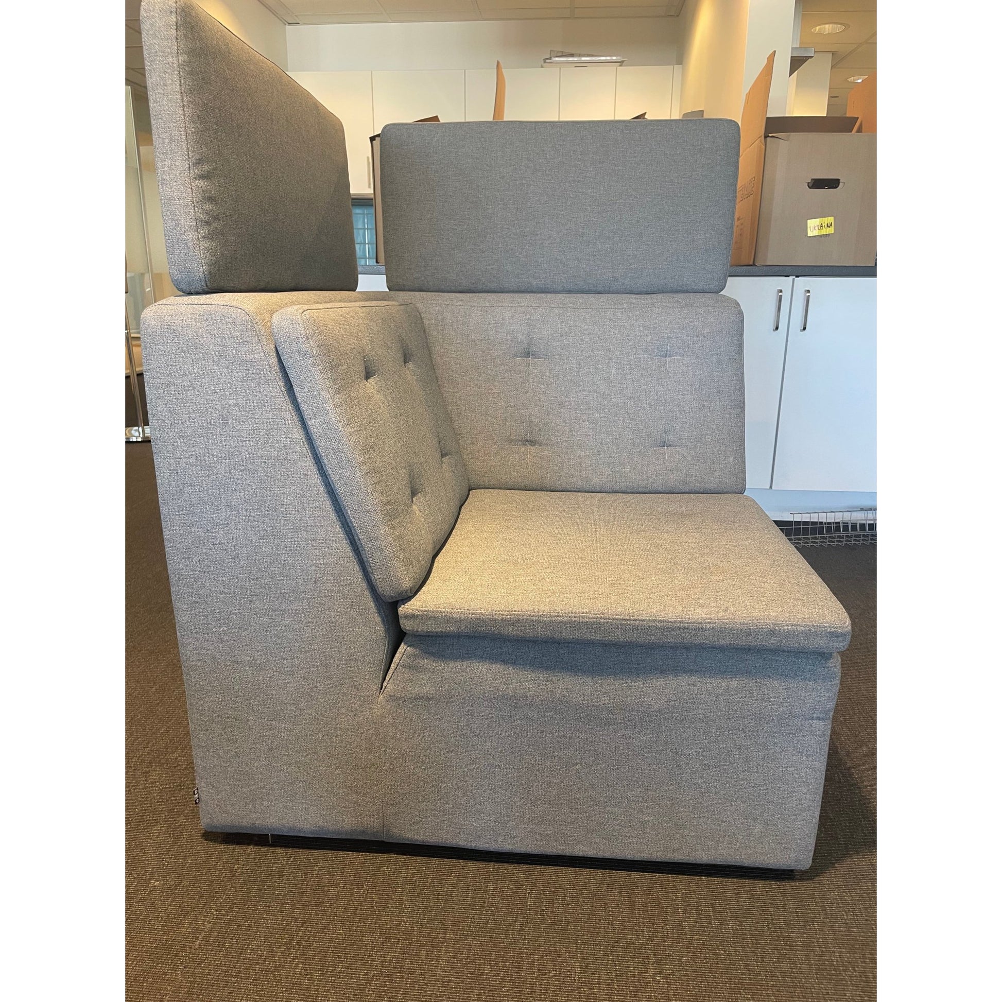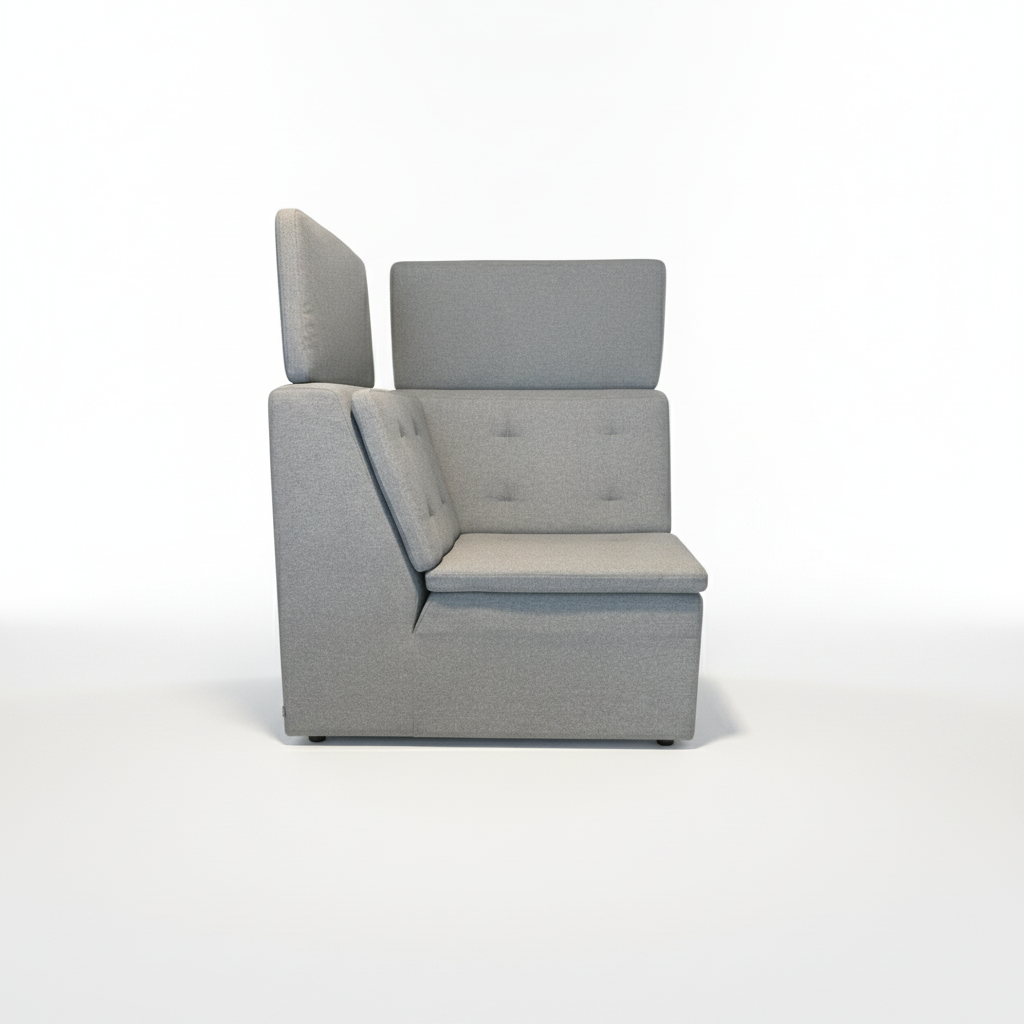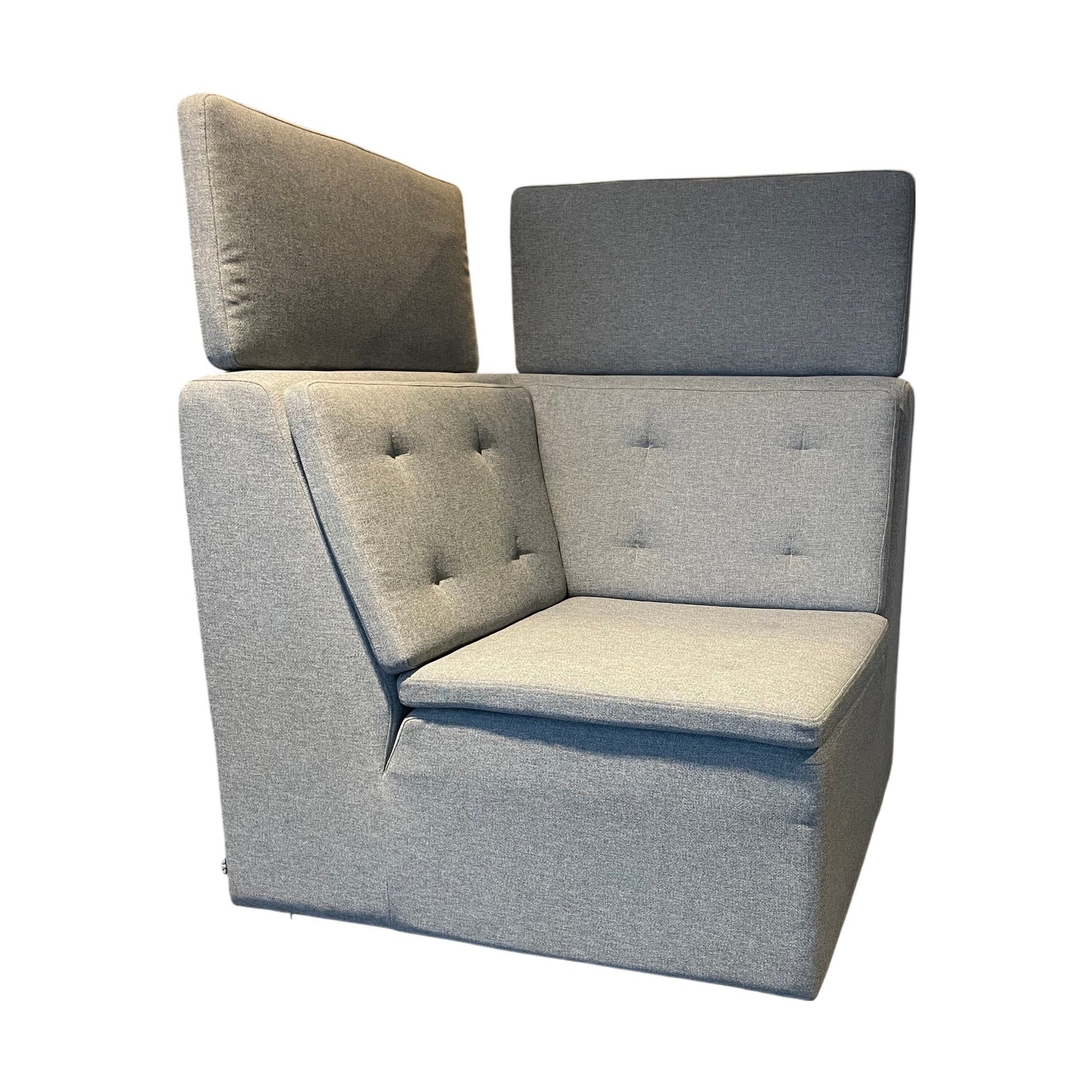 Moderne EFG Hippione Modulsofa hjørne løsning med nakkestøtte, perfekt for kontorlandskapet eller loungeområder. Designet er stilrent med en grå farge som gir et tidløst preg. Sofaen har en solid konstruksjon med rene linjer og en funksjonell utforming som skaper et komfortabelt og innbydende miljø.
