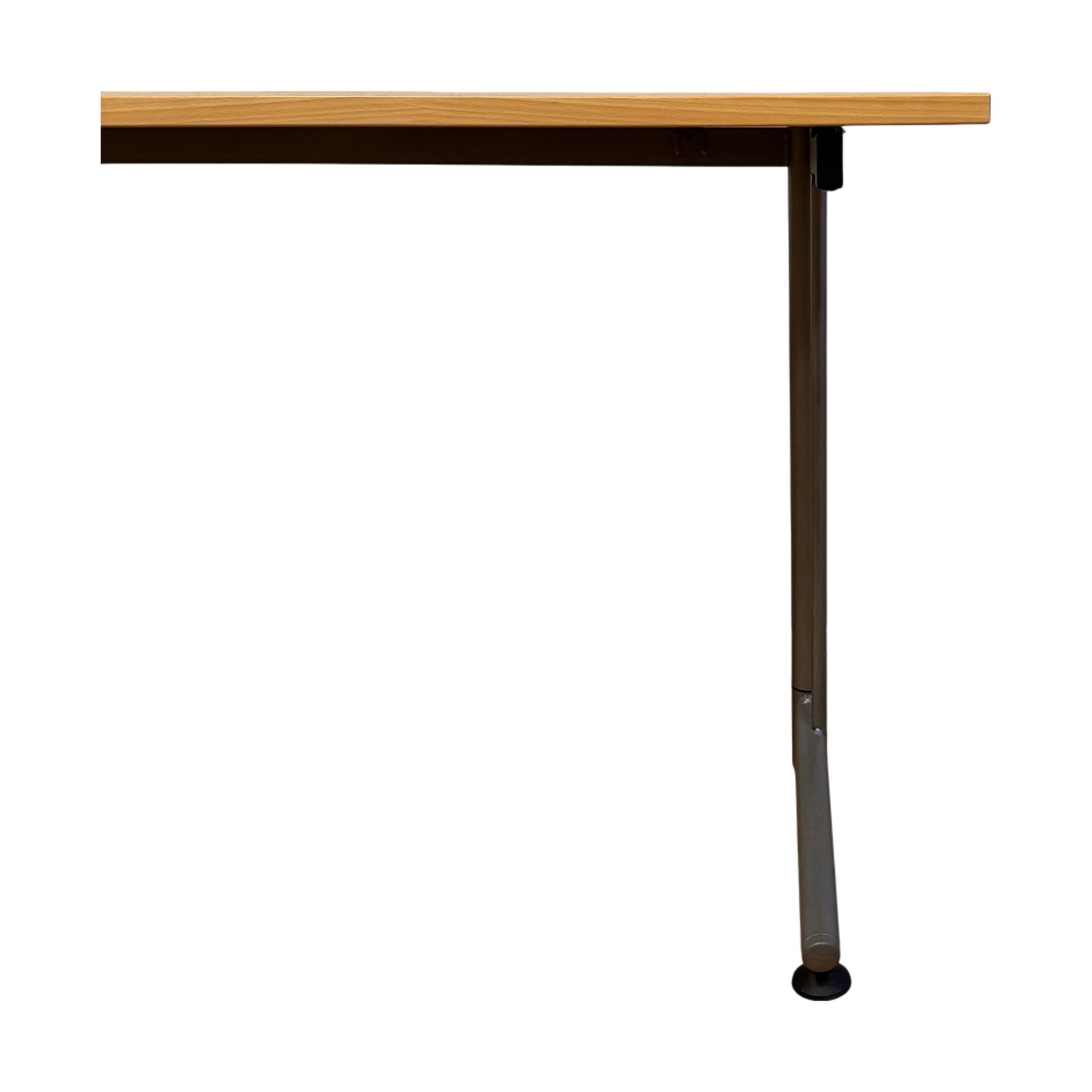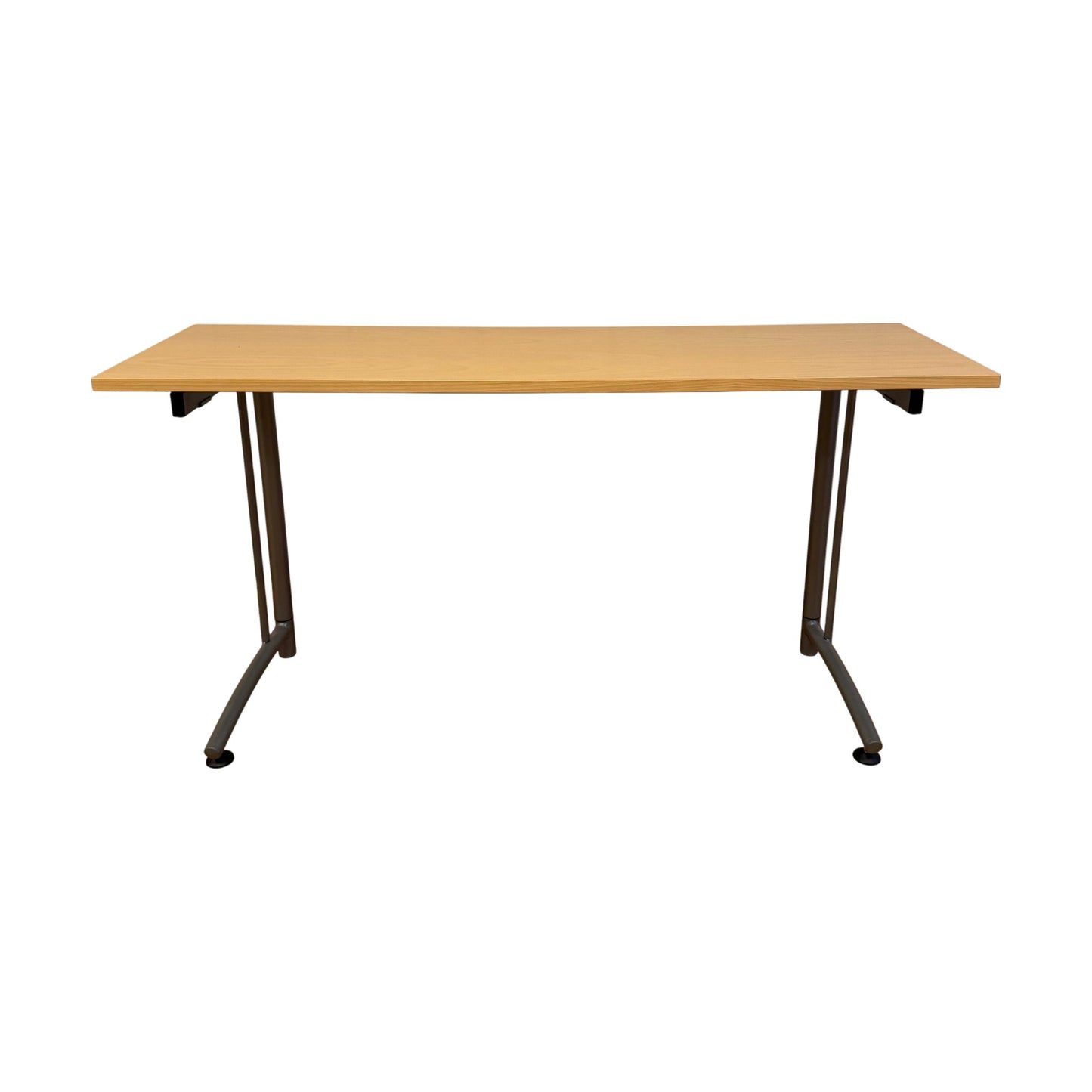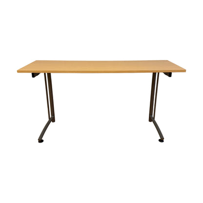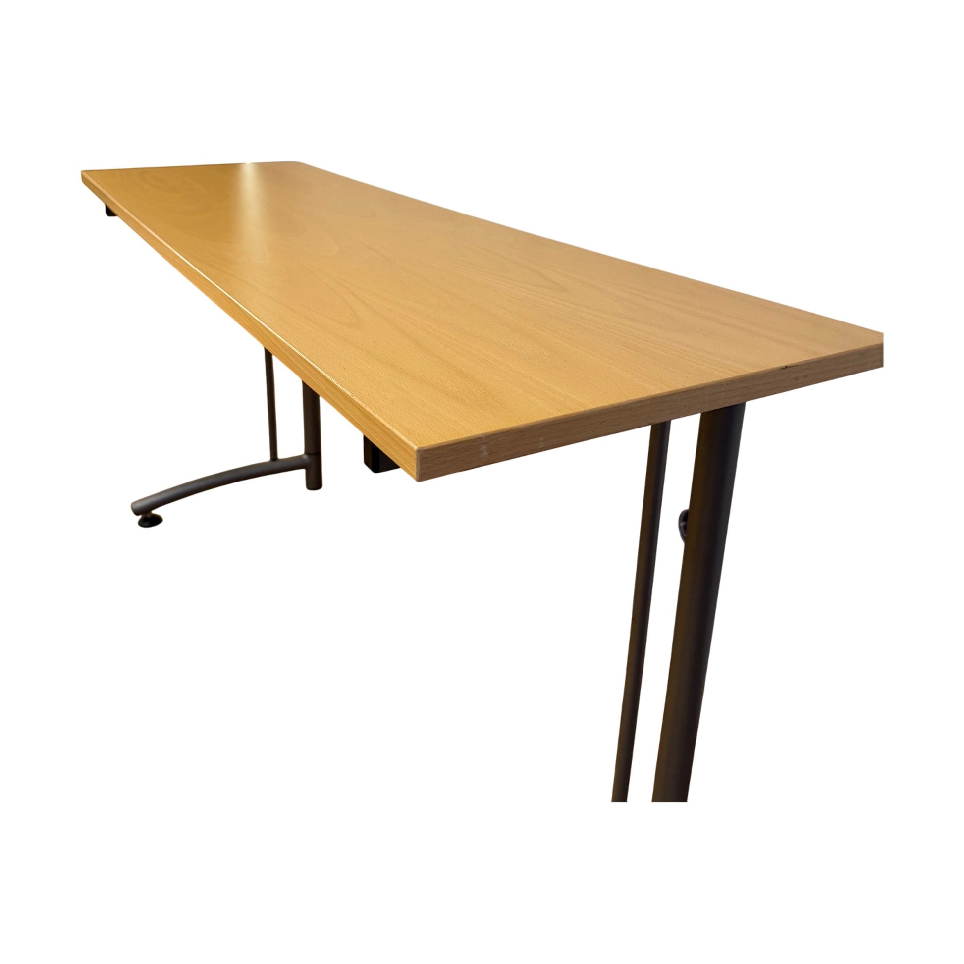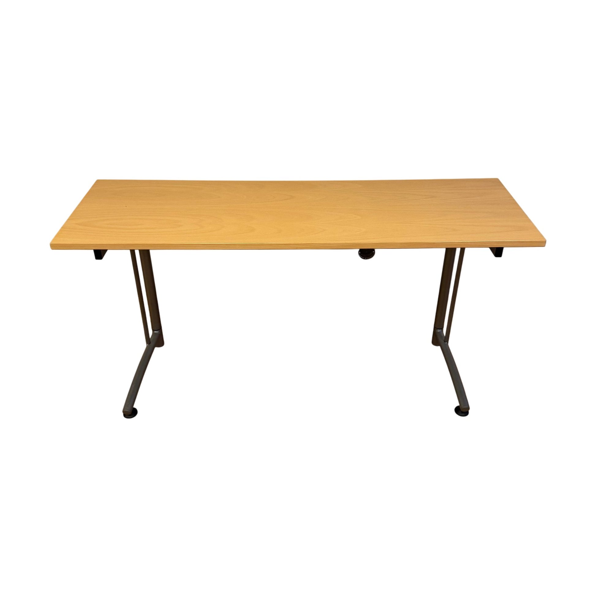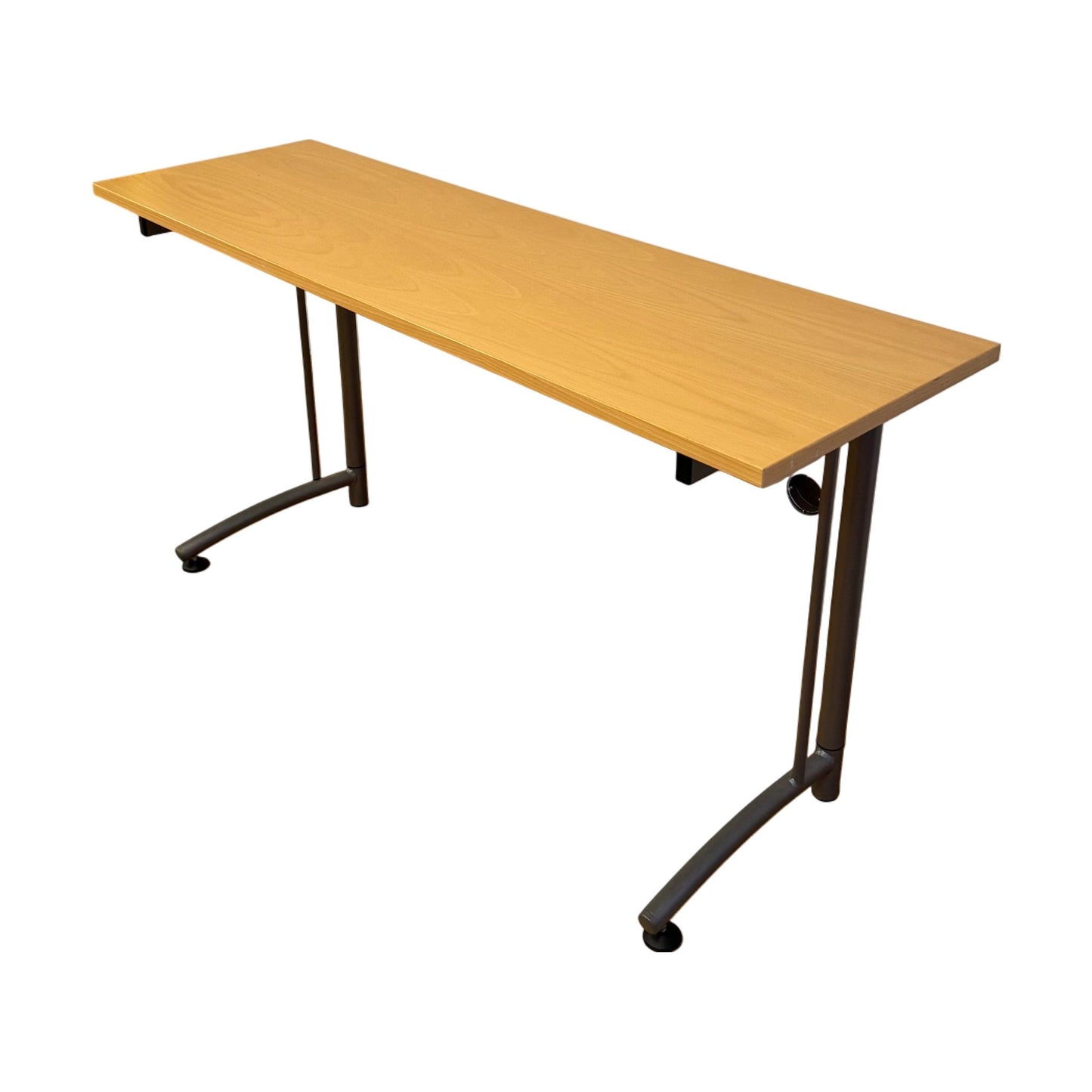 Bordplaten har noen riper og hakk, men dette påvirker ikke bruken. Generelt er bordet i god stand og klar for ny arbeidsplass.
