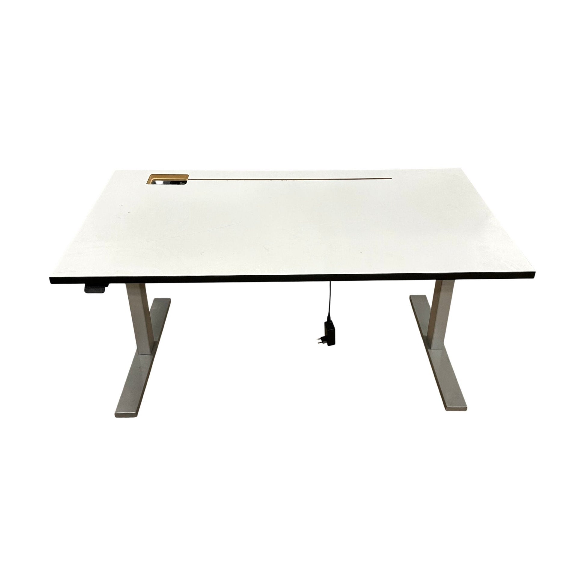 Elektrisk hev/senk skrivebord i hvit laminat, designet for maksimal funksjonalitet. Bordet har en slitesterk overflate og en stabil stålramme, som gjør det enkelt å justere høyden etter behov, noe som bidrar til bedre ergonomi. Det passer perfekt i ethvert kontormiljø.