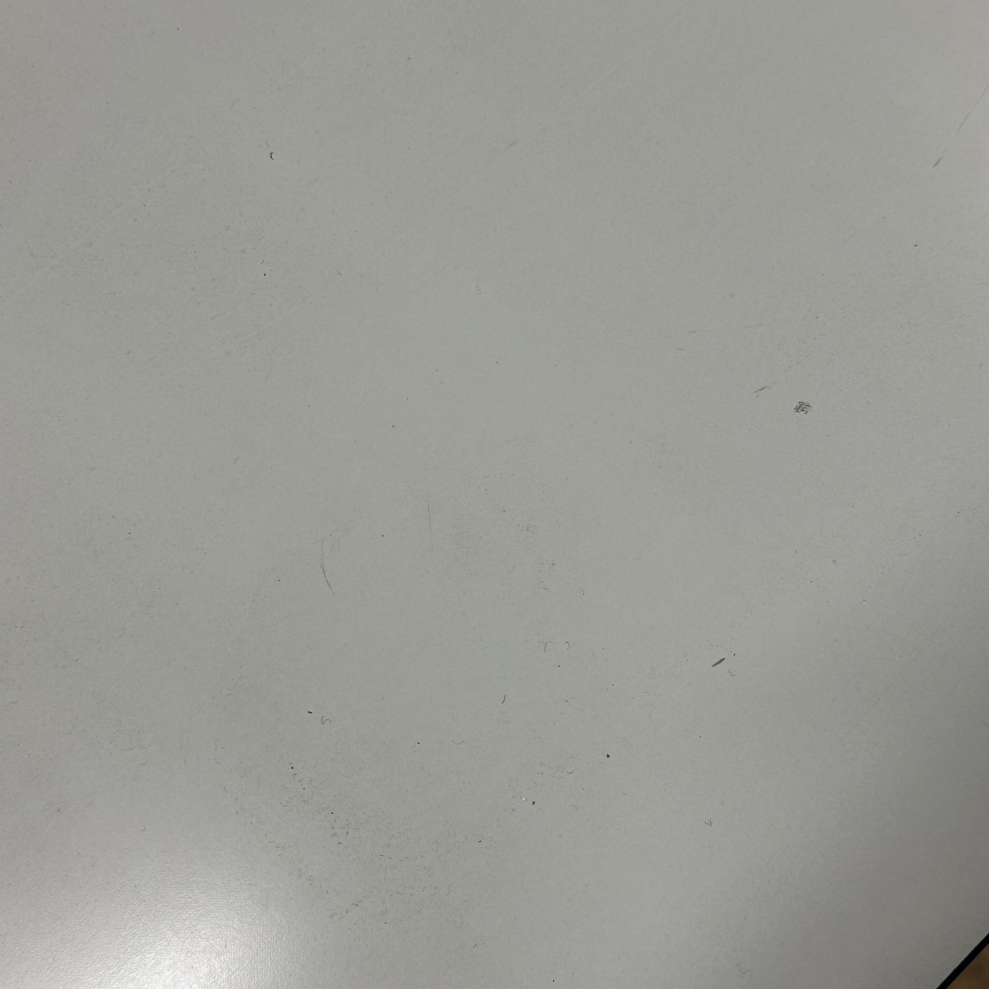 Bordet er i godt brukt stand med markante merker i platen. Listen langs kanten er noe løs på endene, men helhetsinntrykket er fortsatt bra. Det gir en solid og funksjonell arbeidsplass til enhver, med mulighet for justering av høyde.
