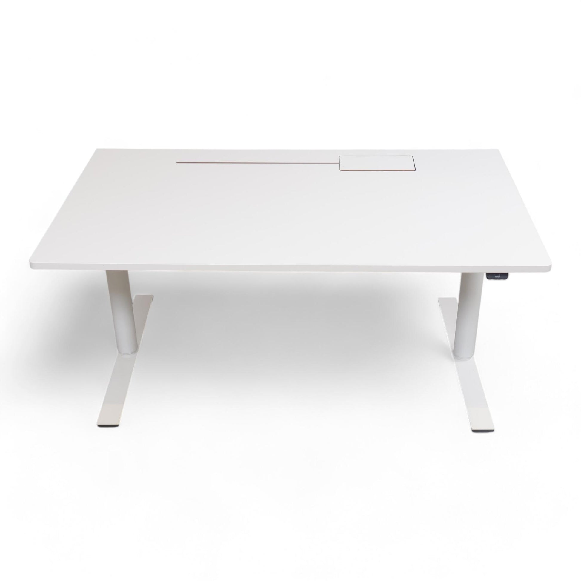 Dette elektriske hev/senk skrivebordet fra Dencon, modell Delta, kombinerer funksjonalitet med stil. Den rene, hvite bordplaten gir et moderne uttrykk, mens den justerbare høyden fra 65 cm til 120 cm gjør det enkelt å tilpasse arbeidsstillingen for både sittende og stående arbeid, noe som fremmer ergonomi gjennom hele dagen.