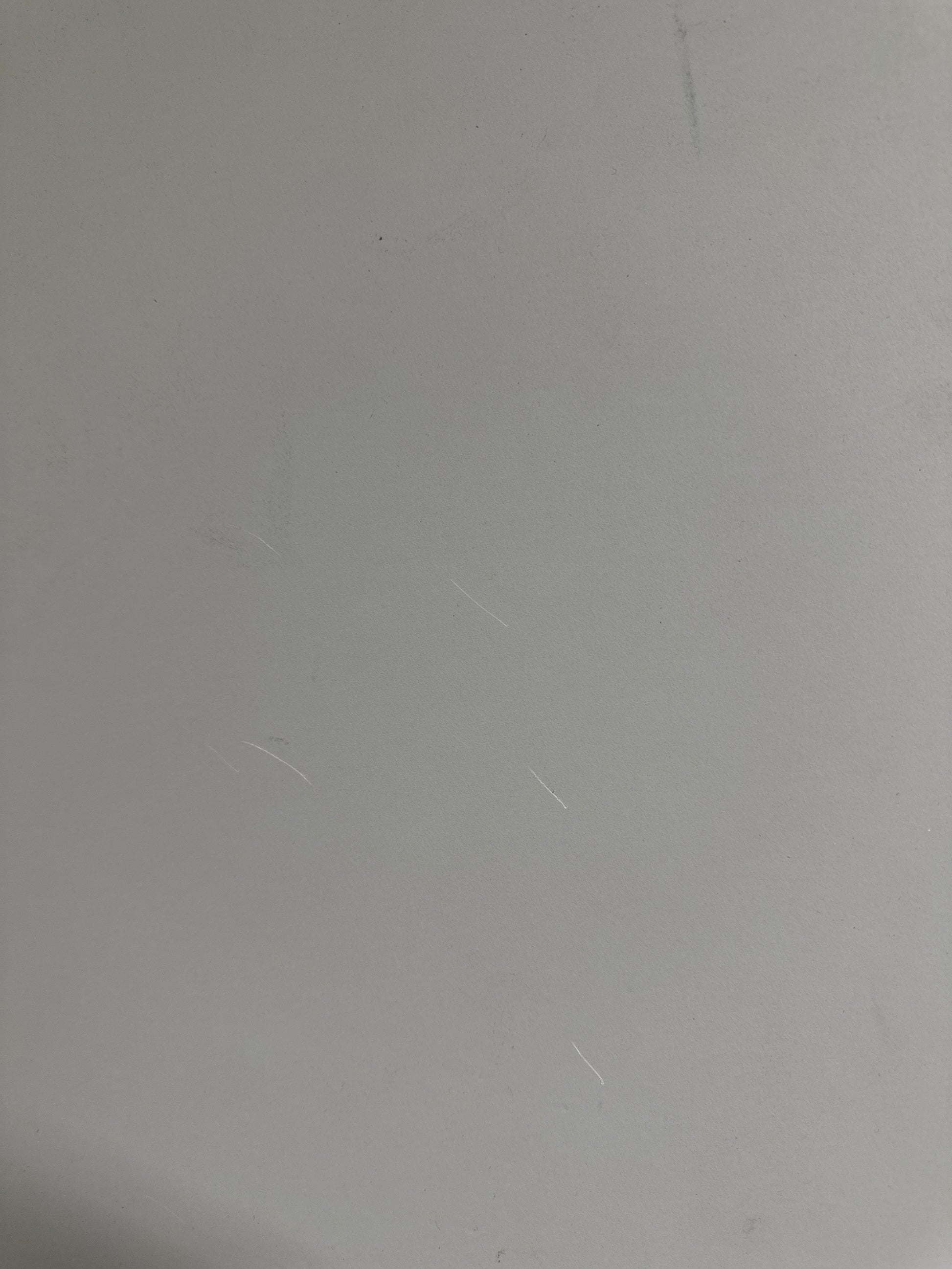 Skrivebordet er i god tilstand med noen merker på platen, men disse er lite synlige. Den stabile konstruksjonen og funksjonaliteten er bevart, noe som gjør det til et flott valg for hjemmekontoret eller arbeidsplassen.