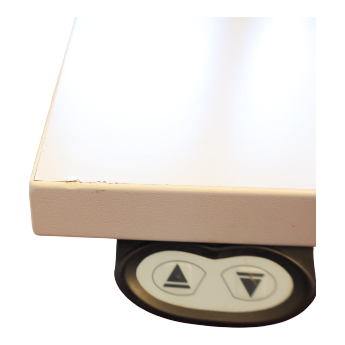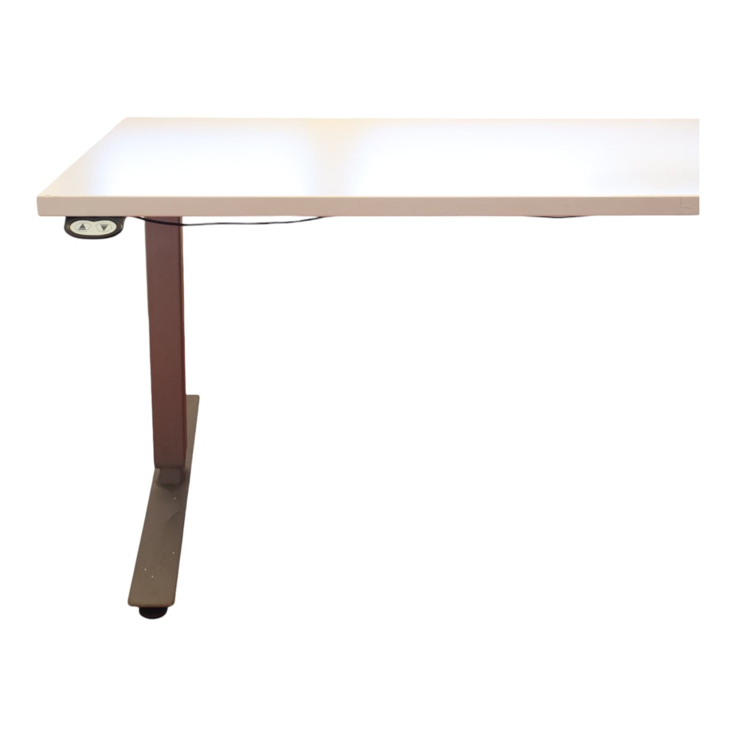 Bordplaten har noen merker, men påvirker ikke funksjonaliteten. Den lengste delen er på høyre side av bilde. Ideelt for deg som ønsker et allsidig skrivebord med rask levering tilgjengelig.