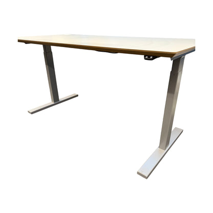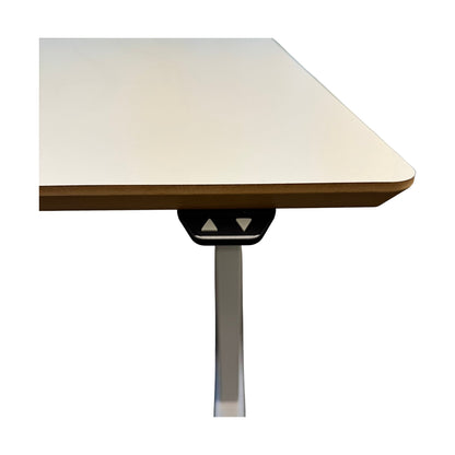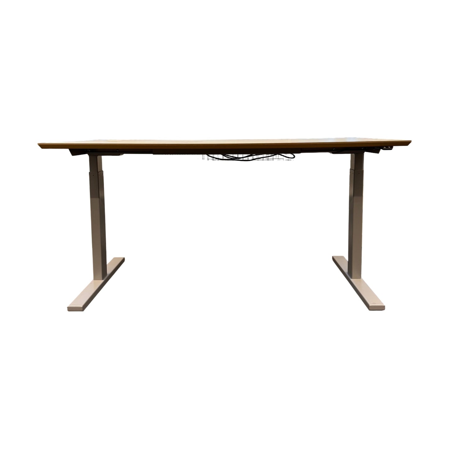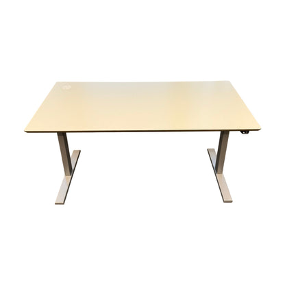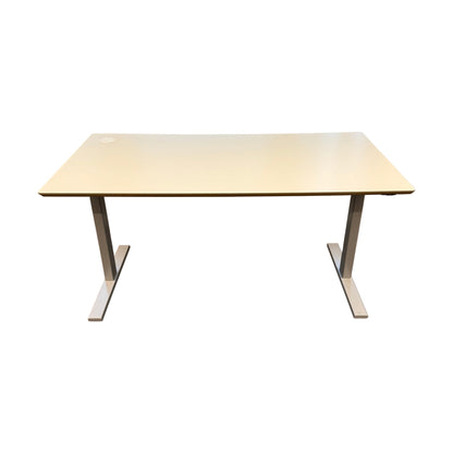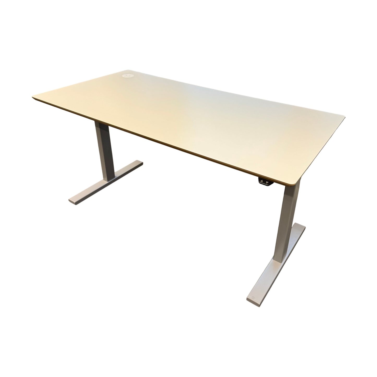 El hev/senk skrivebord med dimensjoner på 160x80 cm. Dette funksjonelle skrivebordet har et stilrent design med hvit laminert bordplate og inkluderer praktiske kabelhull og en kurv under bordplaten for optimal organisering av kabler og tilbehør. Det er ideelt for kontoret og gir muligheten til å variere arbeidshøyden for bedre ergonomi.