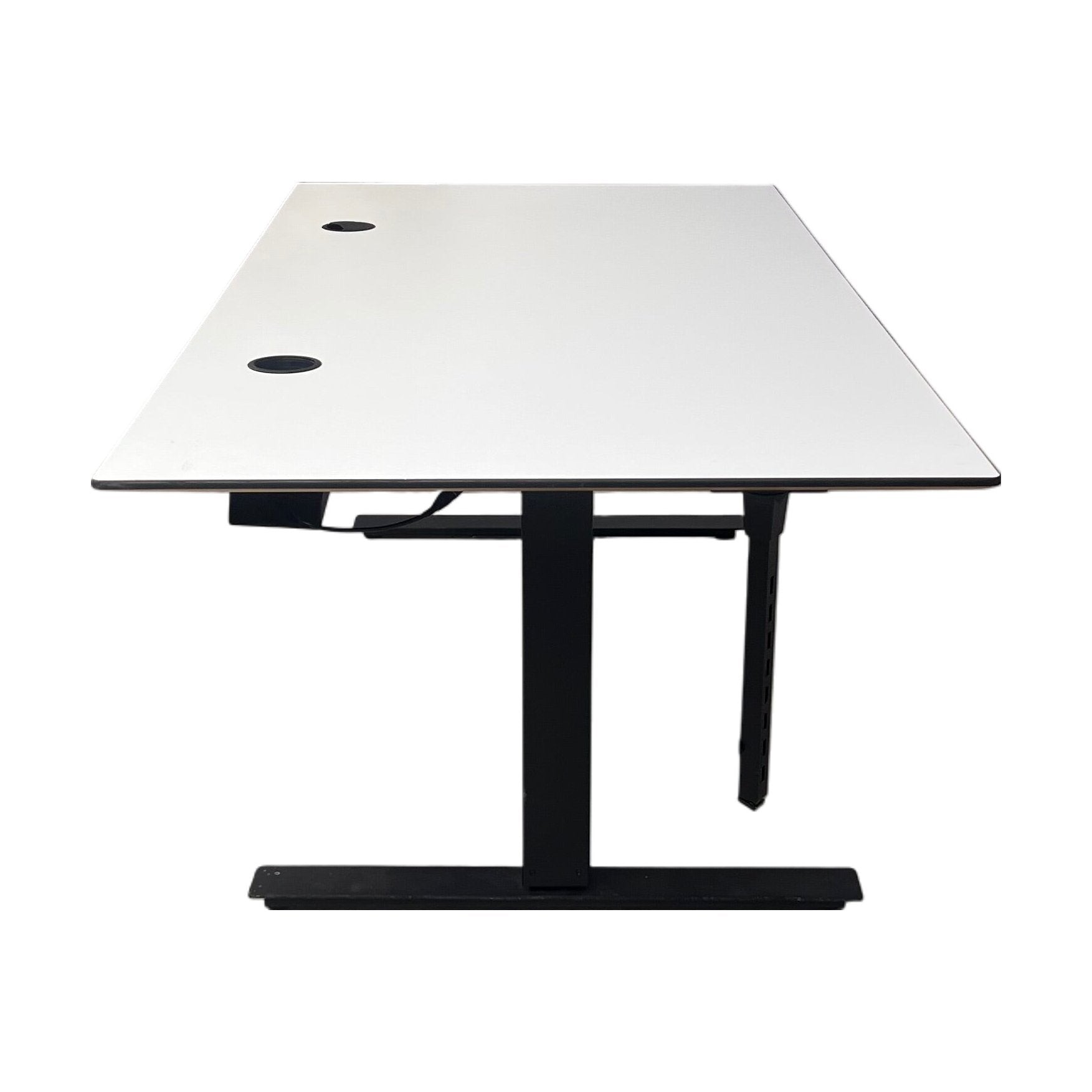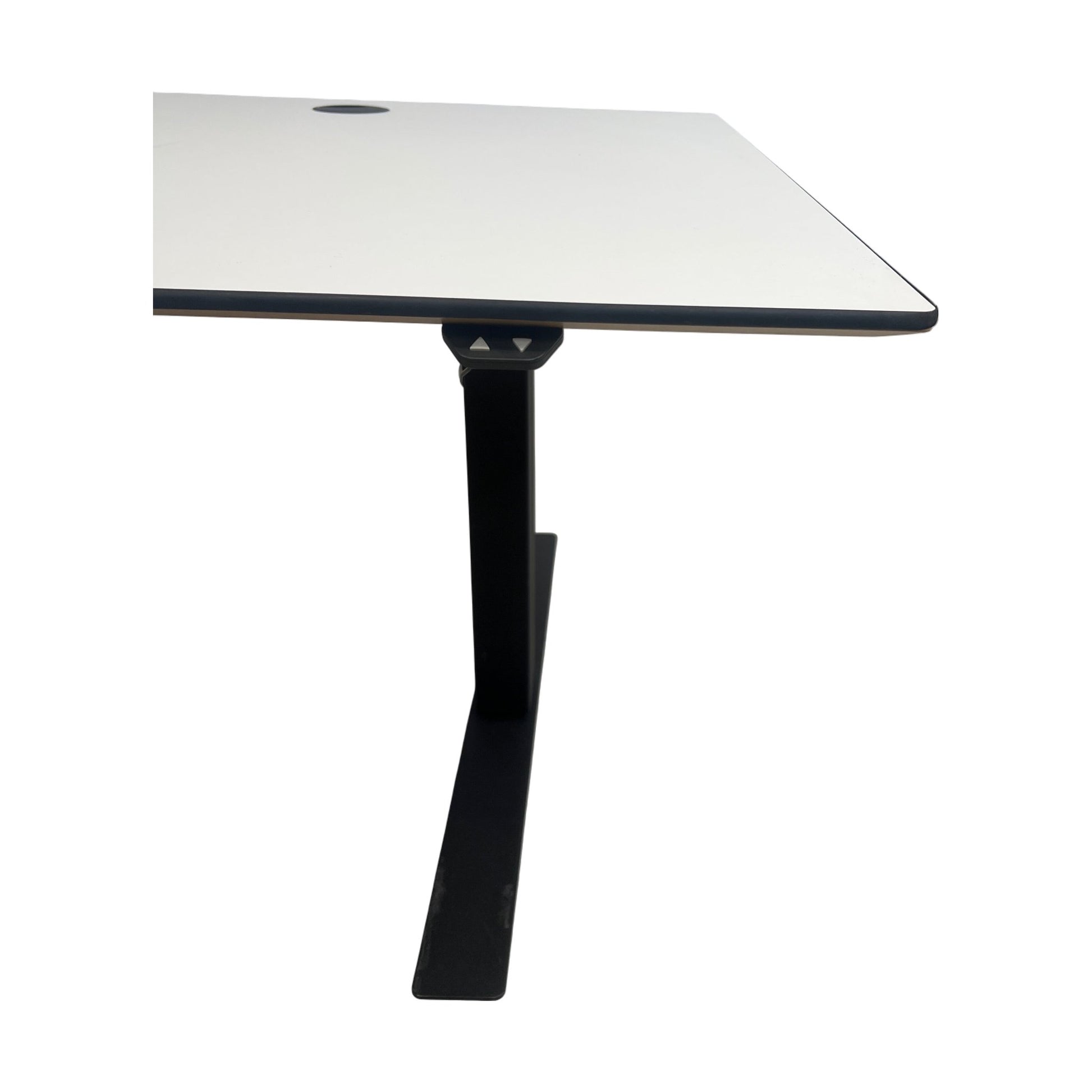 Skrivebordet er i god stand med minimale bruksmerker. Det er en del av et stilrent og moderne uttrykk, og passer perfekt inn i alle typer kontormiljøer. Rammen er solid, og funksjonen for høydejustering virker feilfritt.