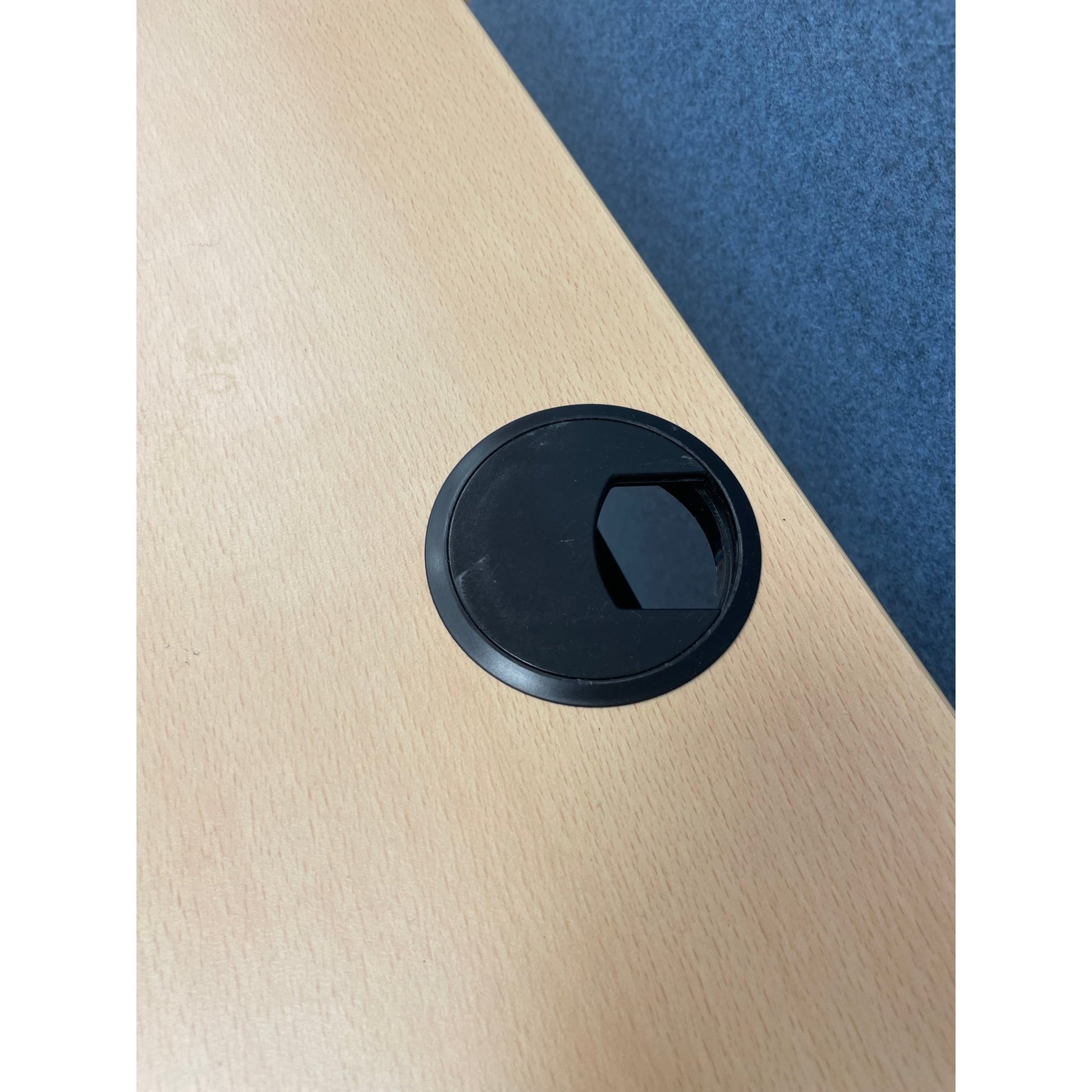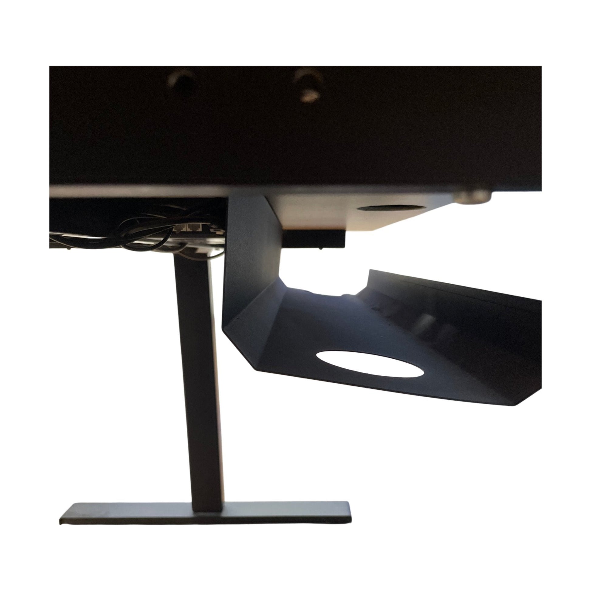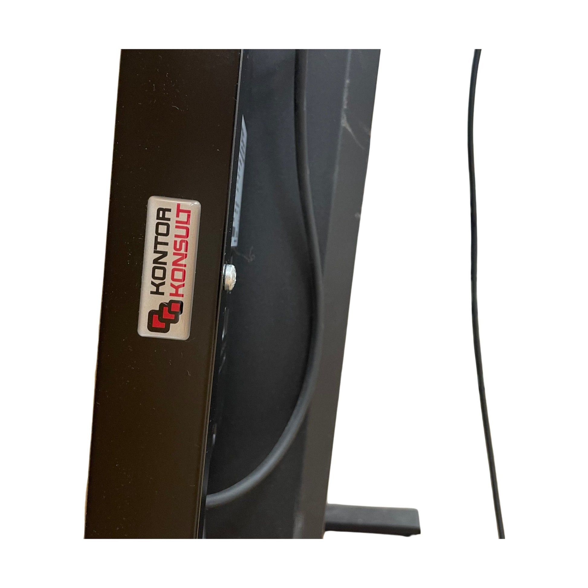 Elektrisk hev/senk skrivebord med en stilren trefarget bordplate og solid svart stålramme. Bordets moderne design gir et profesjonelt uttrykk, og de elektriske motorene fra Linak sikrer jevn og stille høydejustering, noe som bidrar til en bedre arbeidsstilling gjennom dagen.
