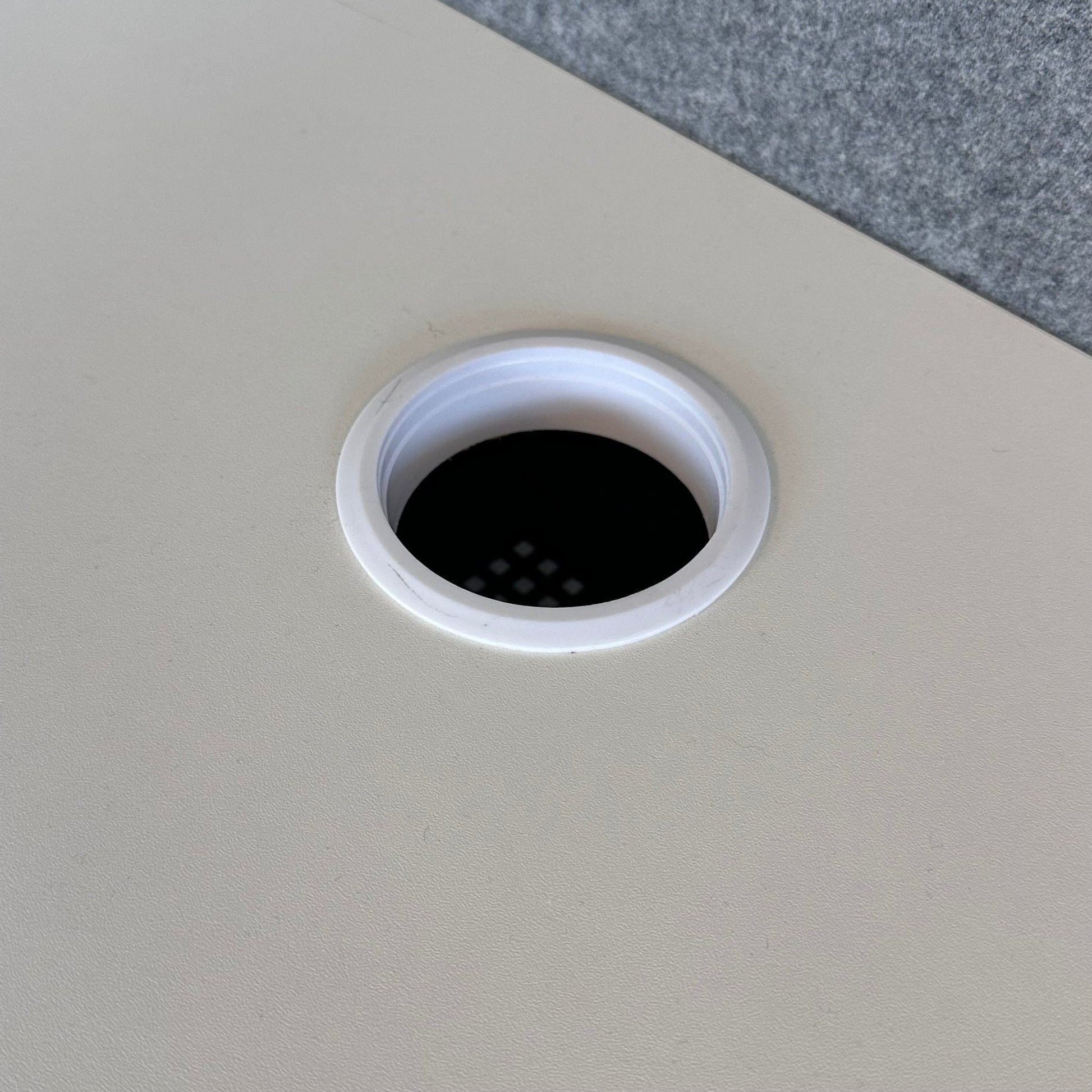 Skrivebordet er i utmerket tilstand, med minimale brukstegn. Det er ingen dype merker eller skader, og bordplaten er intakt med et fint uttrykk.