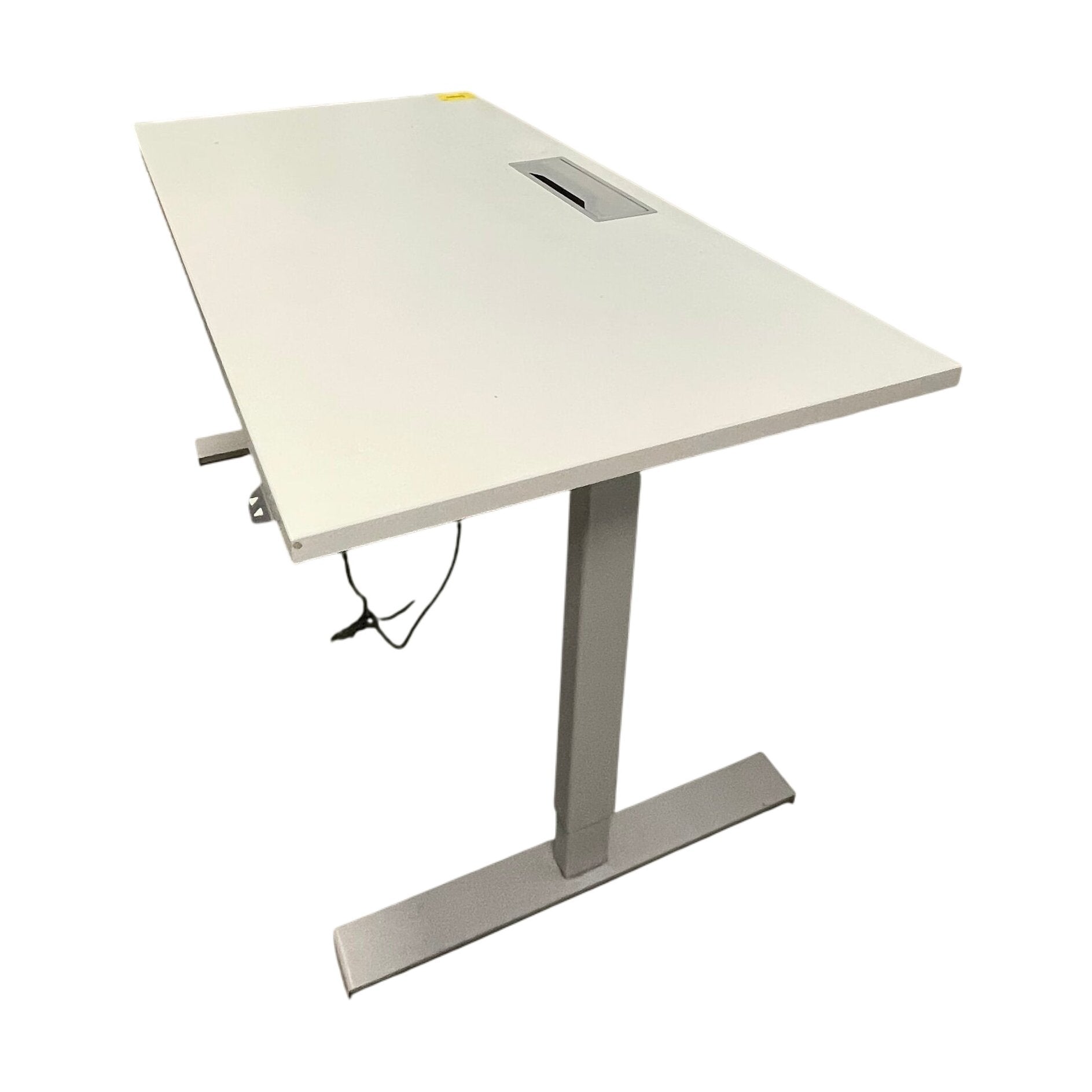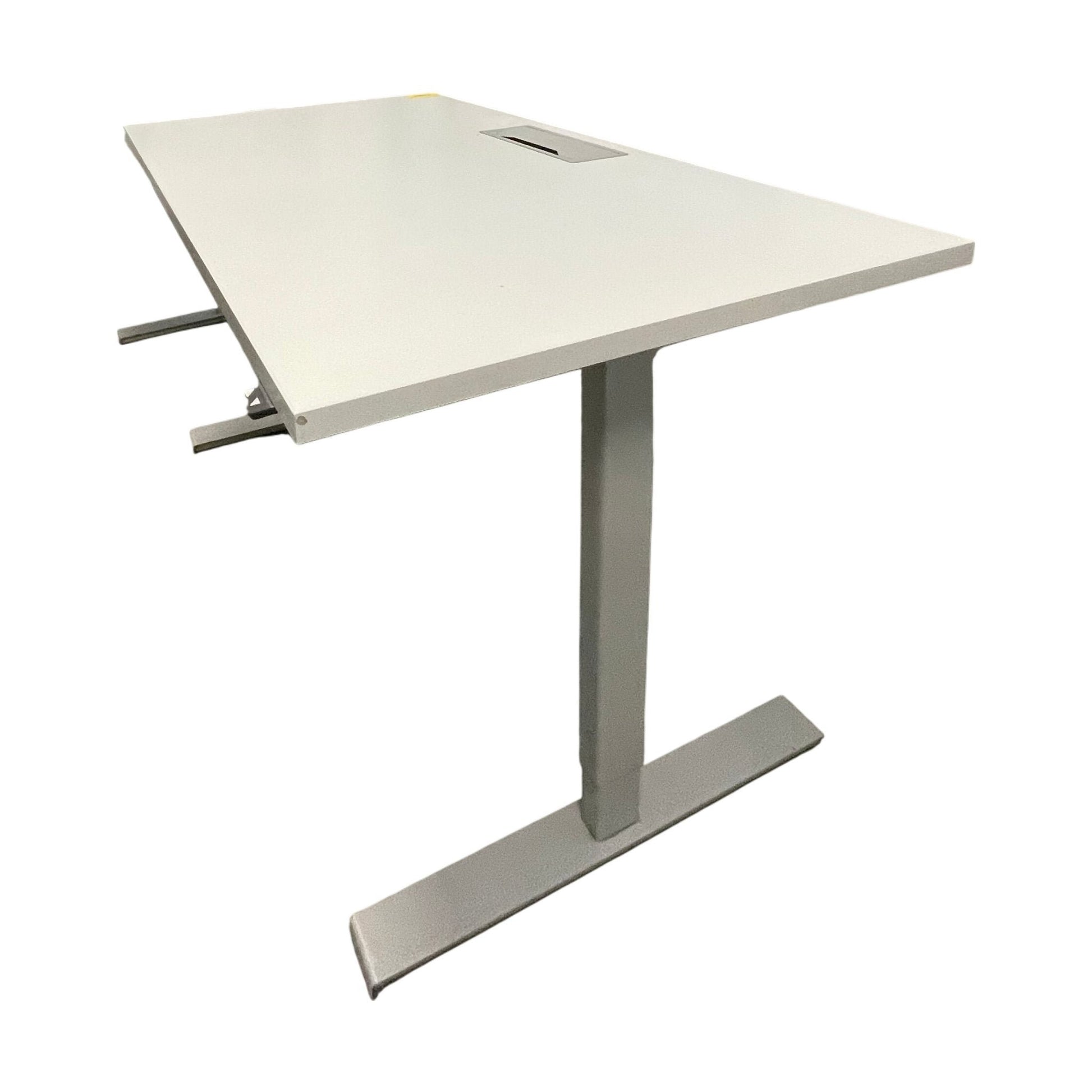 Elektrisk hev/senk skrivebord i en moderne grå finish med en stilren bordplate og solid metallramme. Dette skrivebordet er designet for å gi deg fleksibiliteten til å arbeide både sittende og stående, noe som bidrar til bedre ergonomi på arbeidsplassen.