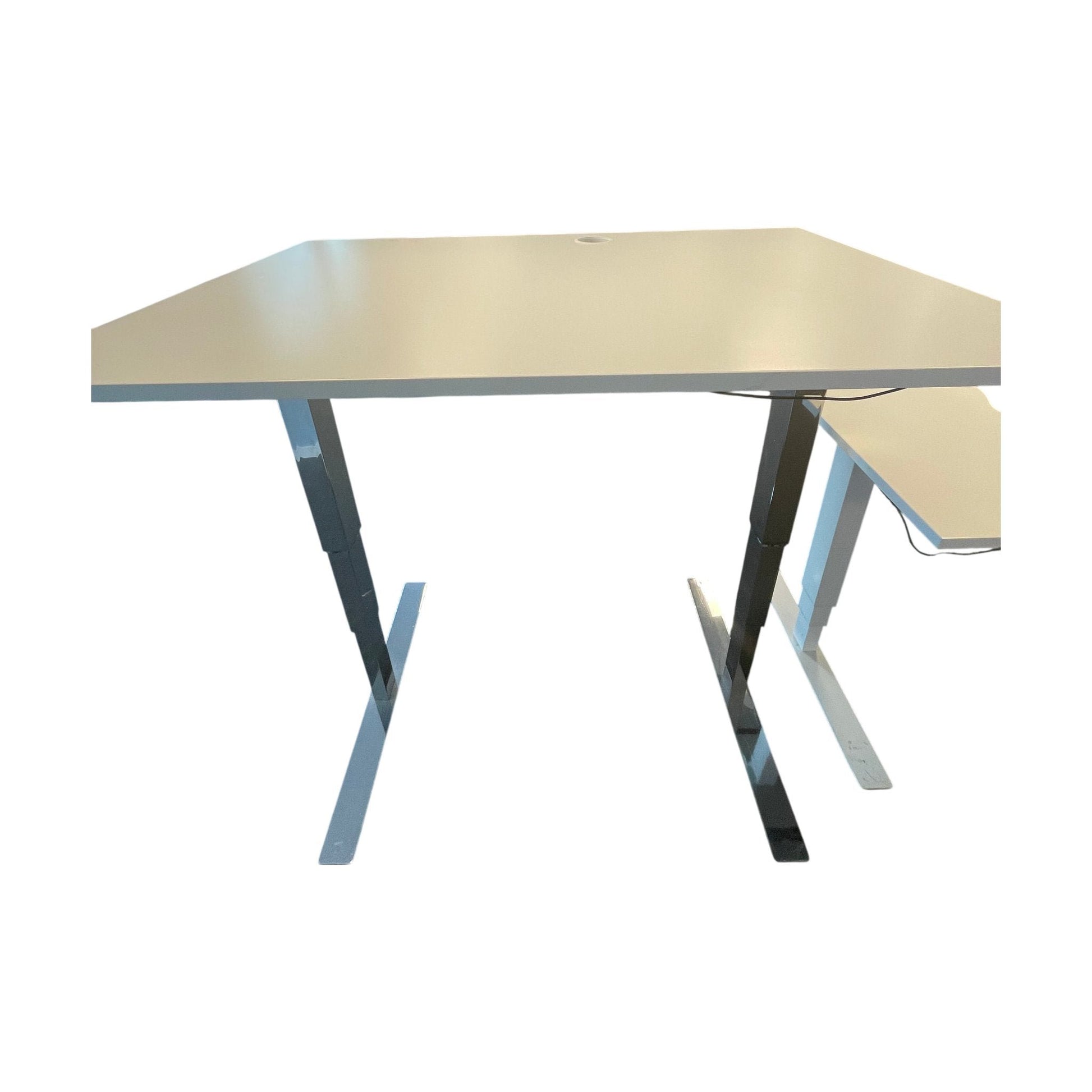 Dette elektriske hev/senk skrivebordet er designet for moderne kontormiljøer, med en stilren hvit laminatbordplate og et solid kromfarget understell. Den justerbare høyden gir fleksibilitet for både sittende og stående arbeid, og sikrer en ergonomisk arbeidsstilling gjennom hele dagen.