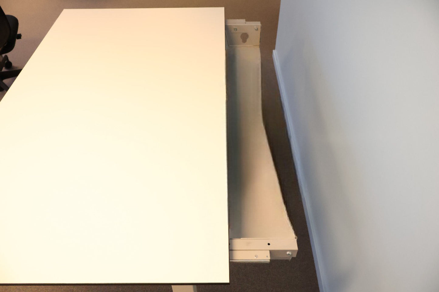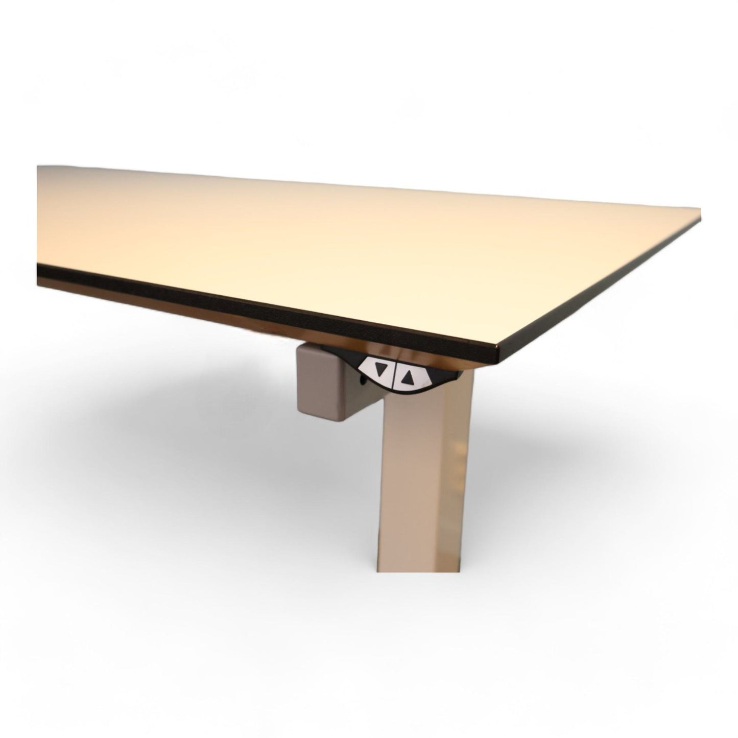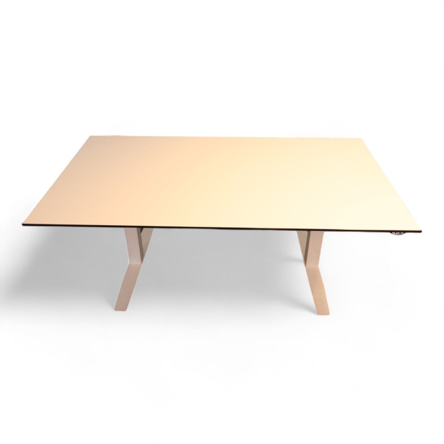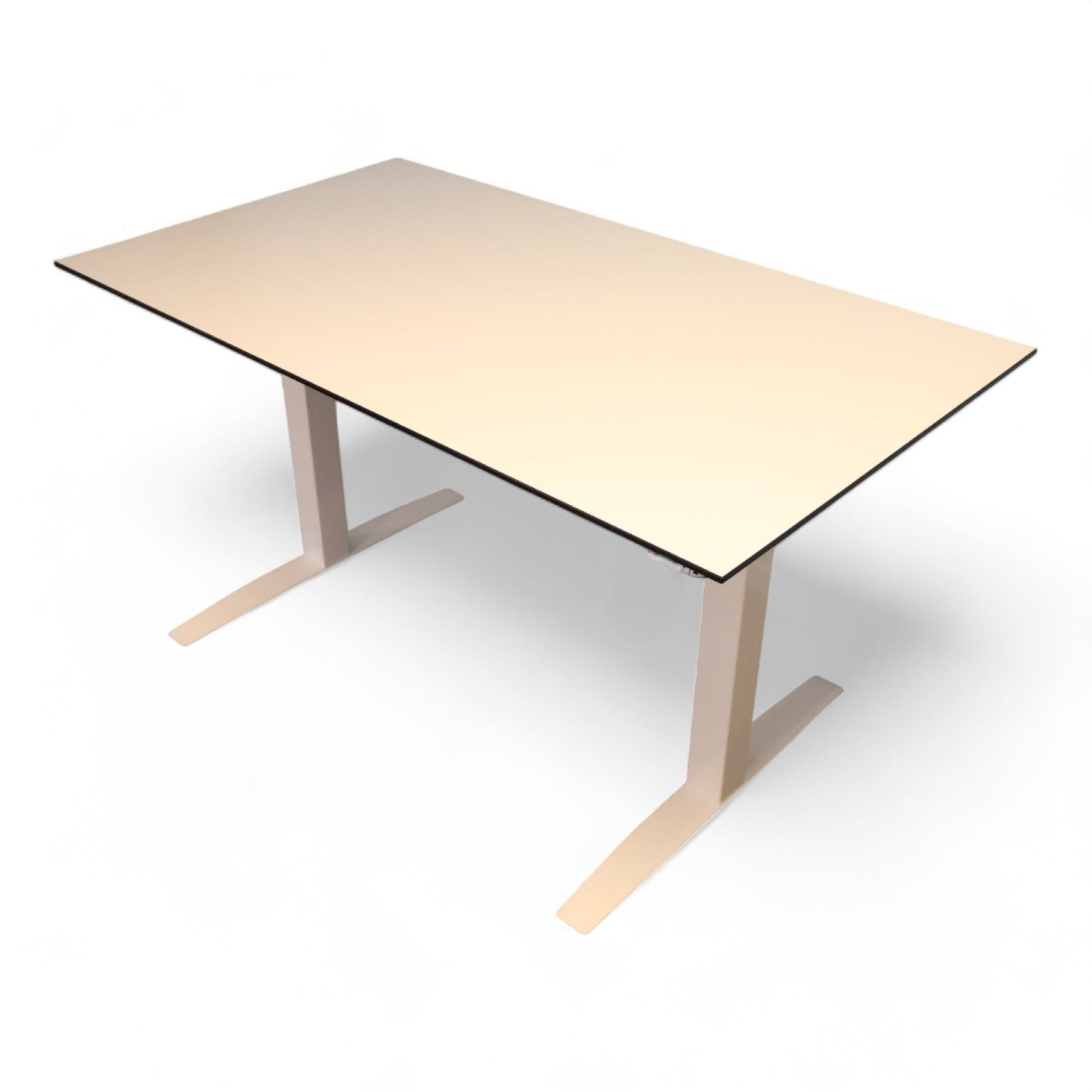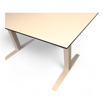 Bordet viser tegn på normalt bruksslitasje, men dette påvirker ikke funksjonaliteten. Det er perfekt for både kontor og hjemmearbeidsplass, og tilbyr en fleksibel og komfortabel arbeidsdag.