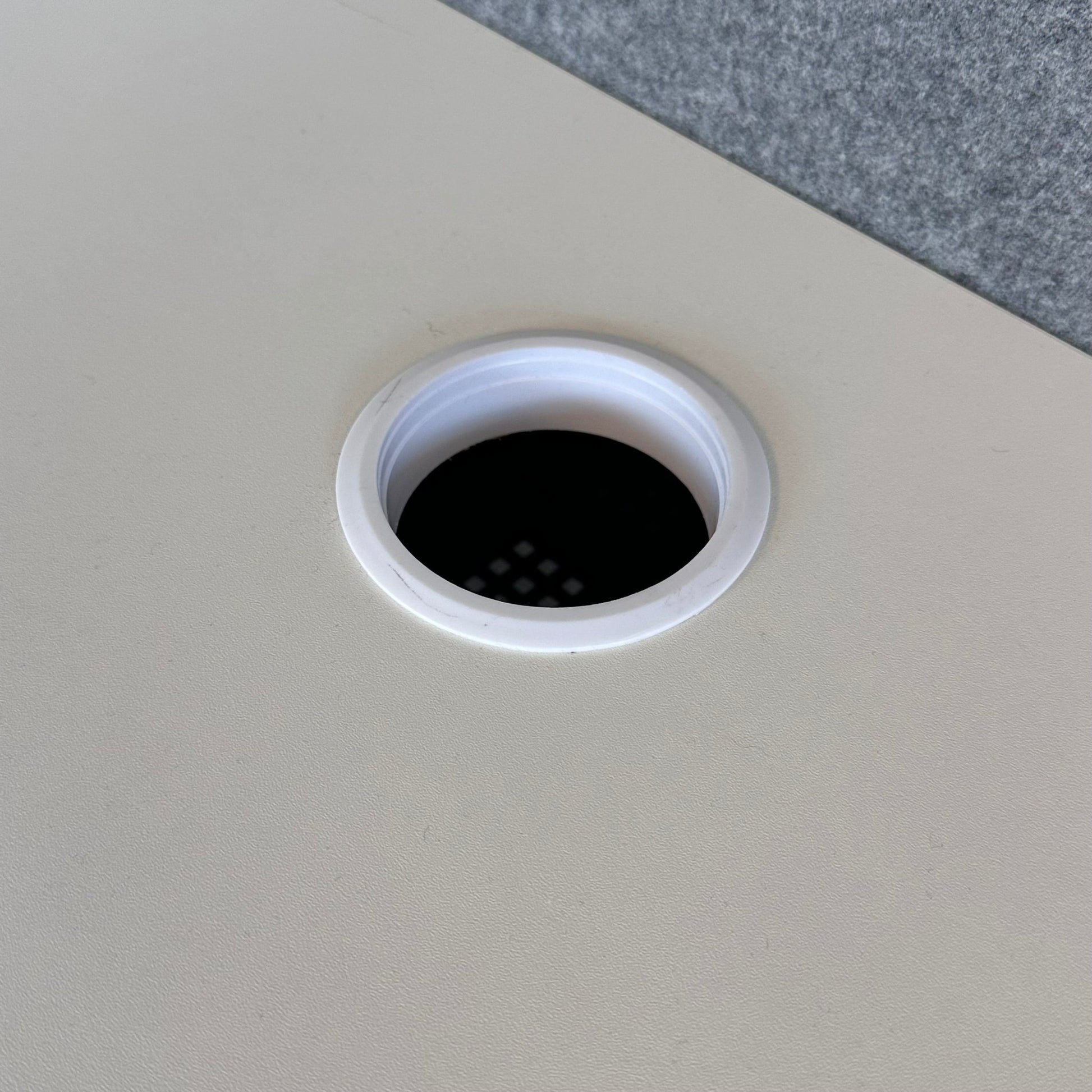 Skrivebordet er i utmerket tilstand med minimale tegn til bruk. Ingen synlige merker eller skader på bordplaten, og understellet er solid og stabilt.