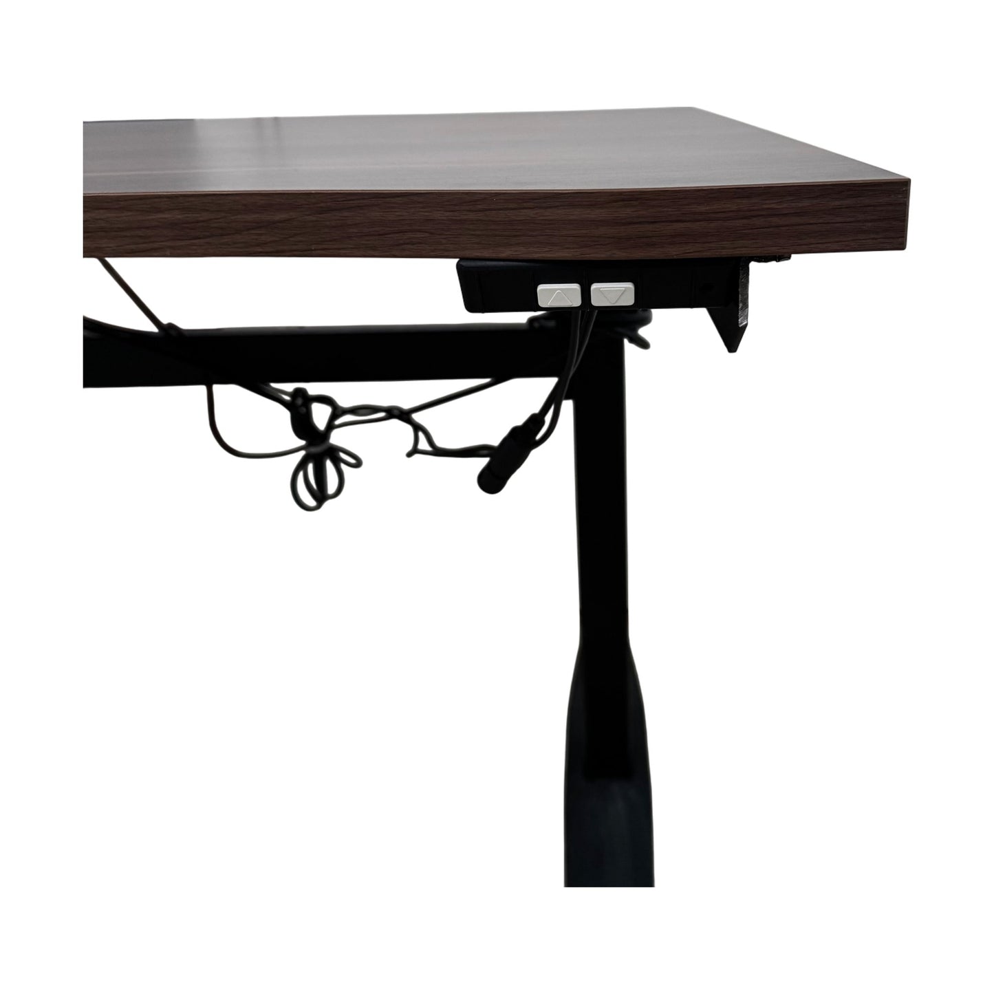 Ergonomisk elektrisk hev/senk skrivebord, designet for å gi optimal komfort. Skrivebordet lar deg enkelt tilpasse høyden, noe som forbedrer din arbeidsopplevelse. Med et avrundet hjørnet og en dyp brun bordplate blir skrivebordet også et stilfullt valg for kontoret.