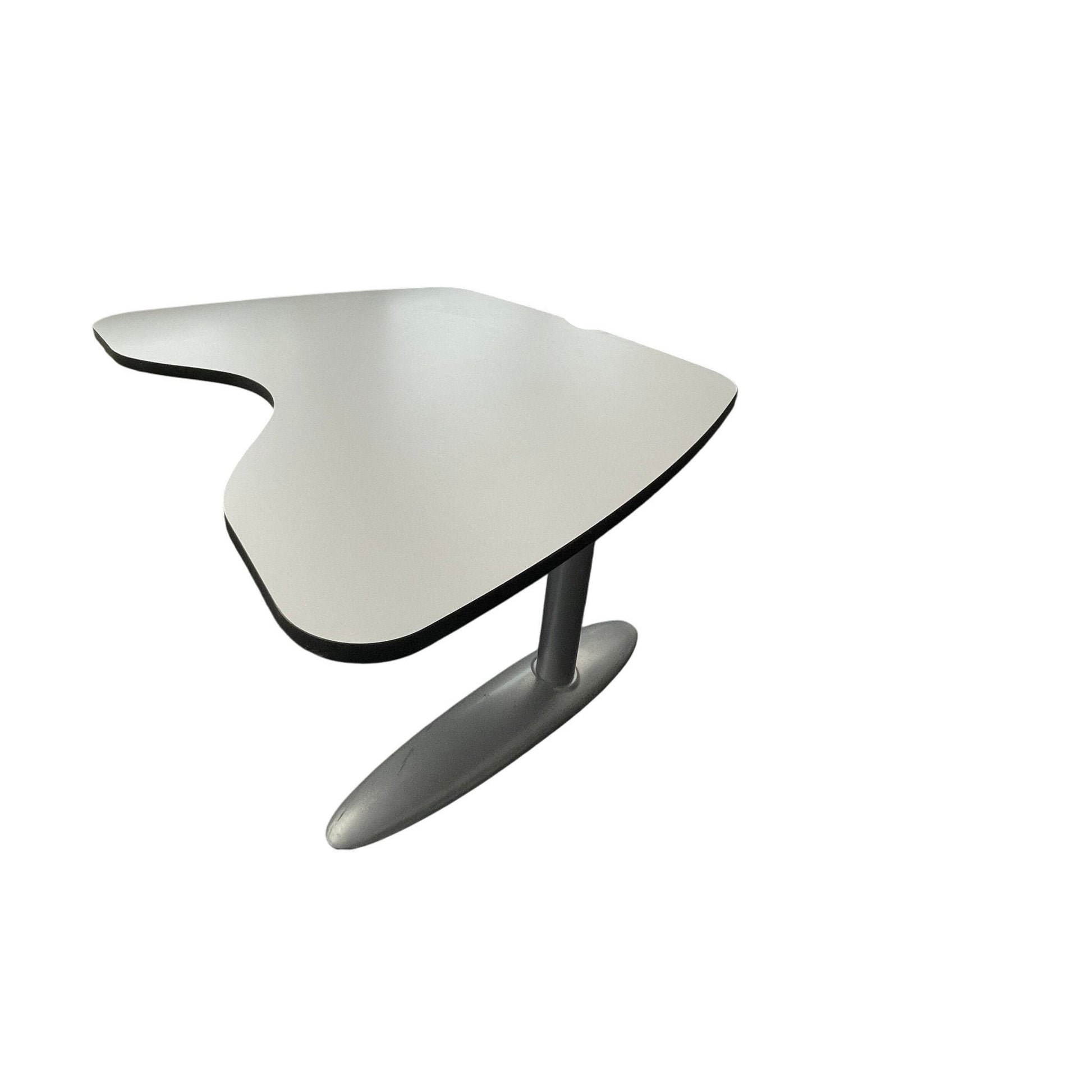 Skrivebordet er i god stand med noen synlige bruksmerker og små forskjeller på bena, men helhetsinntrykket er fortsatt positivt. Ingen dype merker eller skader er synlige.
