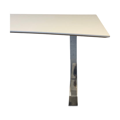 Skrivebordet er i utmerket tilstand med en helt ny bordplate og ingen merkbare slitasjer. Den stilige kromfargen på beina gir et moderne uttrykk og passer inn i de fleste kontorinnredninger. Leveres demontert.