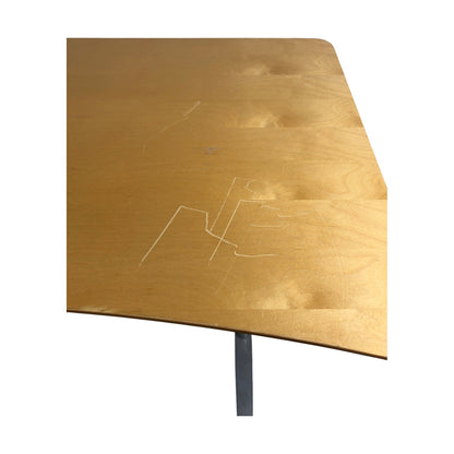 Bordflaten har markante riper som vitner om bruk, men dette påvirker ikke funksjonaliteten. Skrivebordet fungerer som det skal og er et praktisk valg for enhver arbeidsplass.