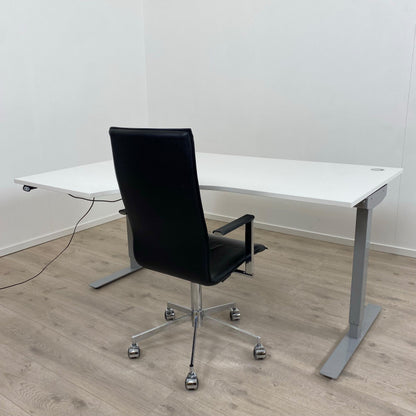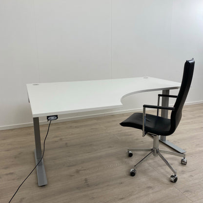 Elektrisk hev/senk skrivebord med venstresving og kabelhull