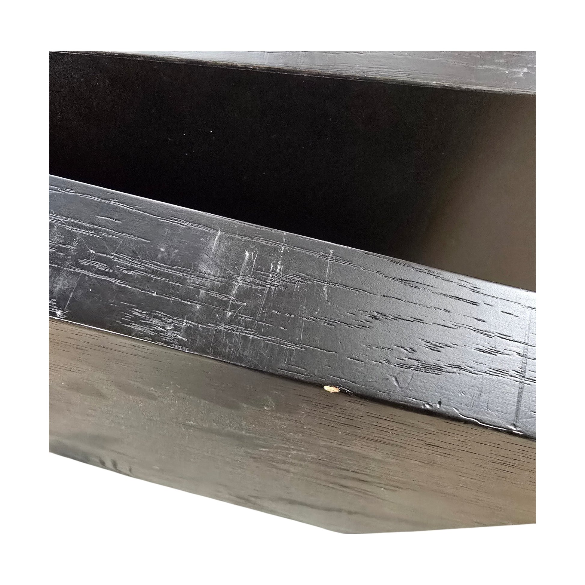 Bordet er godt brukt, men har fortsatt mye liv igjen. Ingen store skader, men se bilder for markante merker. Dets robuste design gjør det fortsatt til et flott tillegg i ethvert rom.