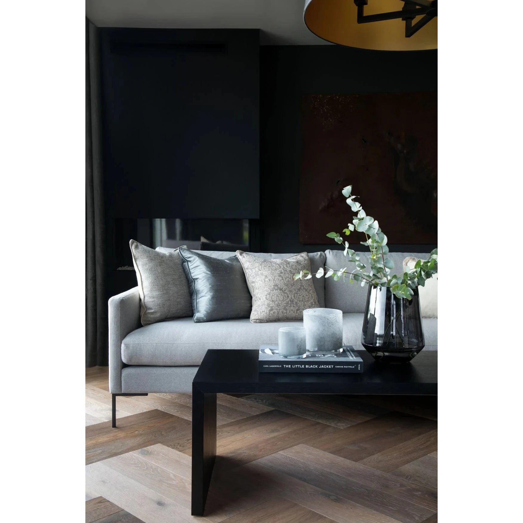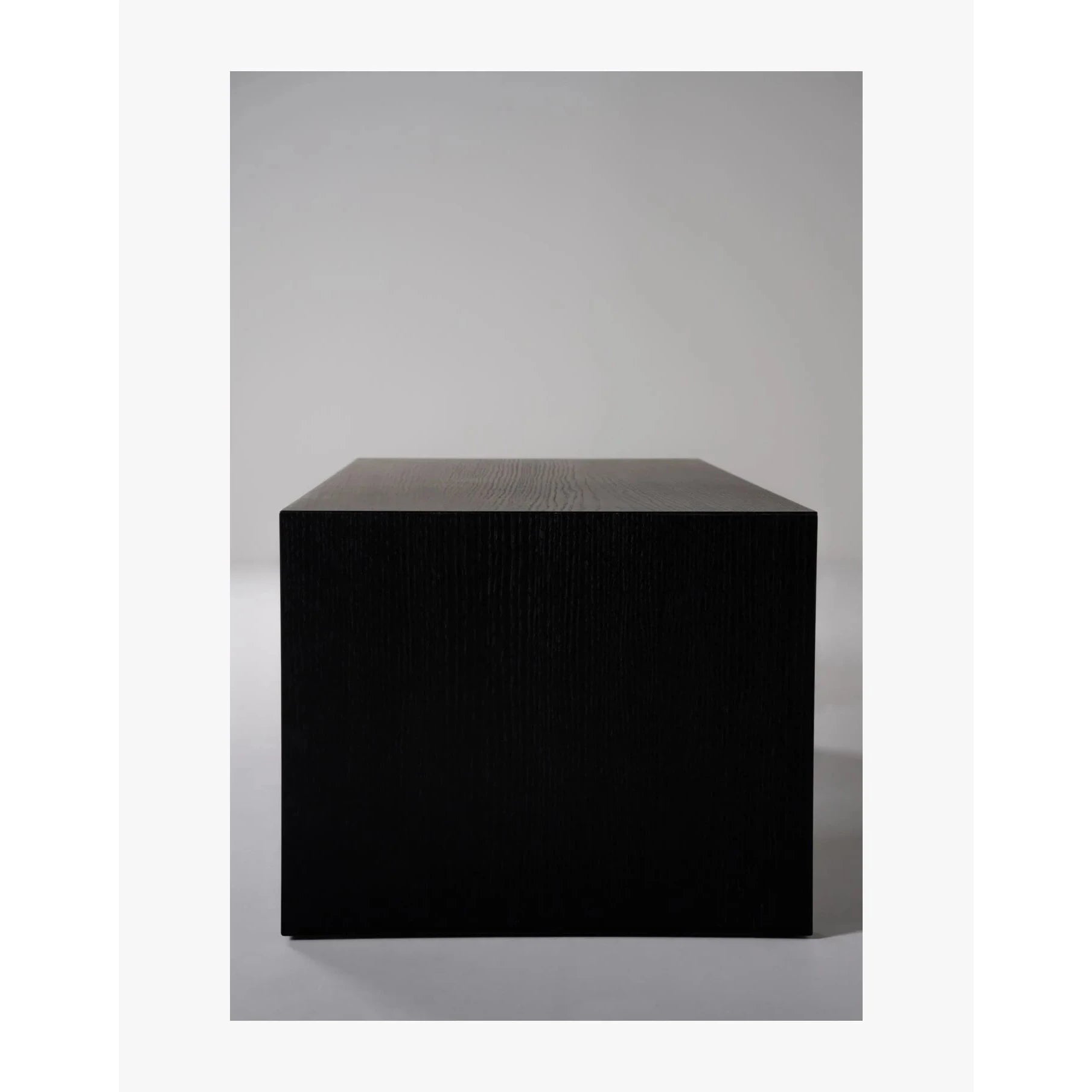 Ellie sofabord fra Kid er et avlangt og robust møbel i stram skandinavisk stil. Med sine rene linjer og solide sokkel i svart eikefiner, gir dette bordet et eksklusivt preg og fungerer som et stilig midtpunkt i enhver stue.